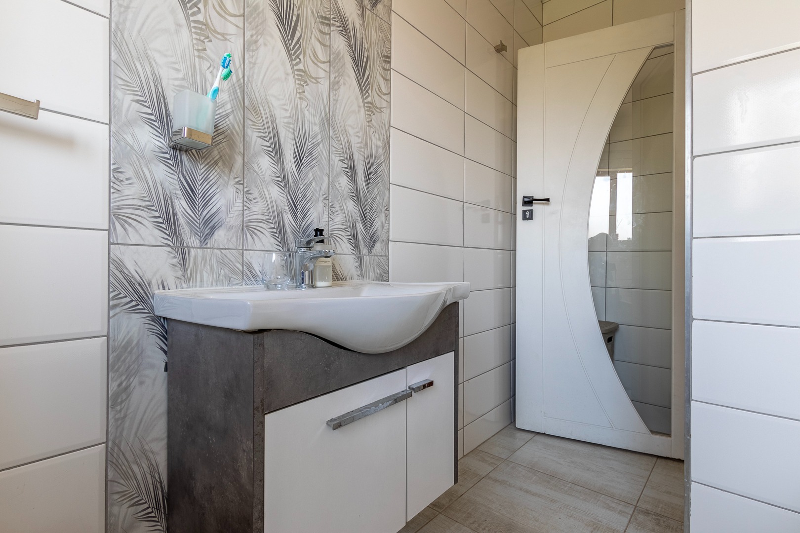 Inside, you'll find a bright and modern open-plan living space that effortlessly connects the kitchen, dining, and lounge areas. The sleek, high-gloss white kitchen is a real highlight, boasting integrated appliances like a eye level oven, hob and extractor. With stylish porcelain tiling this space is perfect for entertaining or just relaxing. Large glass doors ensure plenty of natural light floods the area.