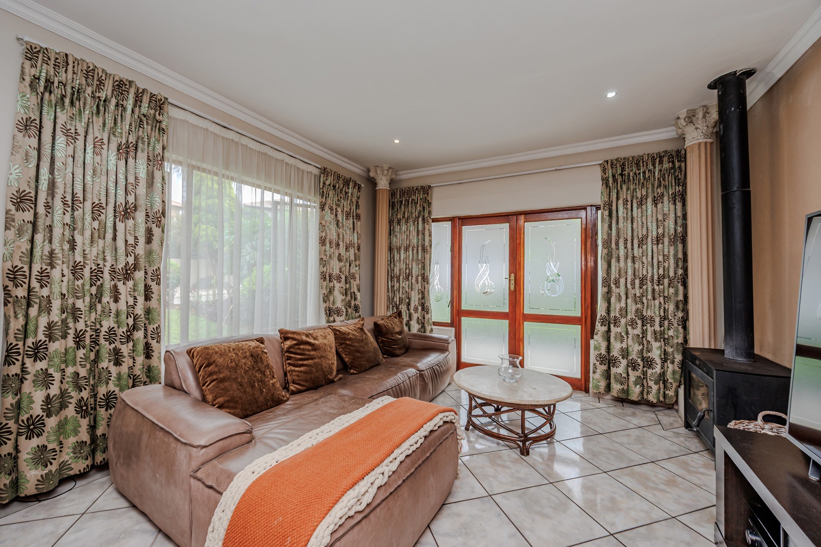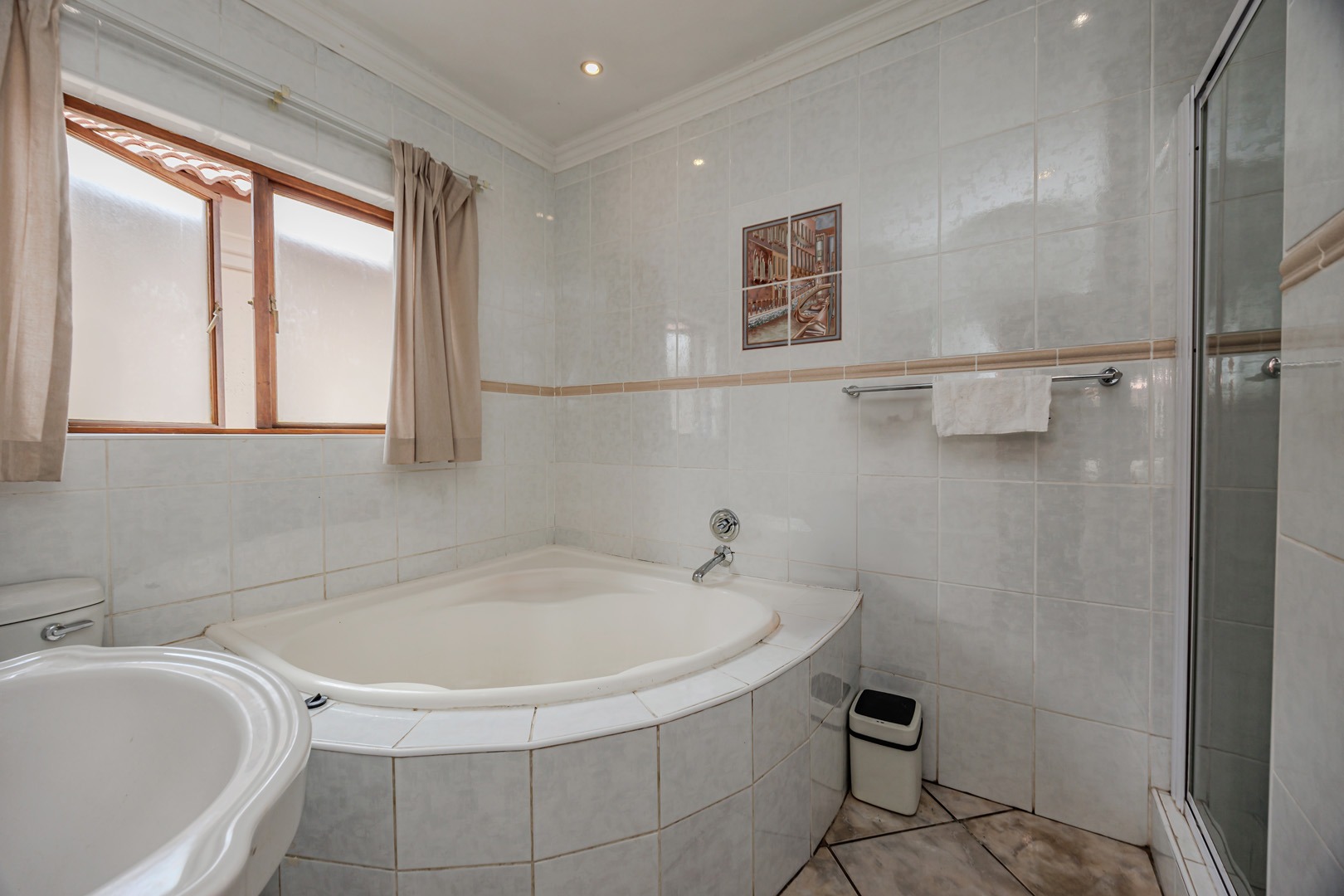 Accommodation comprises four well-proportioned bedrooms and three bathrooms, with one offering en-suite facilities, ensuring privacy and convenience for all occupants. A significant advantage of this property is the inclusion of a dedicated flatlet, offering versatile options for extended family, guests, or potential rental income. Air conditioning units are present, contributing to year-round comfort.