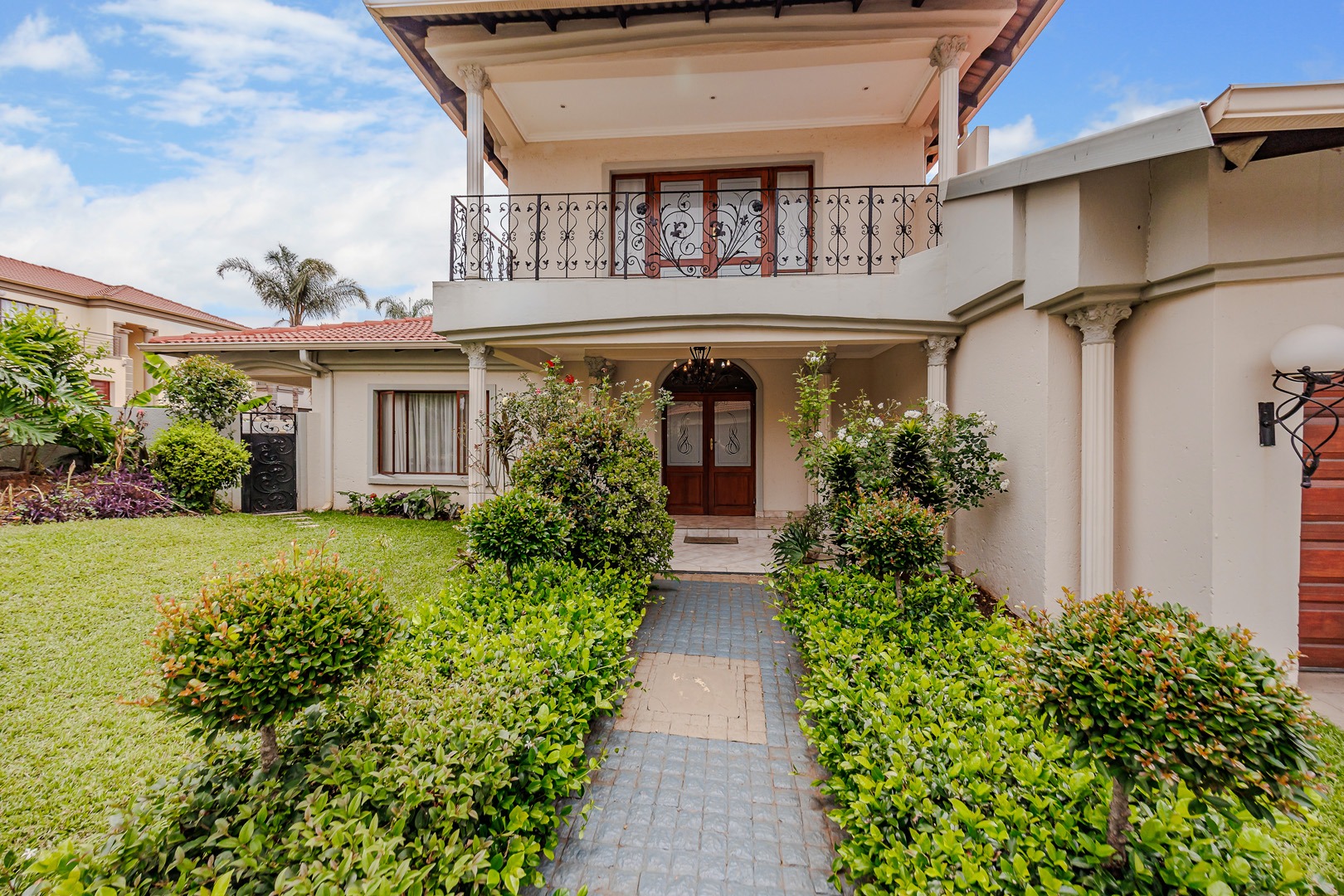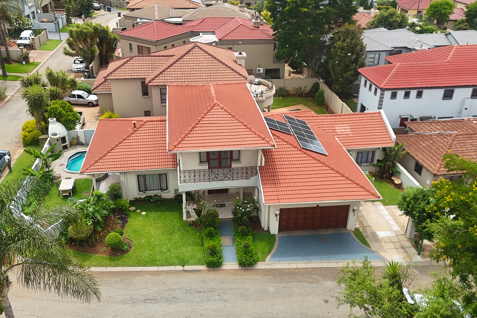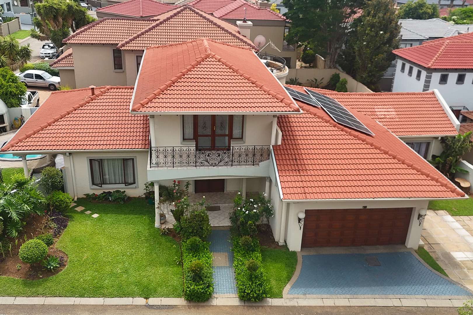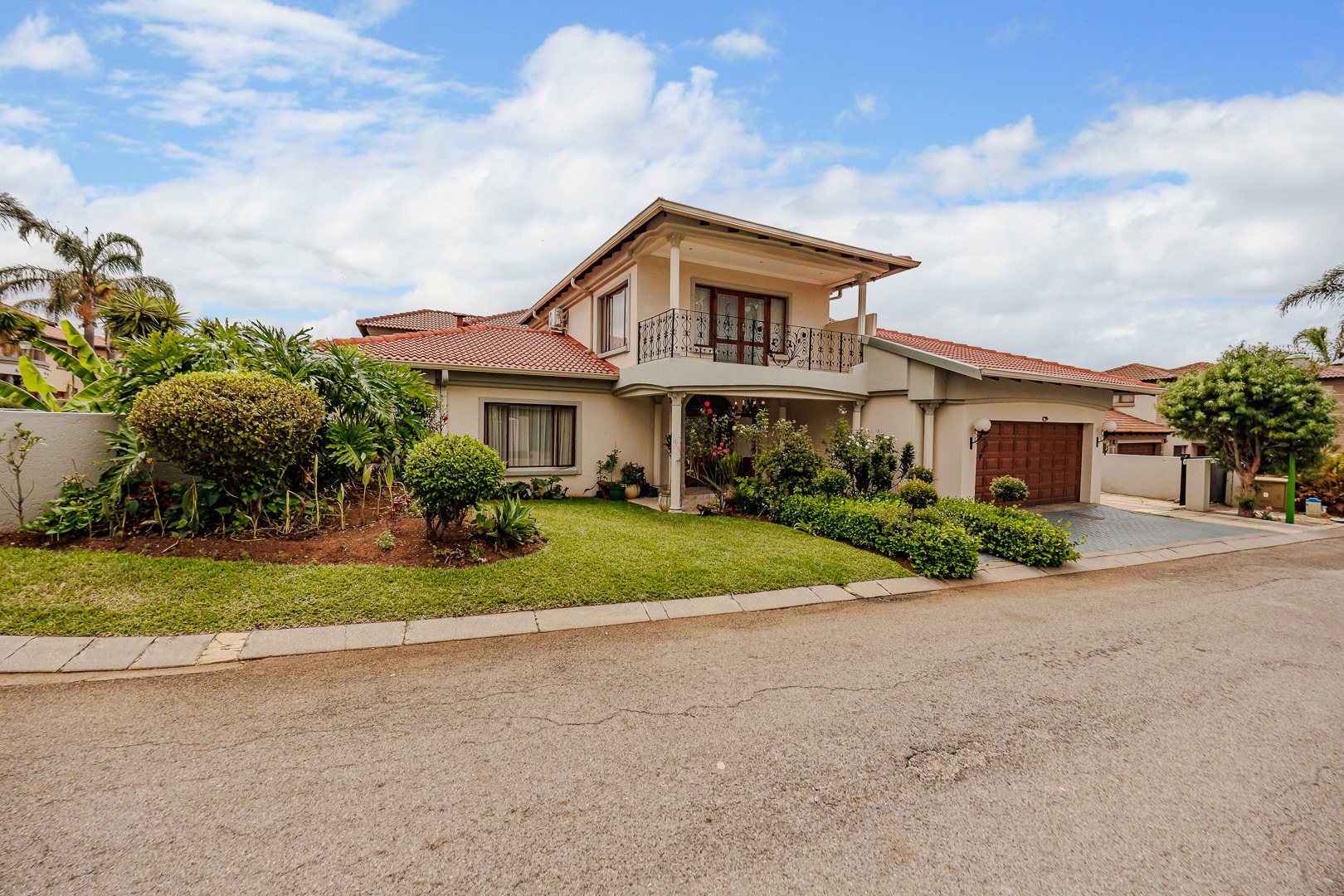 This distinguished two-story residence, situated in the desirable suburban enclave of Willowbrook, Roodepoort, South Africa, presents an exceptional opportunity for discerning homeowners. The property exhibits a classic architectural style, characterized by its prominent red tiled roof and meticulously maintained front façade, ensuring a compelling first impression.