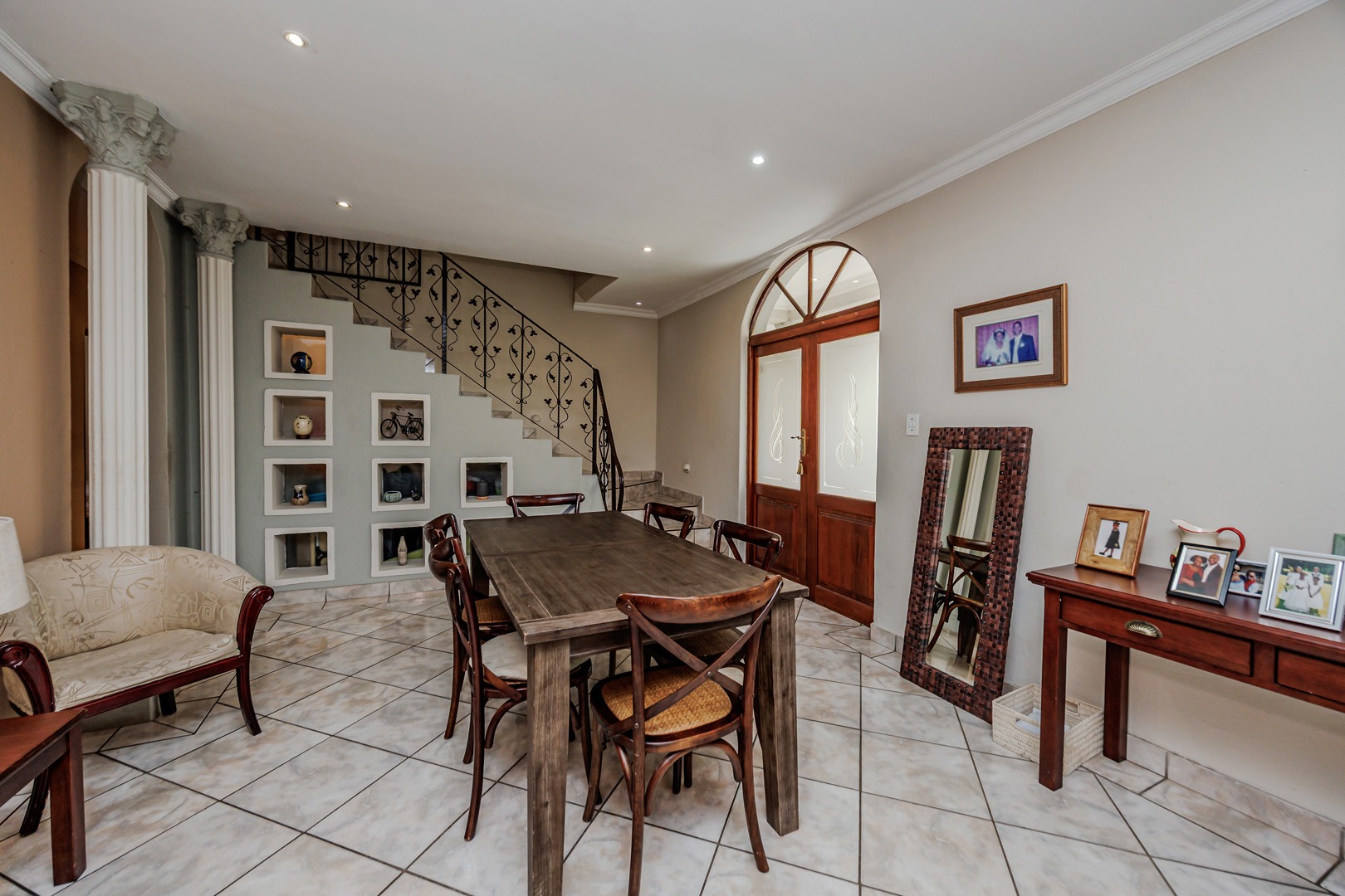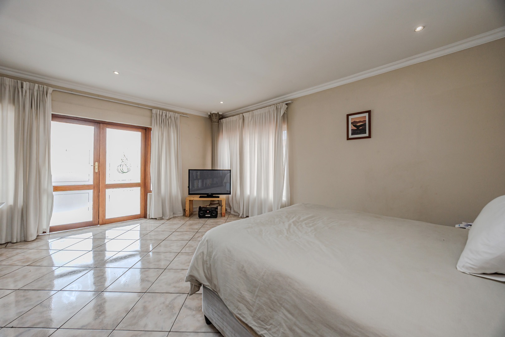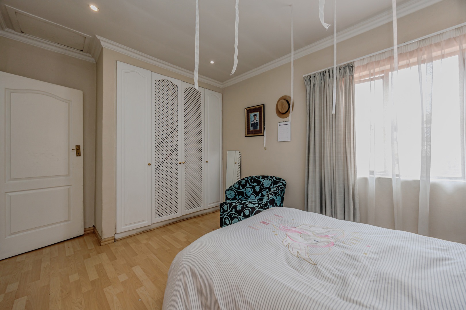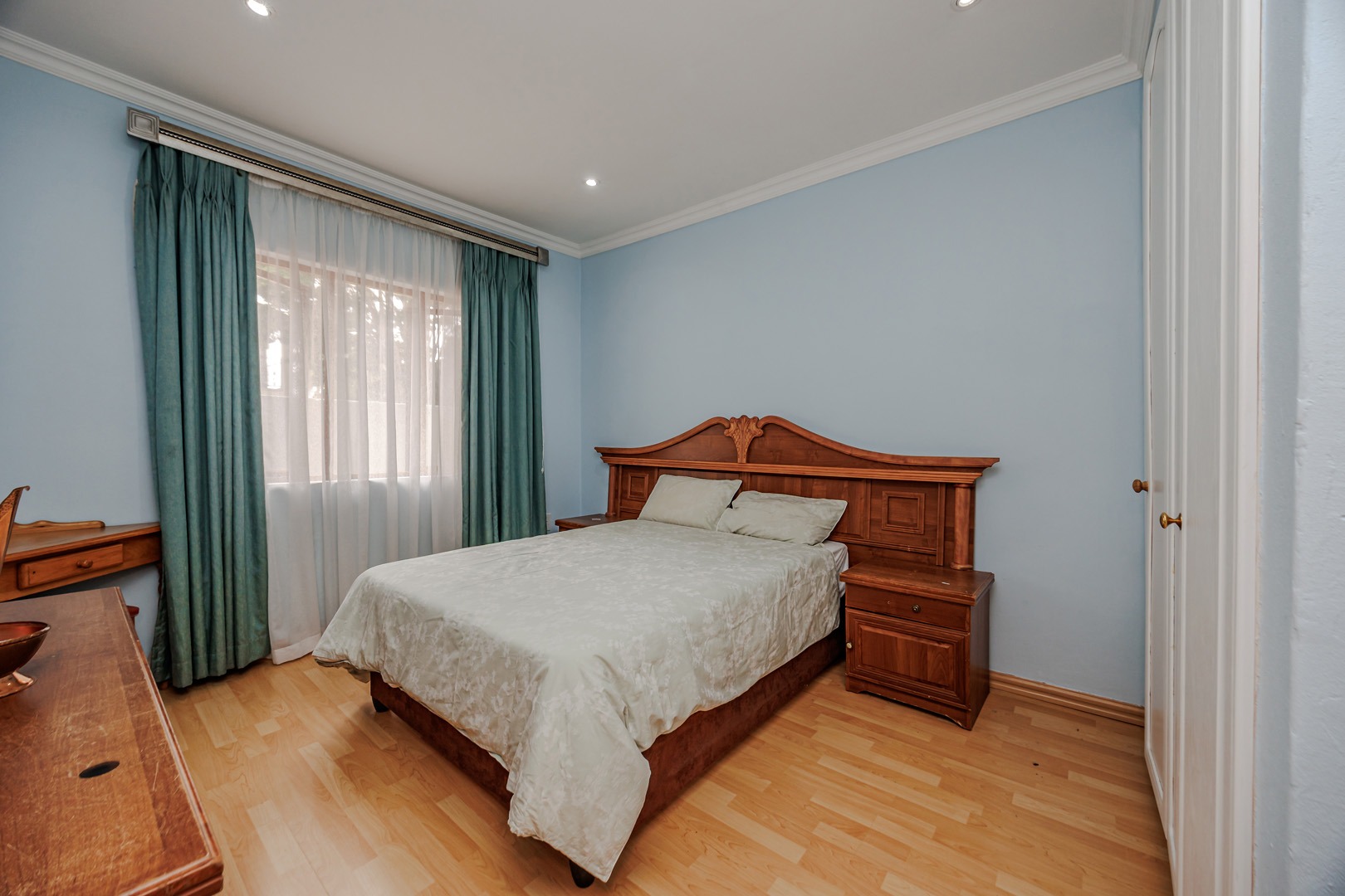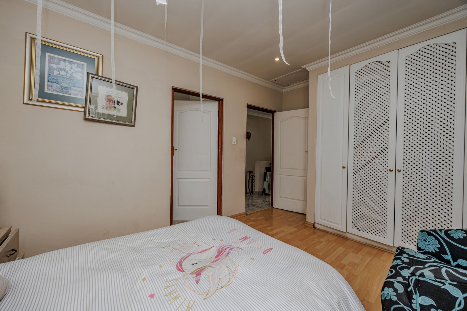 Accommodation comprises four well-proportioned bedrooms and three bathrooms, with one offering en-suite facilities, ensuring privacy and convenience for all occupants. A significant advantage of this property is the inclusion of a dedicated flatlet, offering versatile options for extended family, guests, or potential rental income. Air conditioning units are present, contributing to year-round comfort.
