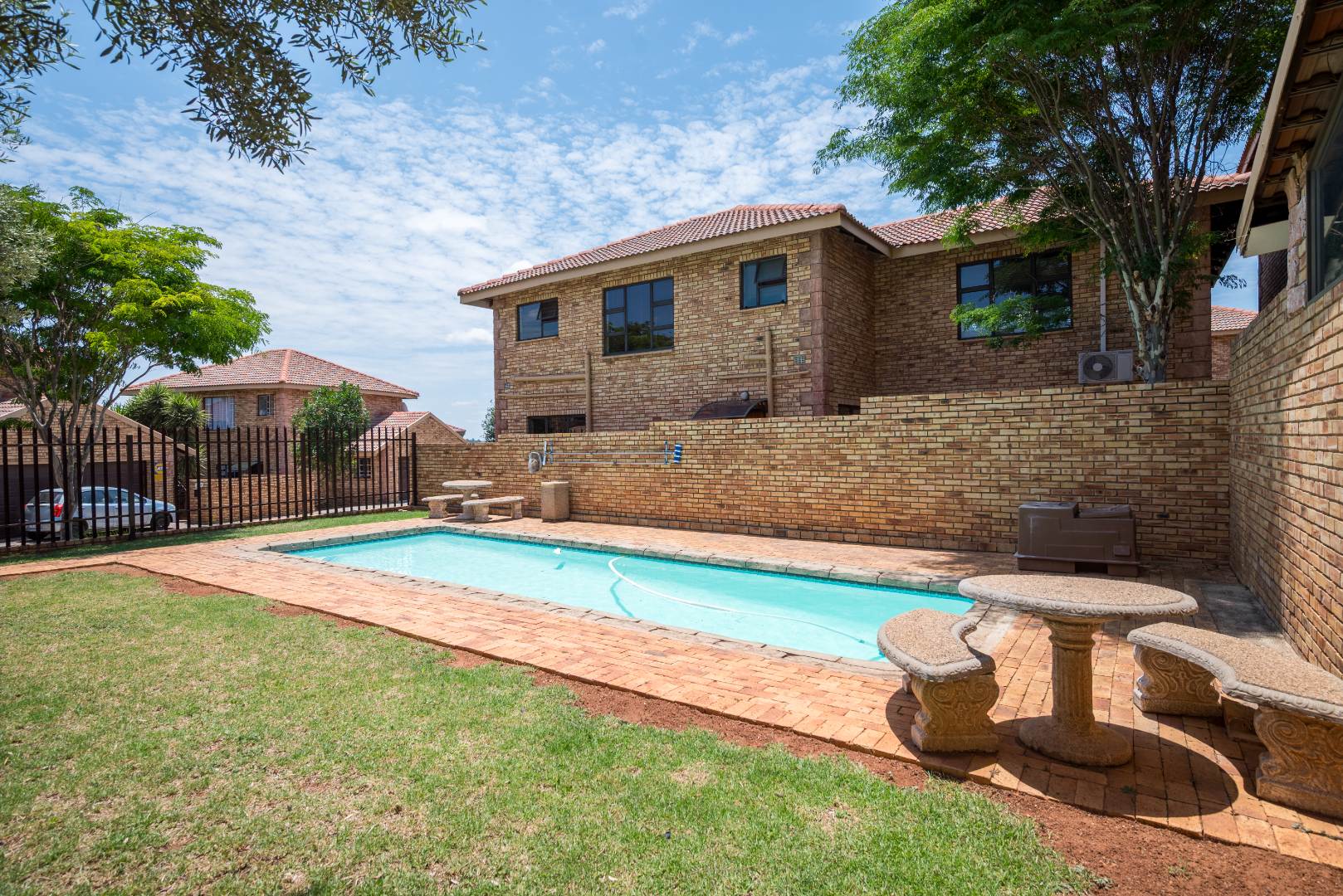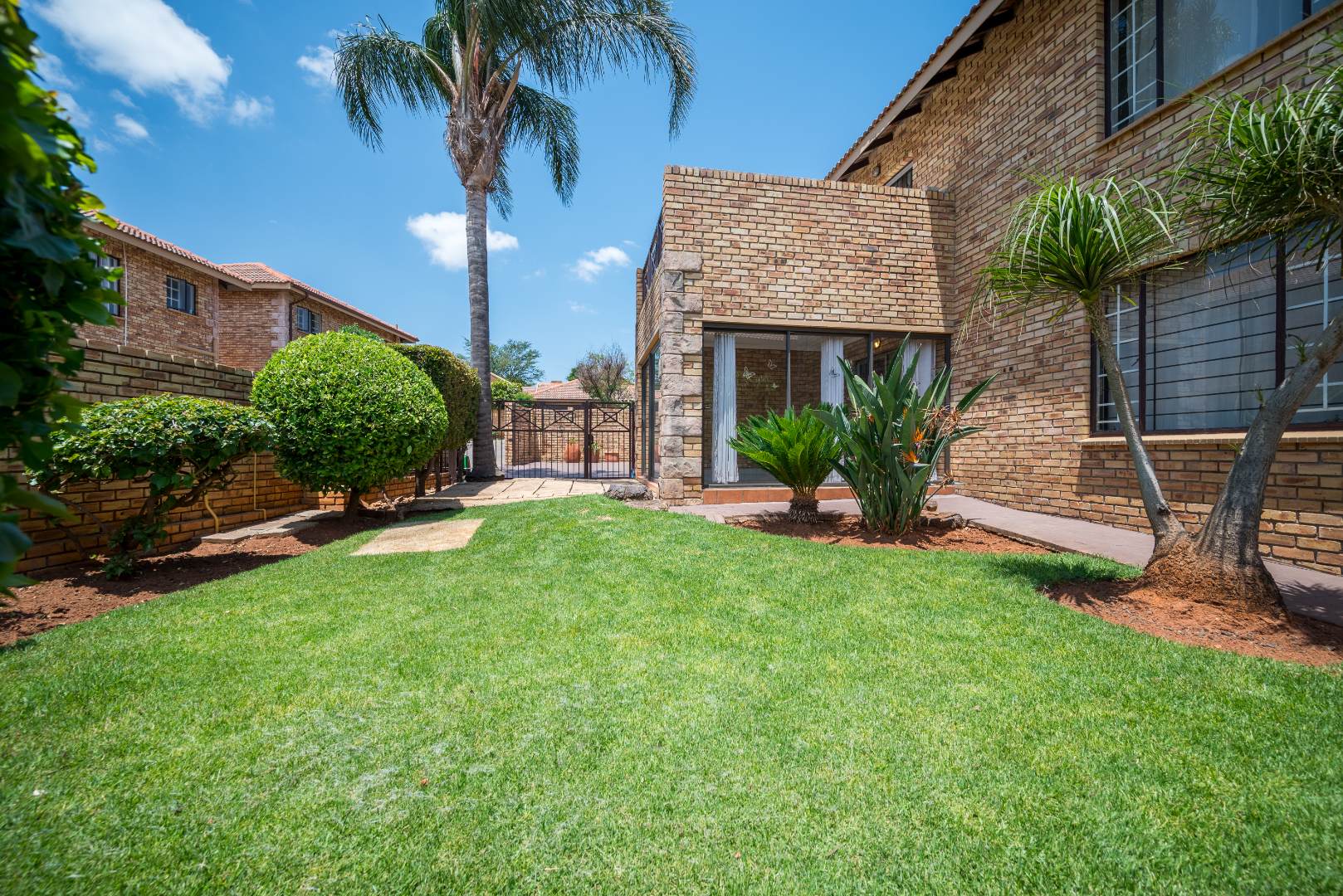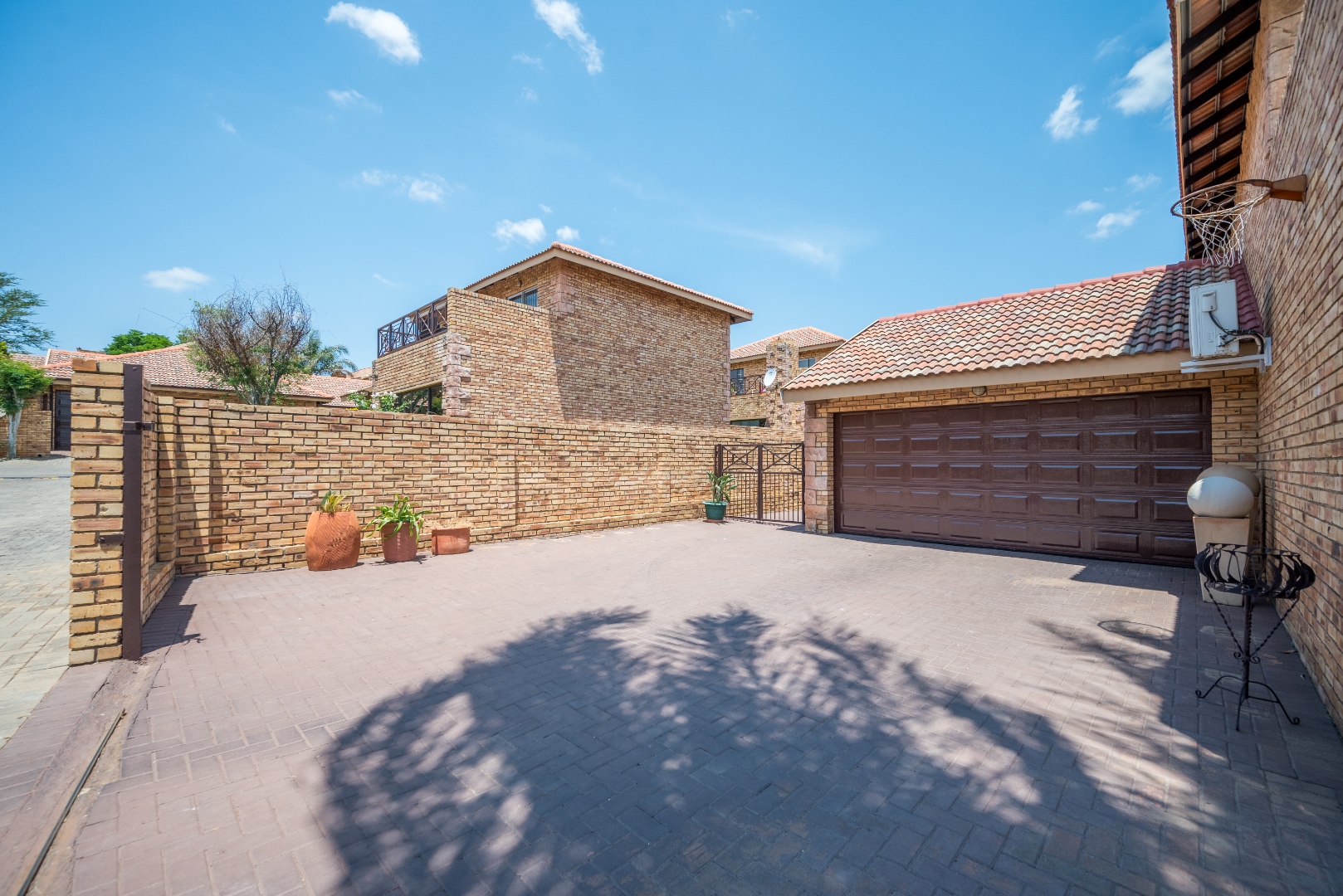 This modern 201 sqm unit with 4bededrooms and 3bathrooms with large garden and pool in complex is for sale. This stunning unit offers 4 bedrooms with lots of build-in-cupboards. The main bedroom with full on-suite-bathroom with bath and shower and aircon. The main bedroom leads onto private balcony. Two other bedrooms upstairs share a family bathroom. There is a fourth bedroom downstairs with own bathroom. The new stylish kitchen offers lots of cupboard's space and place for appliance and gas stove. There is a breakfast nook and granite counter tops. The marble tiled living area offers dining and lounge area. The lounge leads onto large enclose patio with sliding doors to large garden. Double automated garage with build-in-cupboards. The garage leads into unit. There is lots of parking in front of garage. This unit comes with own automated gate to unit. There is a pool in complex and excellent security with security post and guard. This is a well-maintained complex and is close to shops and schools. This is a must view unit. PHONE TODAY TO VIEW!!!!!!