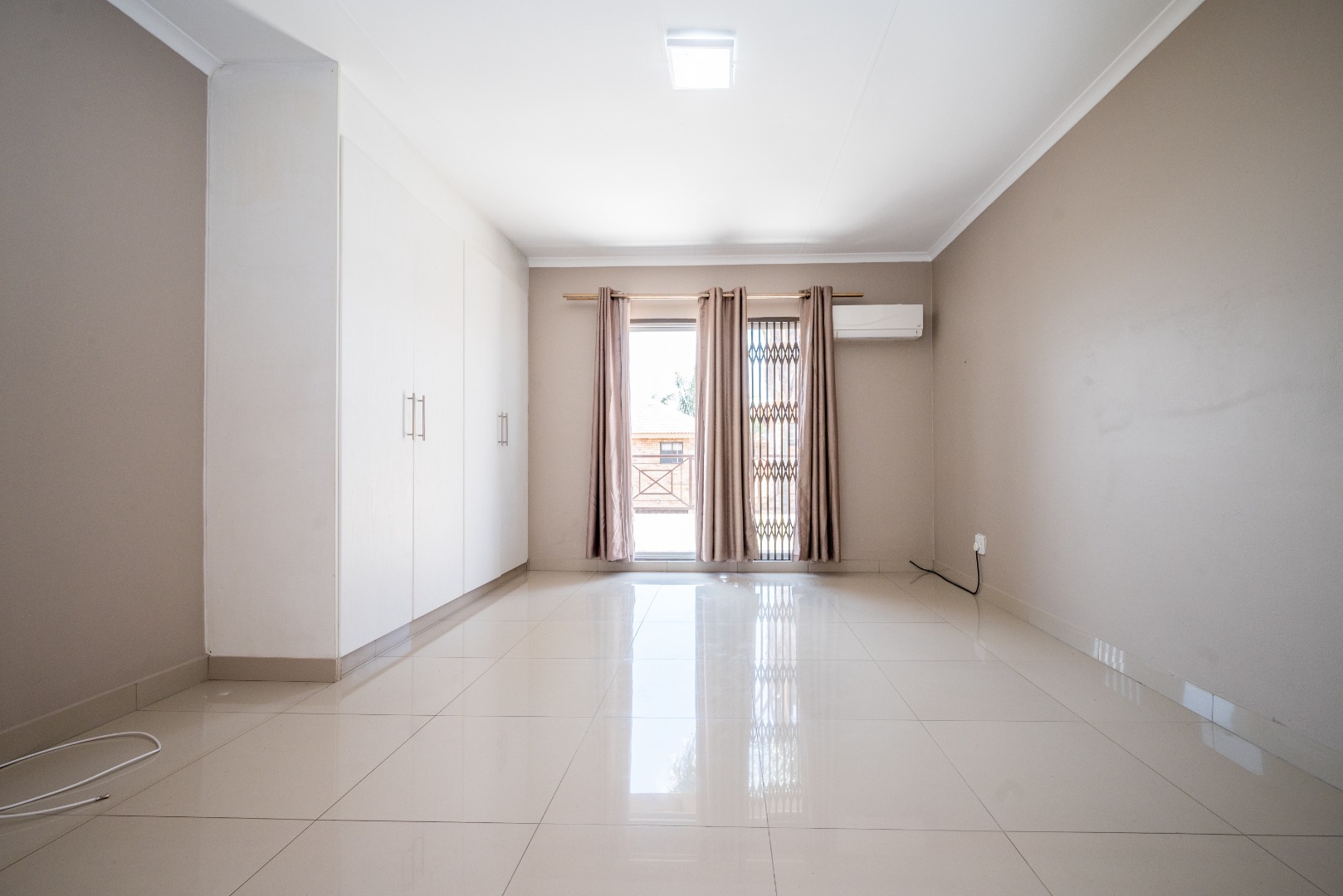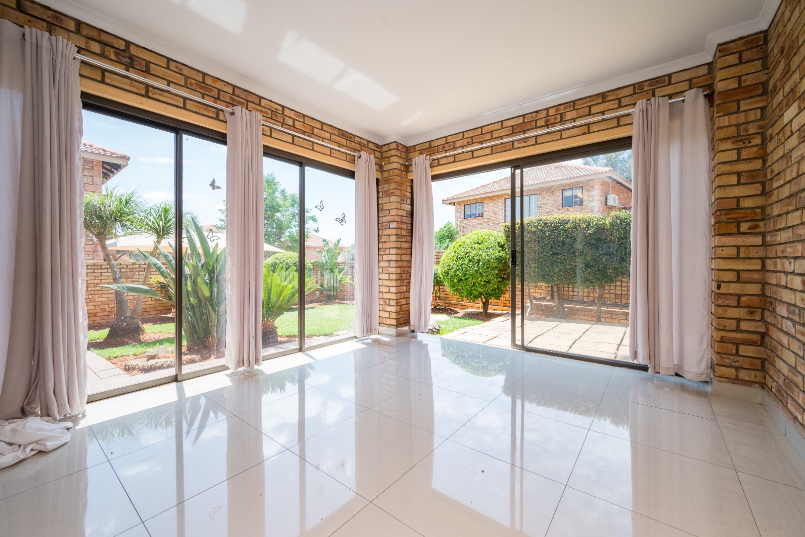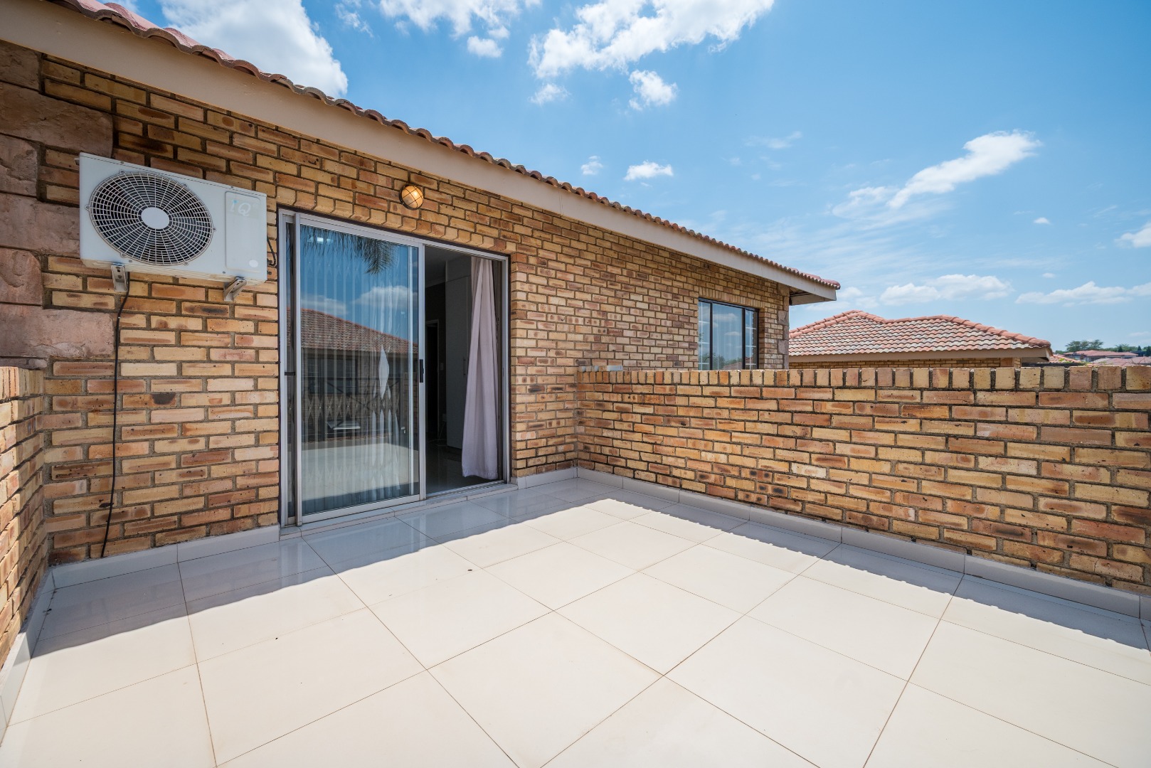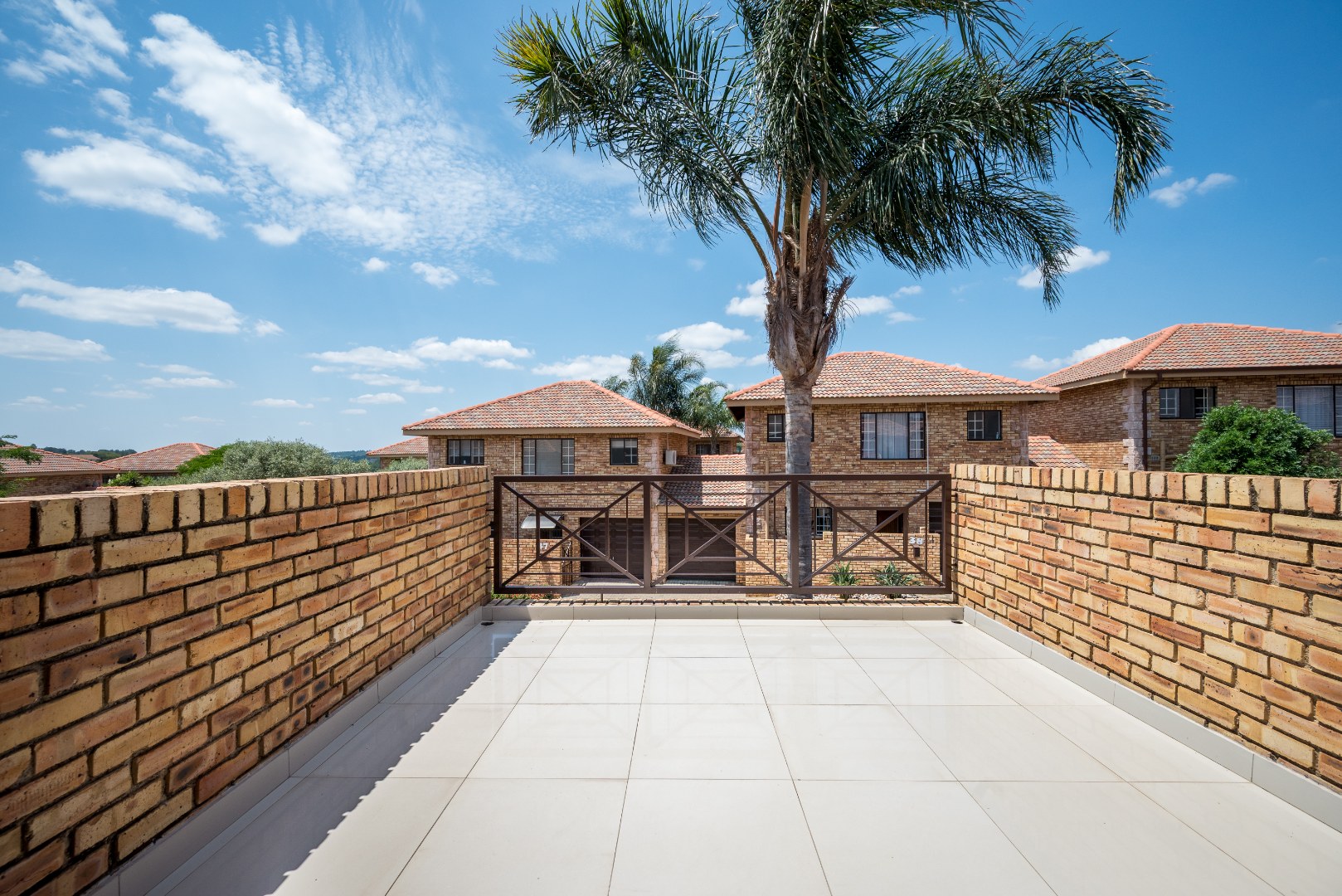 This modern 201 sqm unit with 4bededrooms and 3bathrooms with large garden and pool in complex is for sale. This stunning unit offers 4 bedrooms with lots of build-in-cupboards. The main bedroom with full on-suite-bathroom with bath and shower and aircon. The main bedroom leads onto private balcony. Two other bedrooms upstairs share a family bathroom. There is a fourth bedroom downstairs with own bathroom. The new stylish kitchen offers lots of cupboard's space and place for appliance and gas stove. There is a breakfast nook and granite counter tops. The marble tiled living area offers dining and lounge area. The lounge leads onto large enclose patio with sliding doors to large garden. Double automated garage with build-in-cupboards. The garage leads into unit. There is lots of parking in front of garage. This unit comes with own automated gate to unit. There is a pool in complex and excellent security with security post and guard. This is a well-maintained complex and is close to shops and schools. This is a must view unit. PHONE TODAY TO VIEW!!!!!!