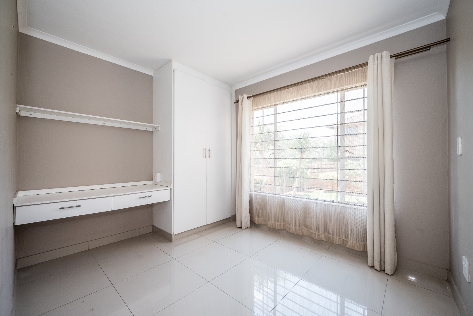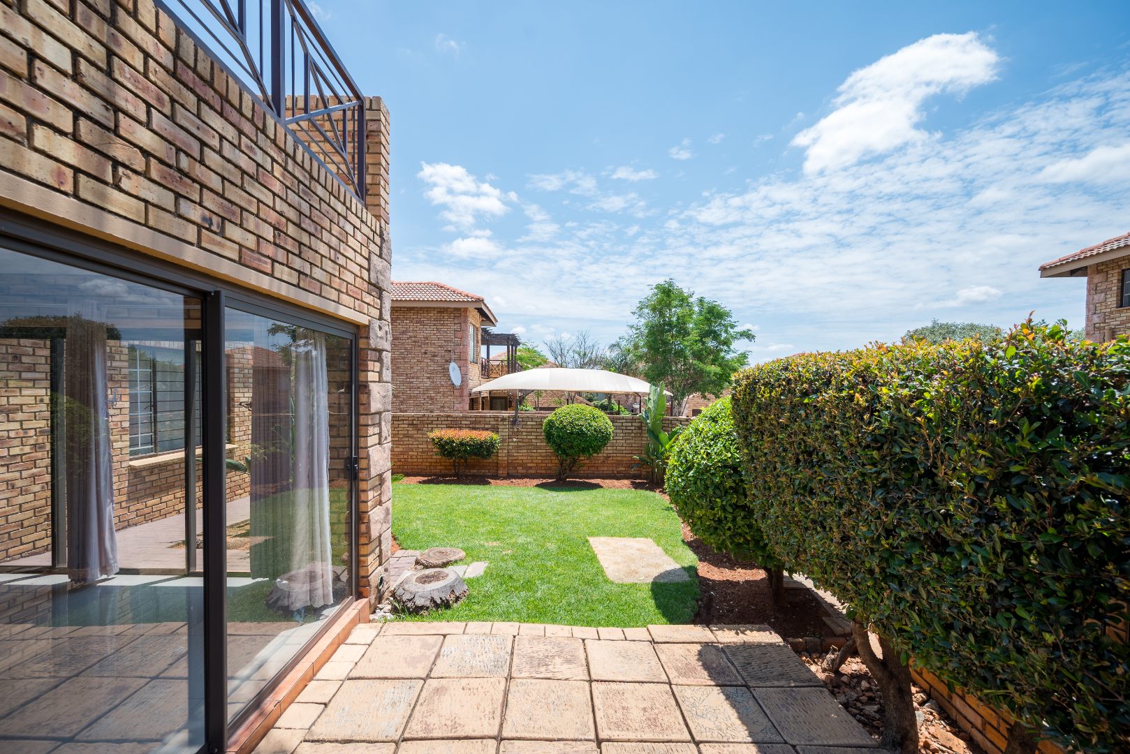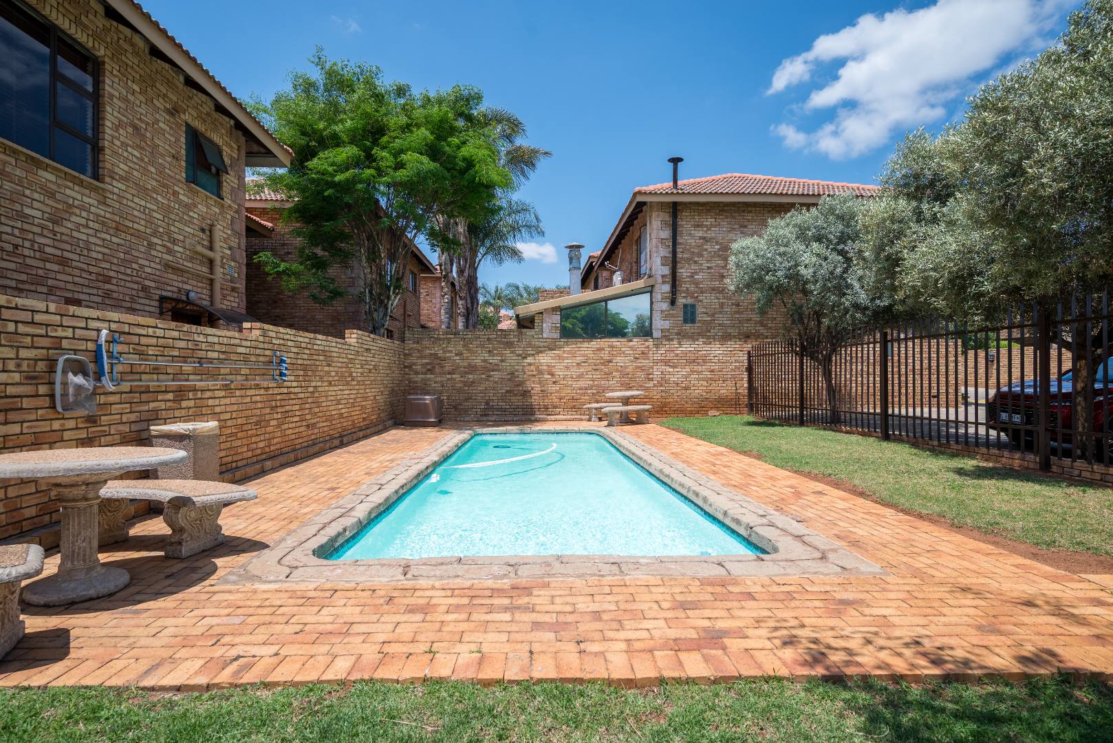 This modern 201 sqm unit with 4bededrooms and 3bathrooms with large garden and pool in complex is for sale. This stunning unit offers 4 bedrooms with lots of build-in-cupboards. The main bedroom with full on-suite-bathroom with bath and shower and aircon. The main bedroom leads onto private balcony. Two other bedrooms upstairs share a family bathroom. There is a fourth bedroom downstairs with own bathroom. The new stylish kitchen offers lots of cupboard's space and place for appliance and gas stove. There is a breakfast nook and granite counter tops. The marble tiled living area offers dining and lounge area. The lounge leads onto large enclose patio with sliding doors to large garden. Double automated garage with build-in-cupboards. The garage leads into unit. There is lots of parking in front of garage. This unit comes with own automated gate to unit. There is a pool in complex and excellent security with security post and guard. This is a well-maintained complex and is close to shops and schools. This is a must view unit. PHONE TODAY TO VIEW!!!!!!
