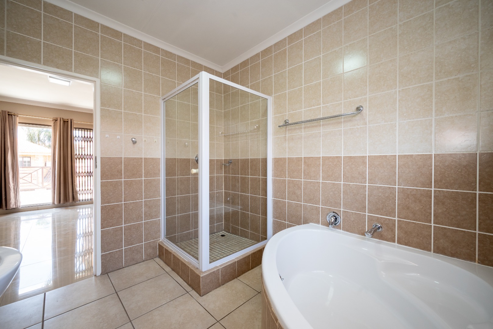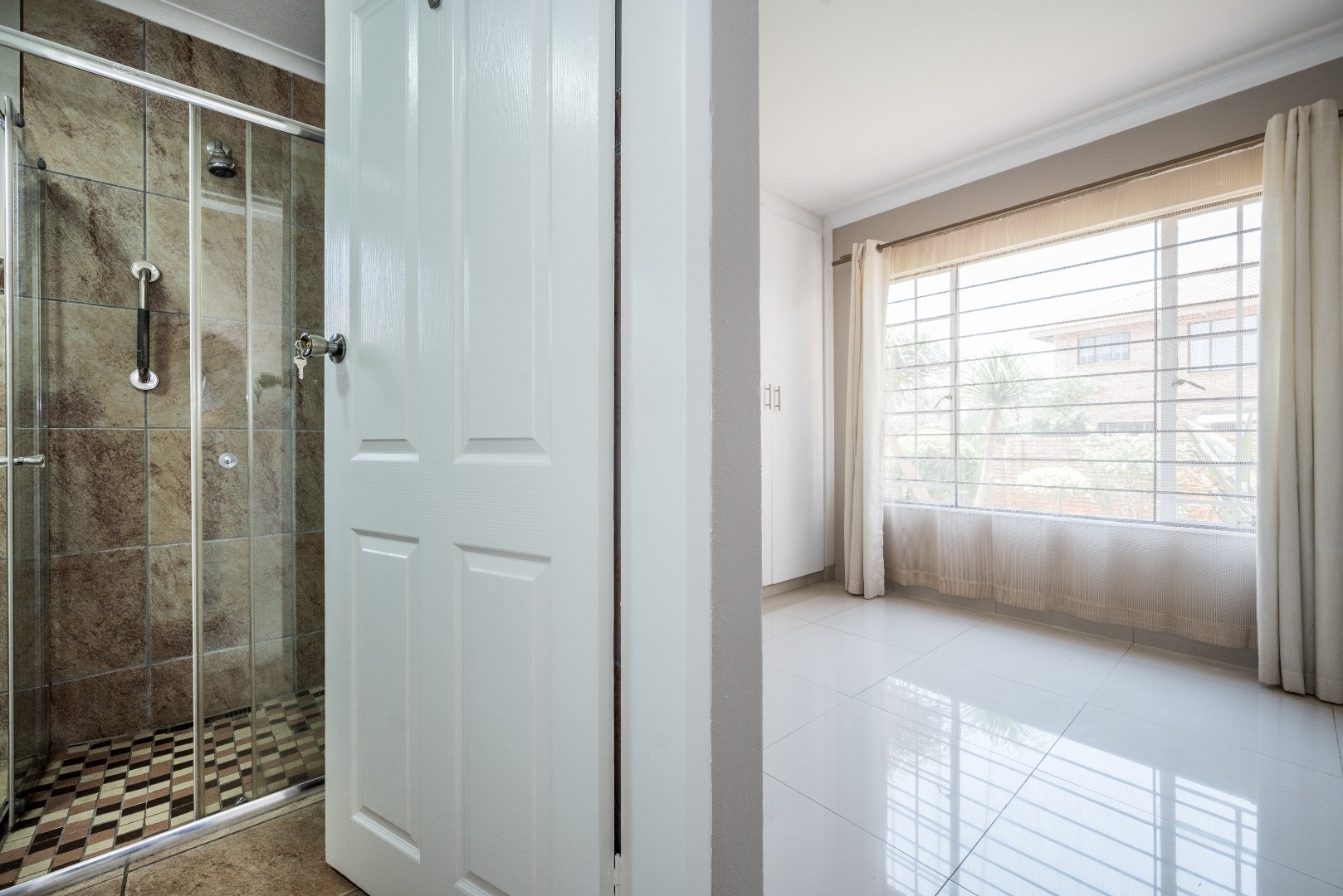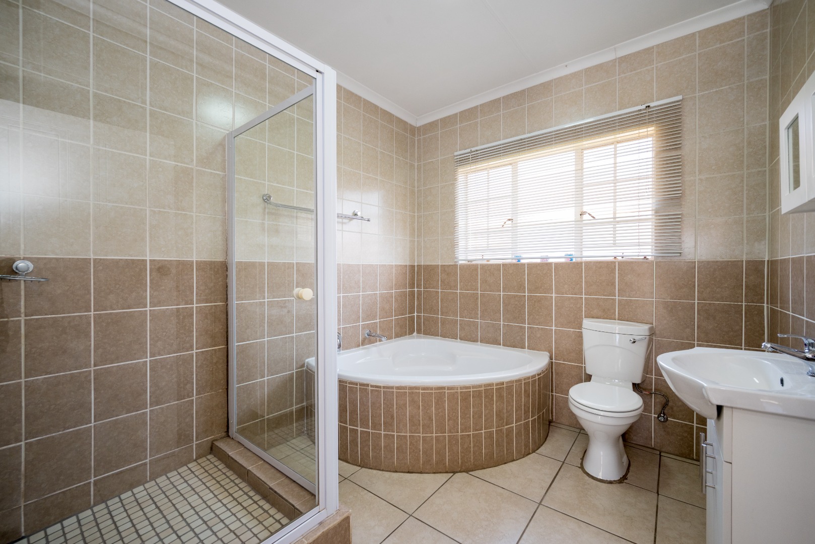 This modern 201 sqm unit with 4bededrooms and 3bathrooms with large garden and pool in complex is for sale. This stunning unit offers 4 bedrooms with lots of build-in-cupboards. The main bedroom with full on-suite-bathroom with bath and shower and aircon. The main bedroom leads onto private balcony. Two other bedrooms upstairs share a family bathroom. There is a fourth bedroom downstairs with own bathroom. The new stylish kitchen offers lots of cupboard's space and place for appliance and gas stove. There is a breakfast nook and granite counter tops. The marble tiled living area offers dining and lounge area. The lounge leads onto large enclose patio with sliding doors to large garden. Double automated garage with build-in-cupboards. The garage leads into unit. There is lots of parking in front of garage. This unit comes with own automated gate to unit. There is a pool in complex and excellent security with security post and guard. This is a well-maintained complex and is close to shops and schools. This is a must view unit. PHONE TODAY TO VIEW!!!!!!