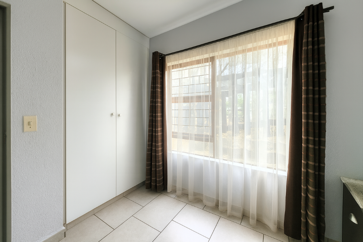 Beyond the private sanctuary, residents enjoy access to a communal swimming pool, providing an ideal escape for relaxation and recreation. Security is paramount within this complex, offering 24-hour surveillance, CCTV, an access gate, and burglar bars, ensuring peace of mind. Furthermore, the property is fibre-ready, catering to modern connectivity needs, and includes a dedicated parking bay.