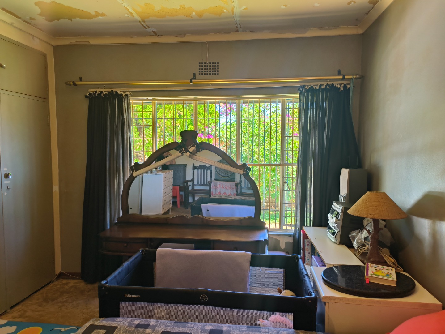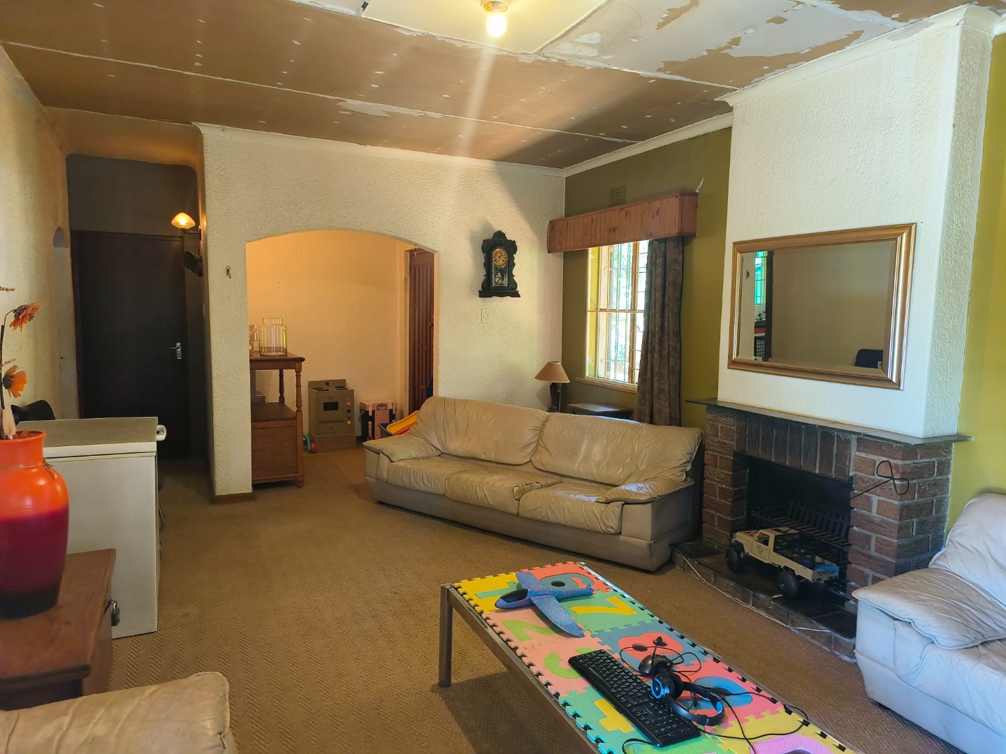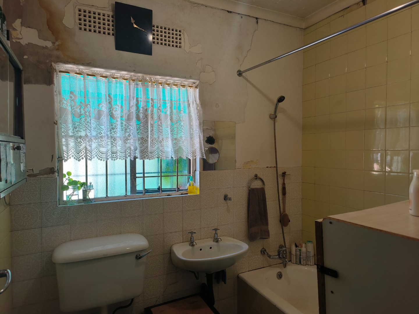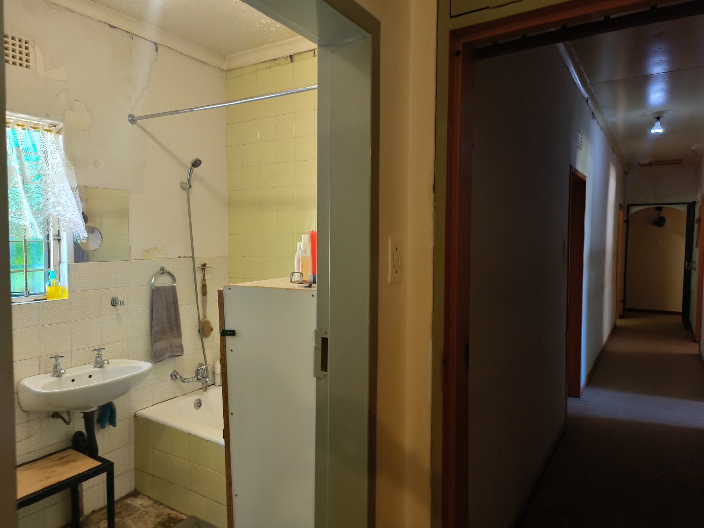 This house, of considerable size, located in Wilro Park, boasts large rooms and offers ample secure extra parking space, which may be just what you need. It requires a new family who can offer TLC and put their own stamp on it. Step in through the entrance hall into the open-plan lounge and dining room, featuring a bay window, carpeted floors, and a fireplace (closed chimney). The TV room is currently used as an extra bedroom. The kitchen, with steel cupboards and space for a washing machine, is just adjacent to the reception areas. and also leads to an outside roofed patio. The passage leads to 3/ 4 bedrooms and 2 Bathrooms. (MES and both have baths and hand showers)