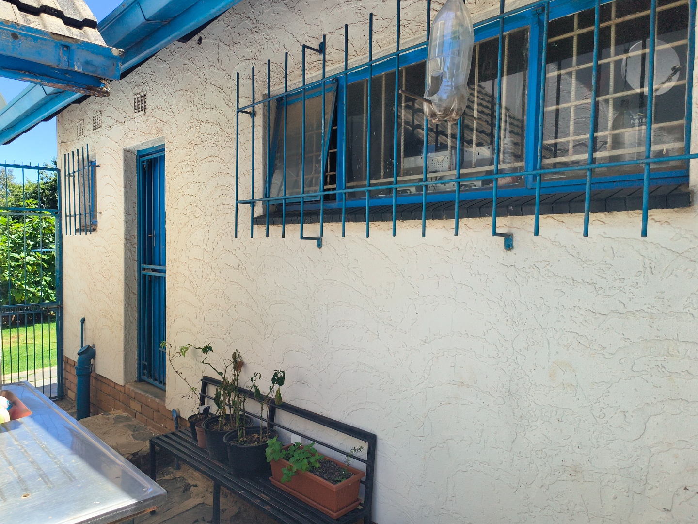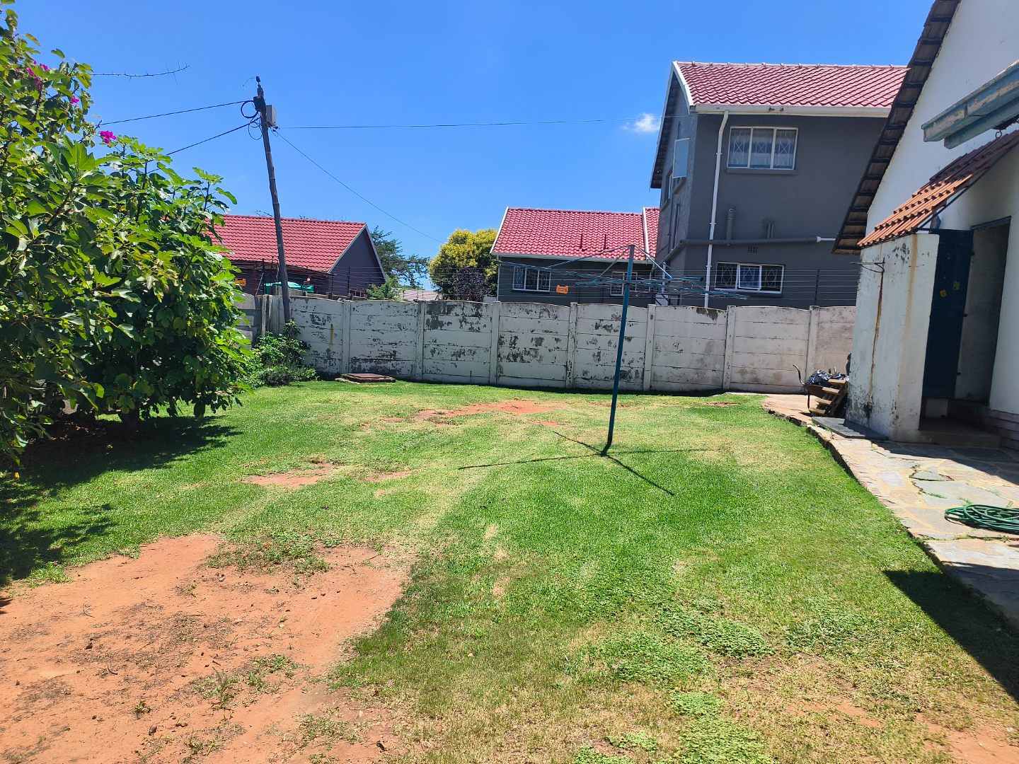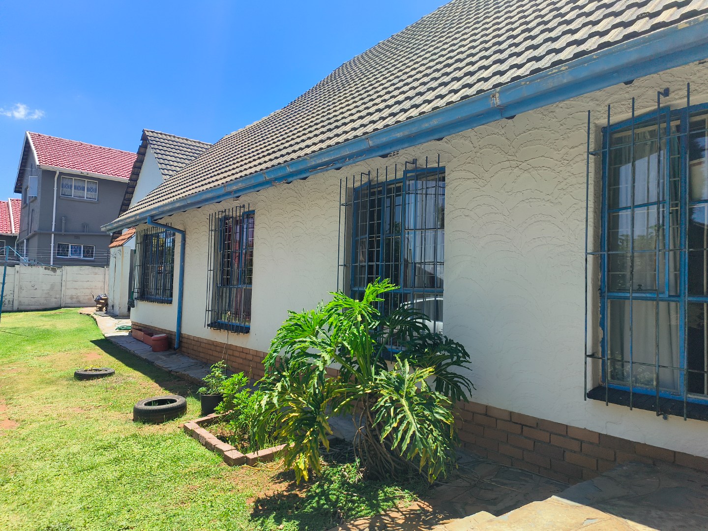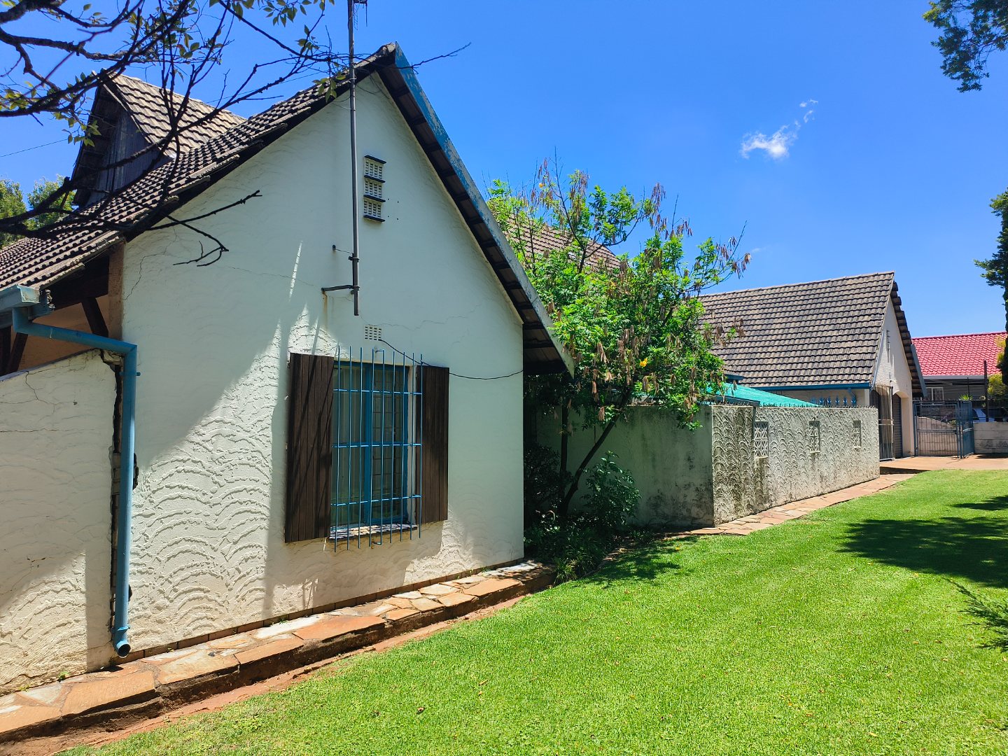 This house, of considerable size, located in Wilro Park, boasts large rooms and offers ample secure extra parking space, which may be just what you need. It requires a new family who can offer TLC and put their own stamp on it. Step in through the entrance hall into the open-plan lounge and dining room, featuring a bay window, carpeted floors, and a fireplace (closed chimney). The TV room is currently used as an extra bedroom. The kitchen, with steel cupboards and space for a washing machine, is just adjacent to the reception areas. and also leads to an outside roofed patio. The passage leads to 3/ 4 bedrooms and 2 Bathrooms. (MES and both have baths and hand showers)