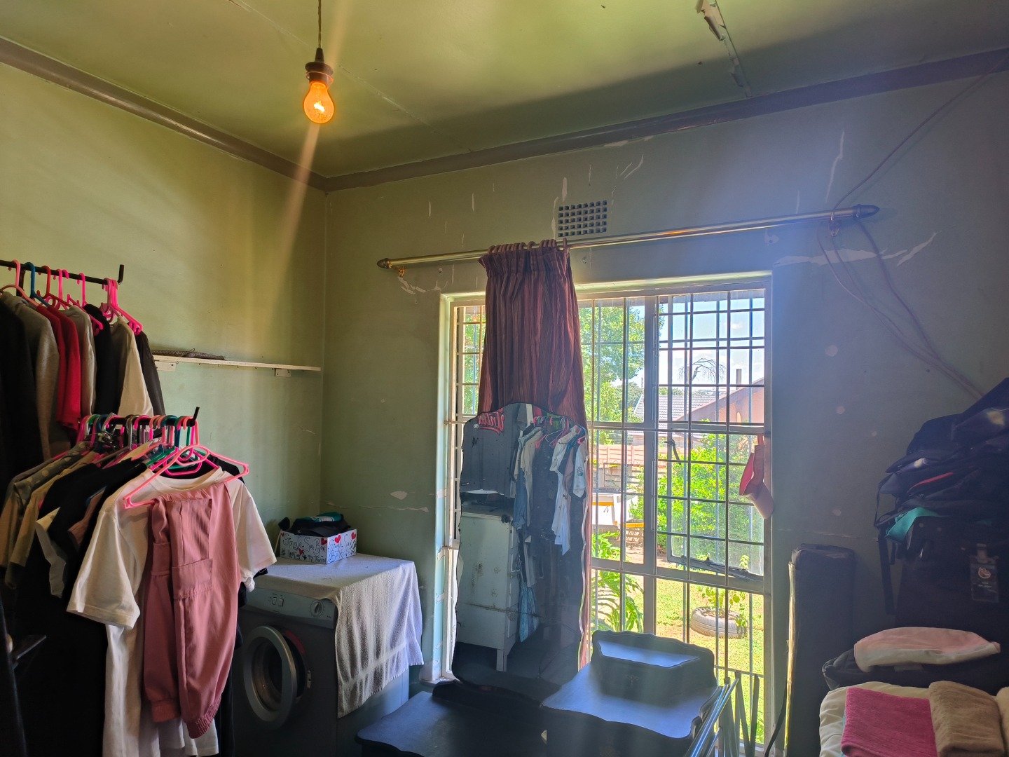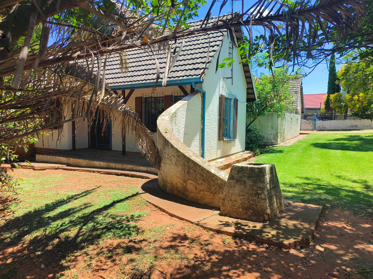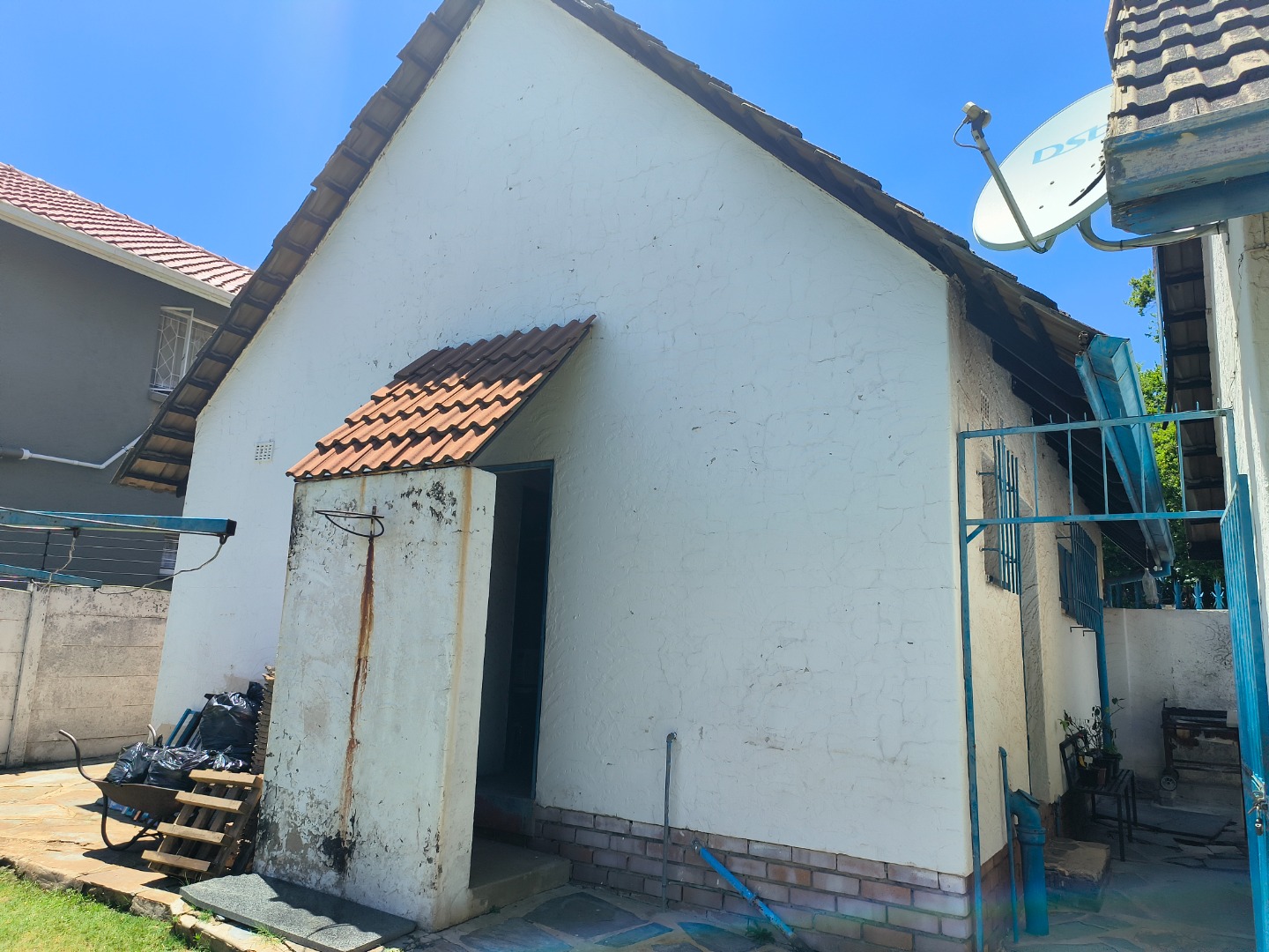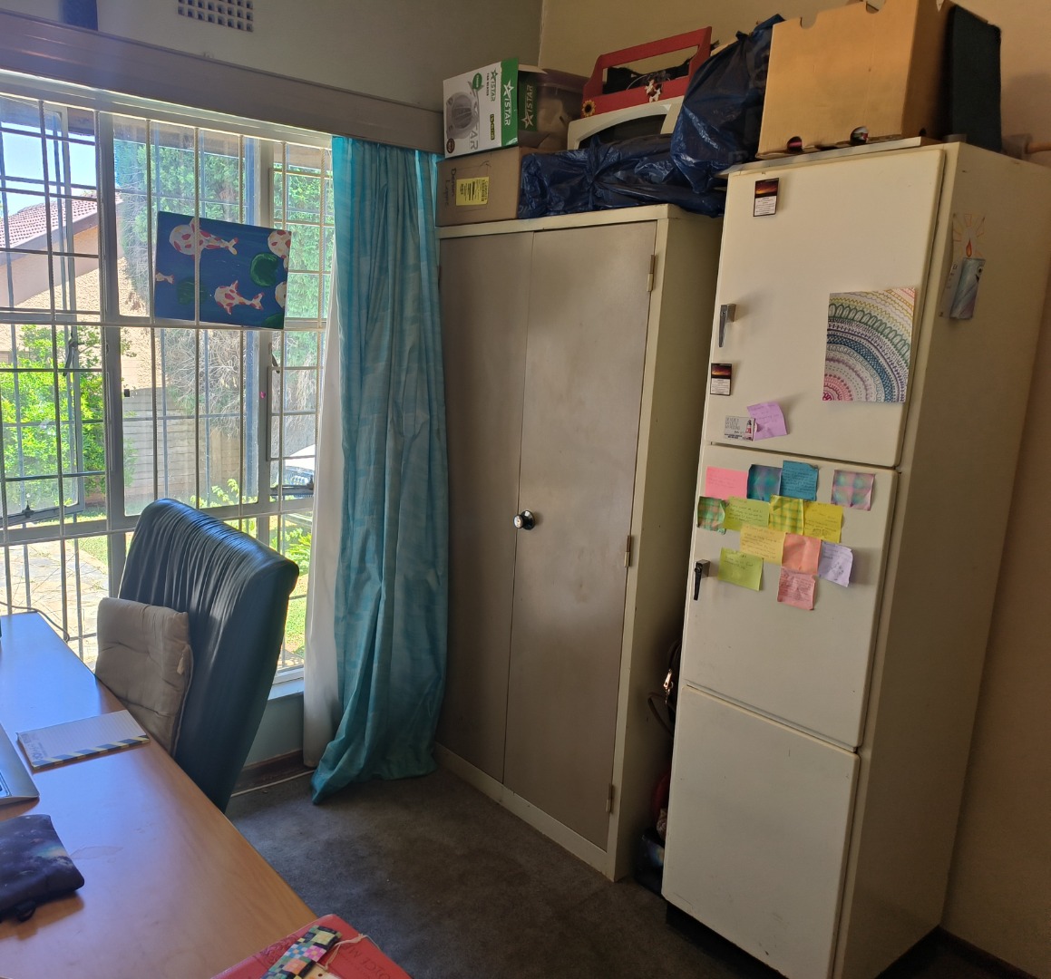 This house, of considerable size, located in Wilro Park, boasts large rooms and offers ample secure extra parking space, which may be just what you need. It requires a new family who can offer TLC and put their own stamp on it. Step in through the entrance hall into the open-plan lounge and dining room, featuring a bay window, carpeted floors, and a fireplace (closed chimney). The TV room is currently used as an extra bedroom. The kitchen, with steel cupboards and space for a washing machine, is just adjacent to the reception areas. and also leads to an outside roofed patio. The passage leads to 3/ 4 bedrooms and 2 Bathrooms. (MES and both have baths and hand showers)