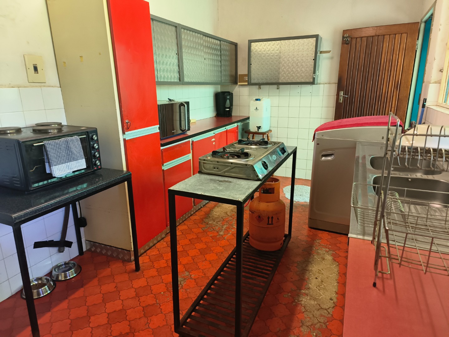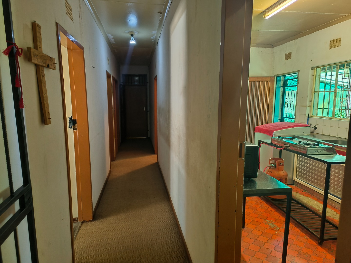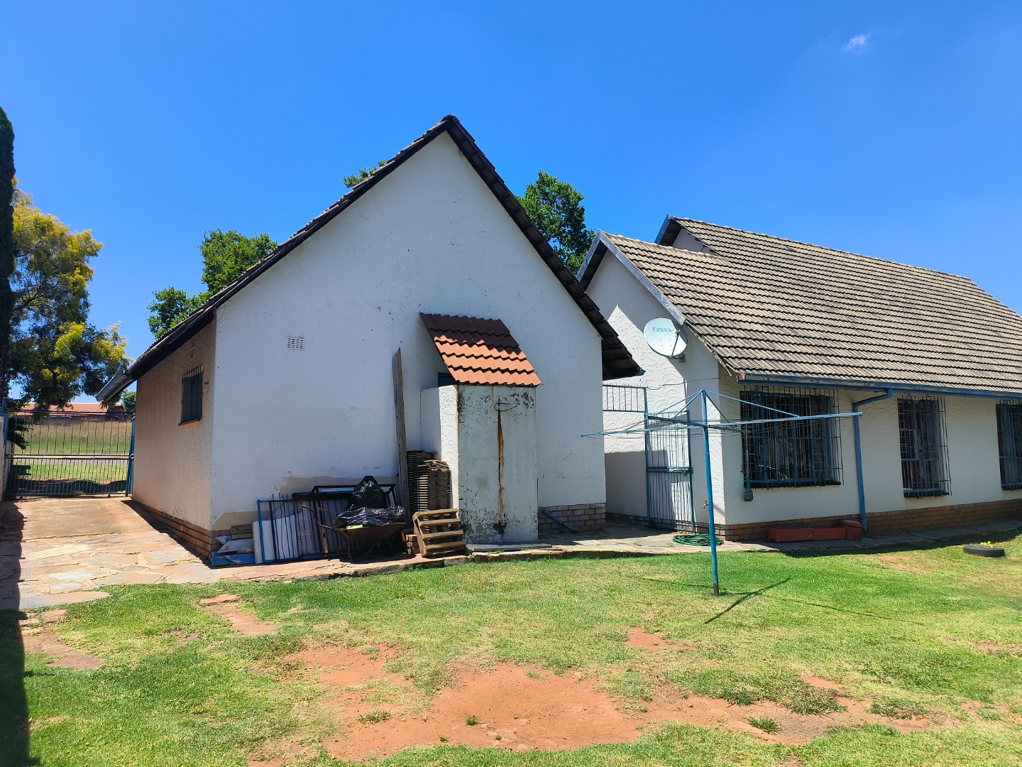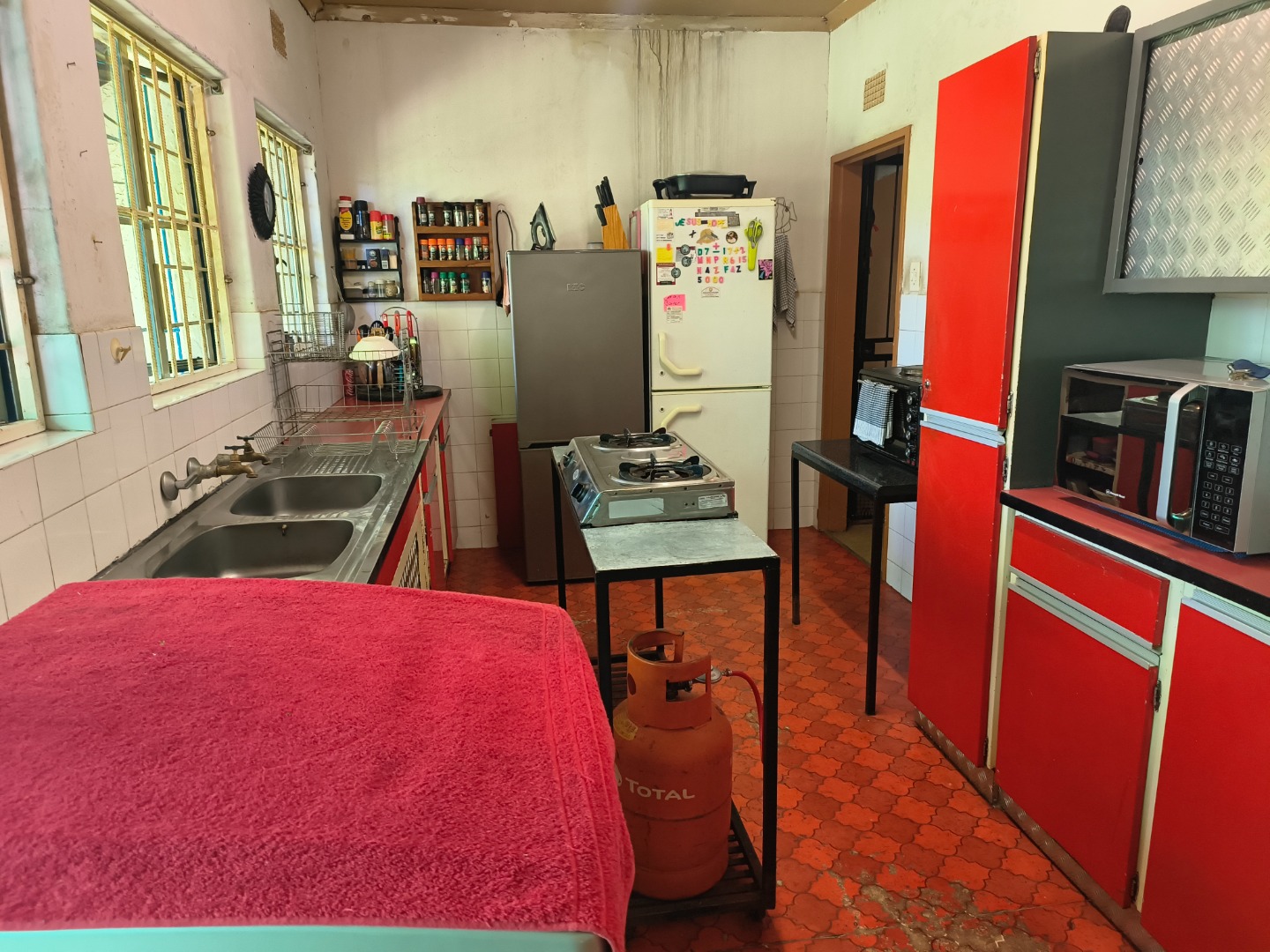 This house, of considerable size, located in Wilro Park, boasts large rooms and offers ample secure extra parking space, which may be just what you need. It requires a new family who can offer TLC and put their own stamp on it. Step in through the entrance hall into the open-plan lounge and dining room, featuring a bay window, carpeted floors, and a fireplace (closed chimney). The TV room is currently used as an extra bedroom. The kitchen, with steel cupboards and space for a washing machine, is just adjacent to the reception areas. and also leads to an outside roofed patio. The passage leads to 3/ 4 bedrooms and 2 Bathrooms. (MES and both have baths and hand showers)
