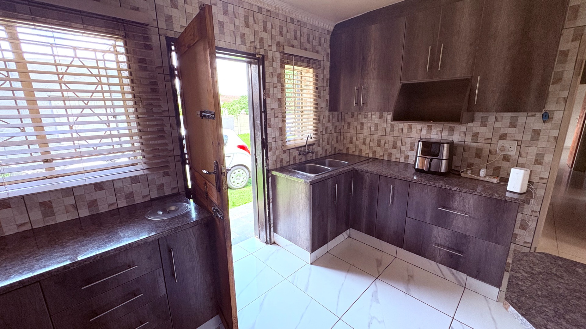 Outdoor living is enhanced by a private swimming pool. The property also benefits from a lush garden, a paved driveway, and two garages, ensuring secure parking and additional storage. A significant advantage of this property is the inclusion of a second house or flatlet, offering versatile options for extended family, guests, or potential rental income.