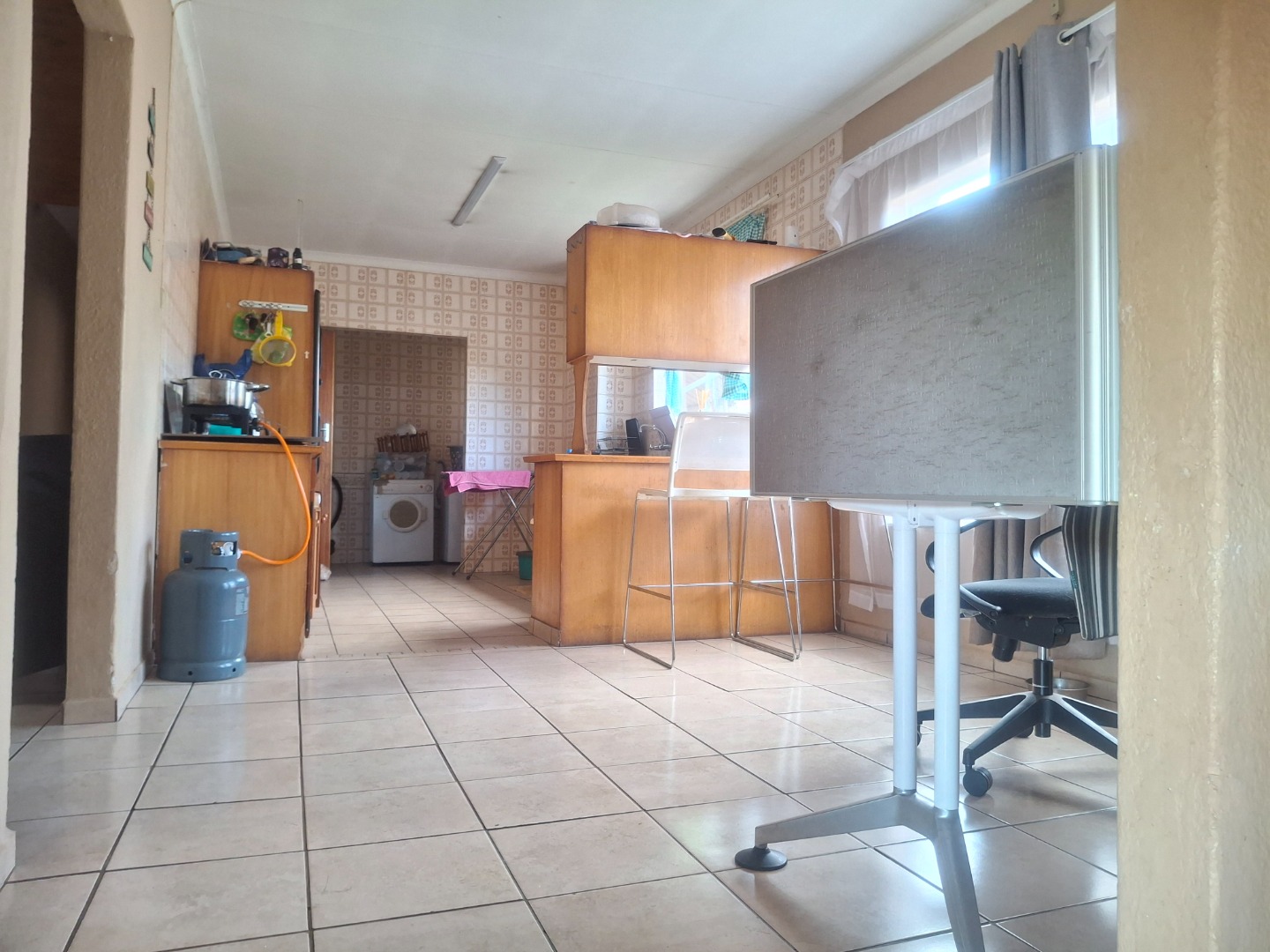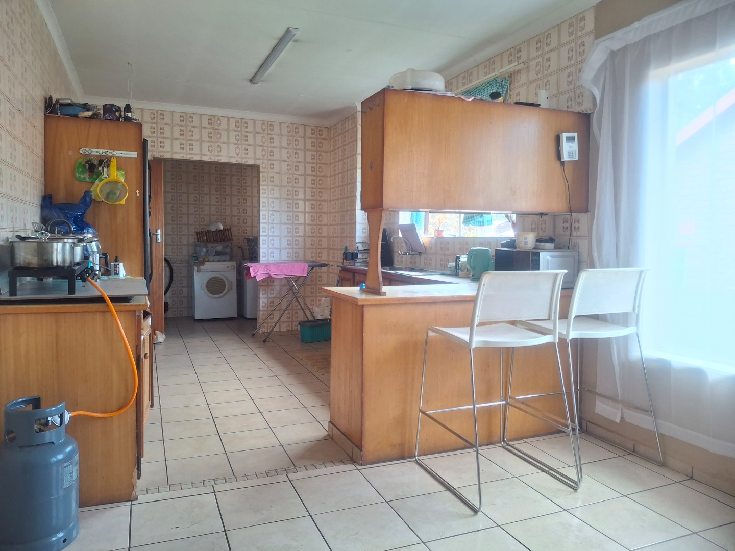 Step inside to find a home designed for practical living, boasting two spacious lounges that provide ample room for relaxation and entertaining. Throughout the main living areas, durable tiled flooring is paired with distinctive wooden plank ceilings, adding character and warmth. Large windows and sliding door ensure abundant natural light fills the interiors, creating a bright and welcoming atmosphere.