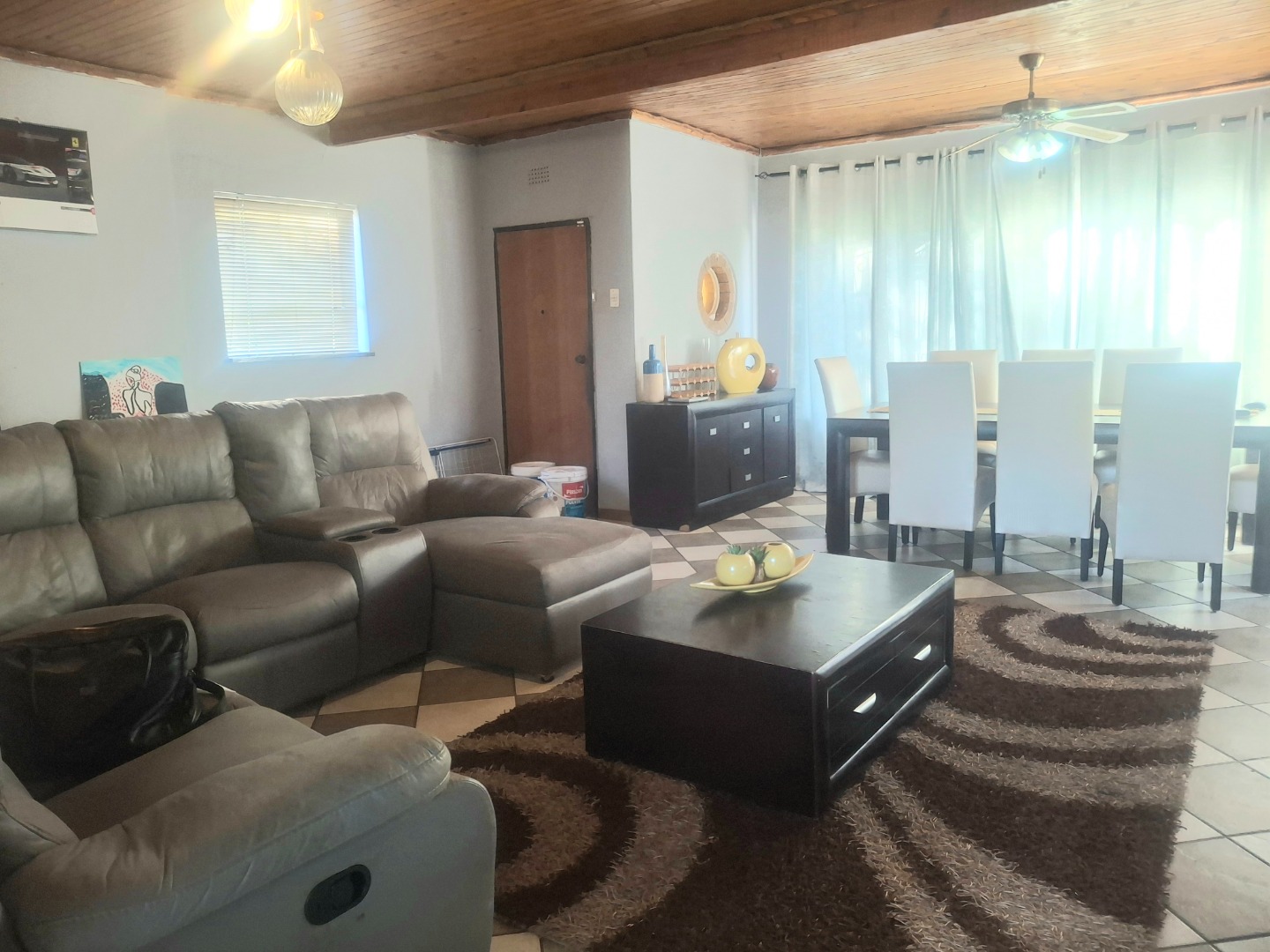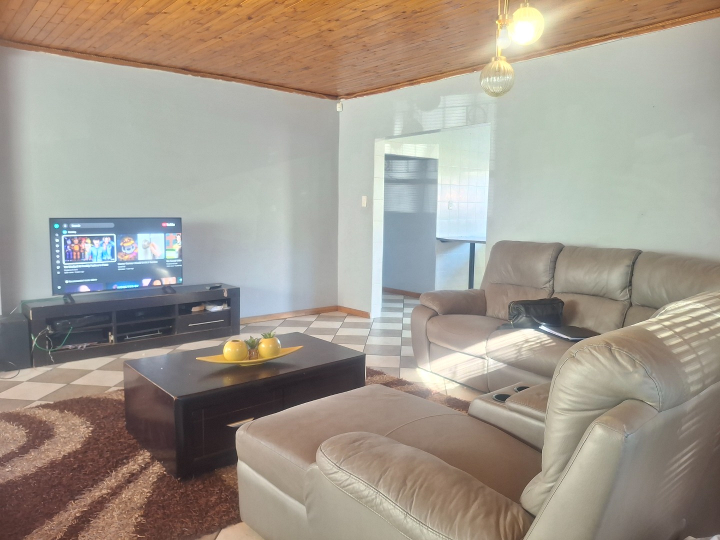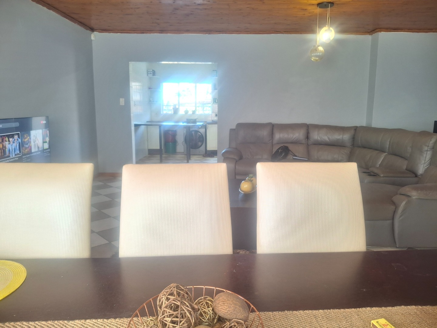Step inside to find a thoughtfully laid-out interior designed for comfortable living. This home features three well-proportioned bedrooms and a single bathroom. The living spaces include a spacious lounge and a dedicated dining room, offering an open-plan feel that promotes seamless interaction. The kitchen is functional, ready to cater to your culinary needs, while attractive wood ceilings add a touch of character throughout.