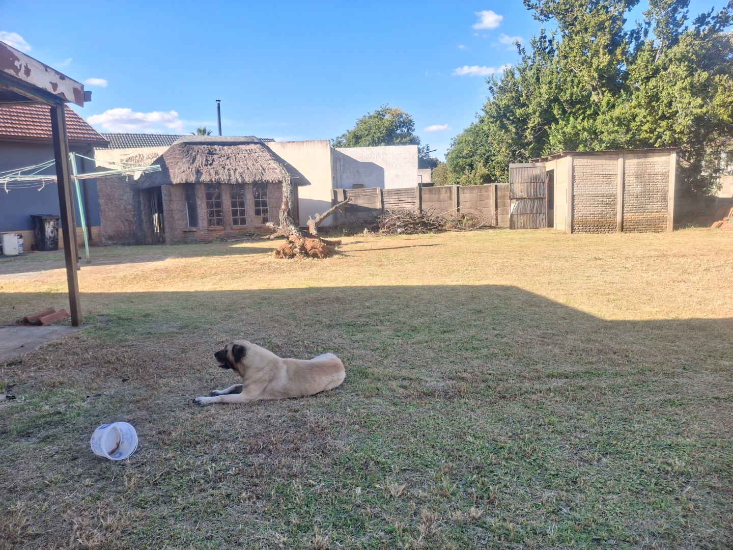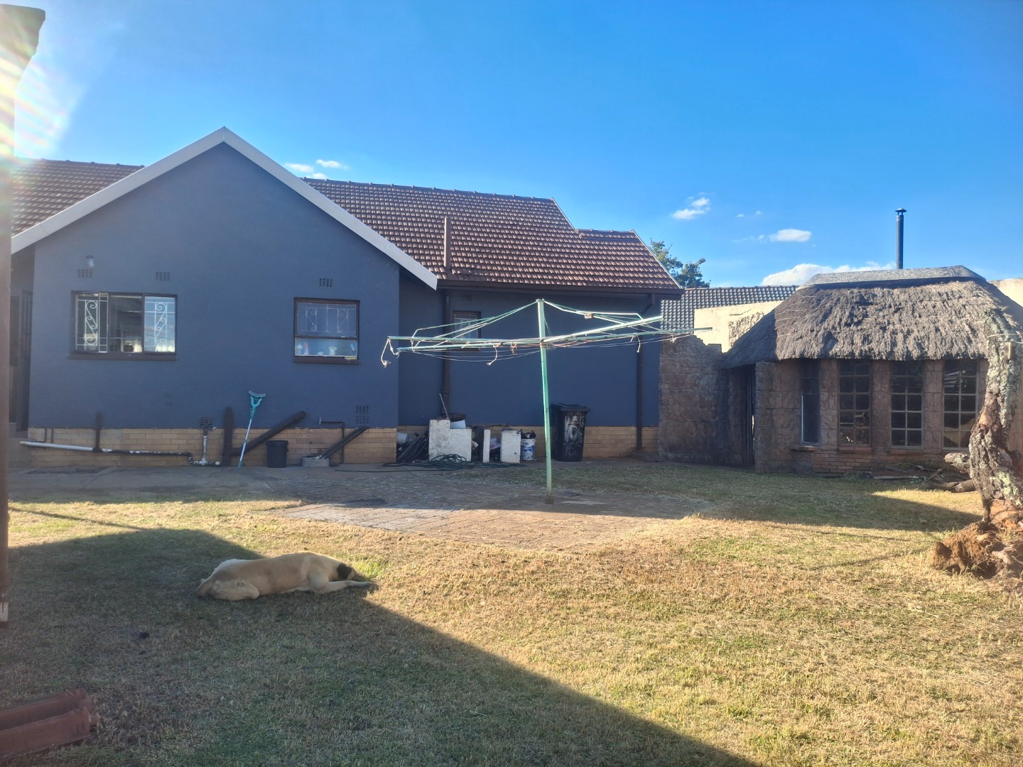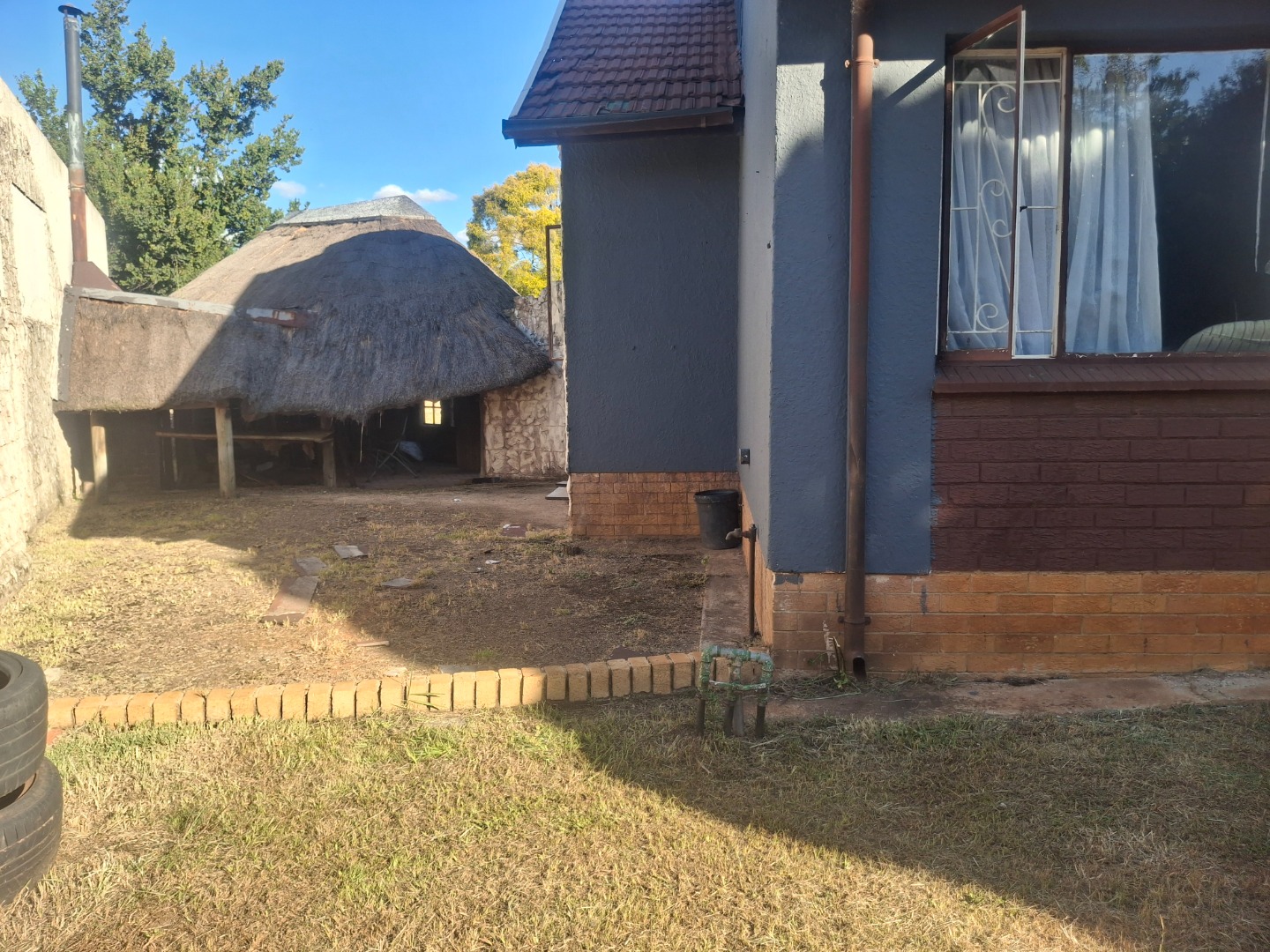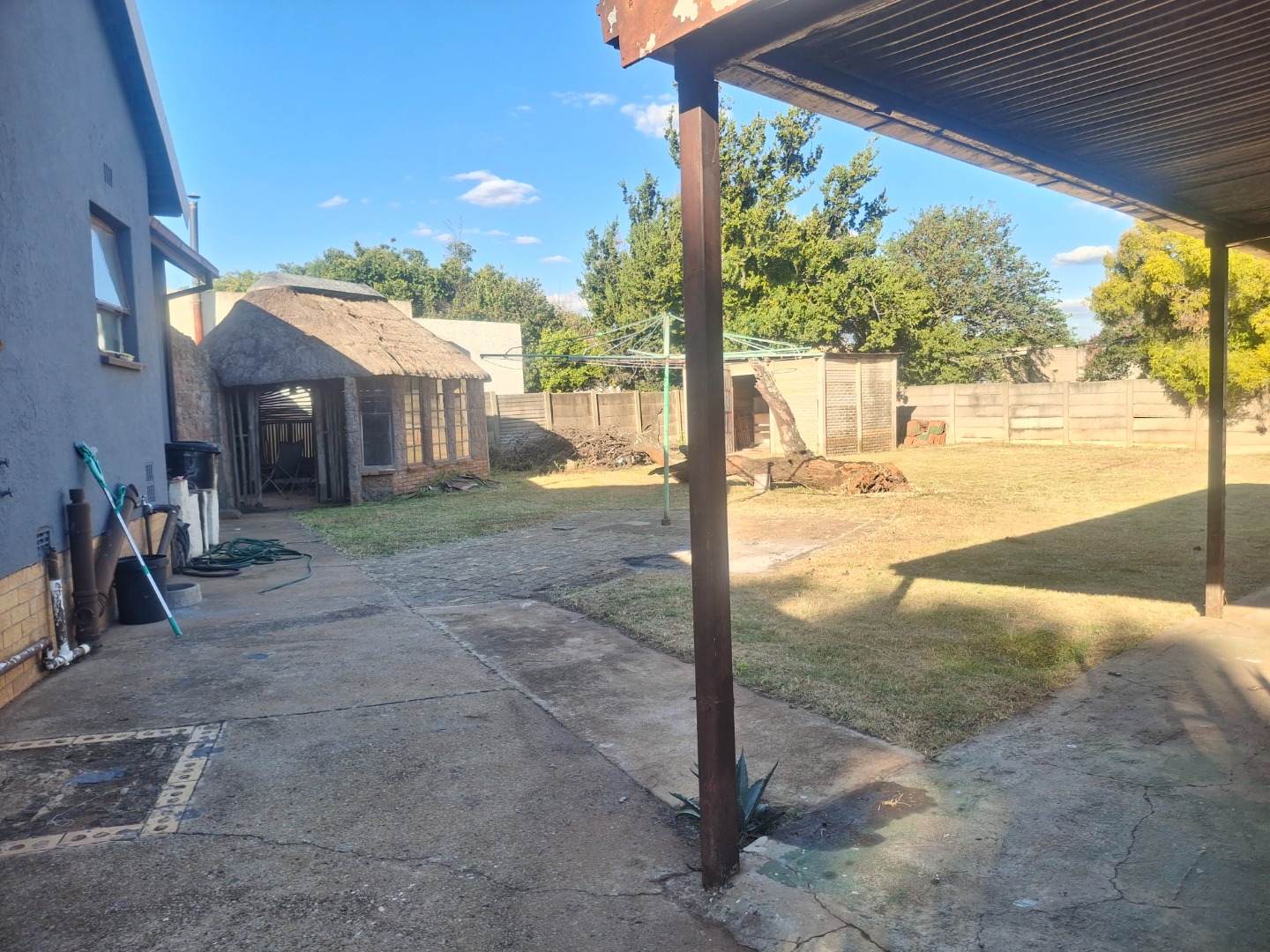The outdoor area is designed for enjoyment and practicality. Beyond the extensive paving, you'll find a garden space, perfect for relaxation or potential landscaping. Entertain guests under the lapa, complete with a built-in braai, ideal for South African outdoor living. Additional conveniences include outside toilets and laundry area.