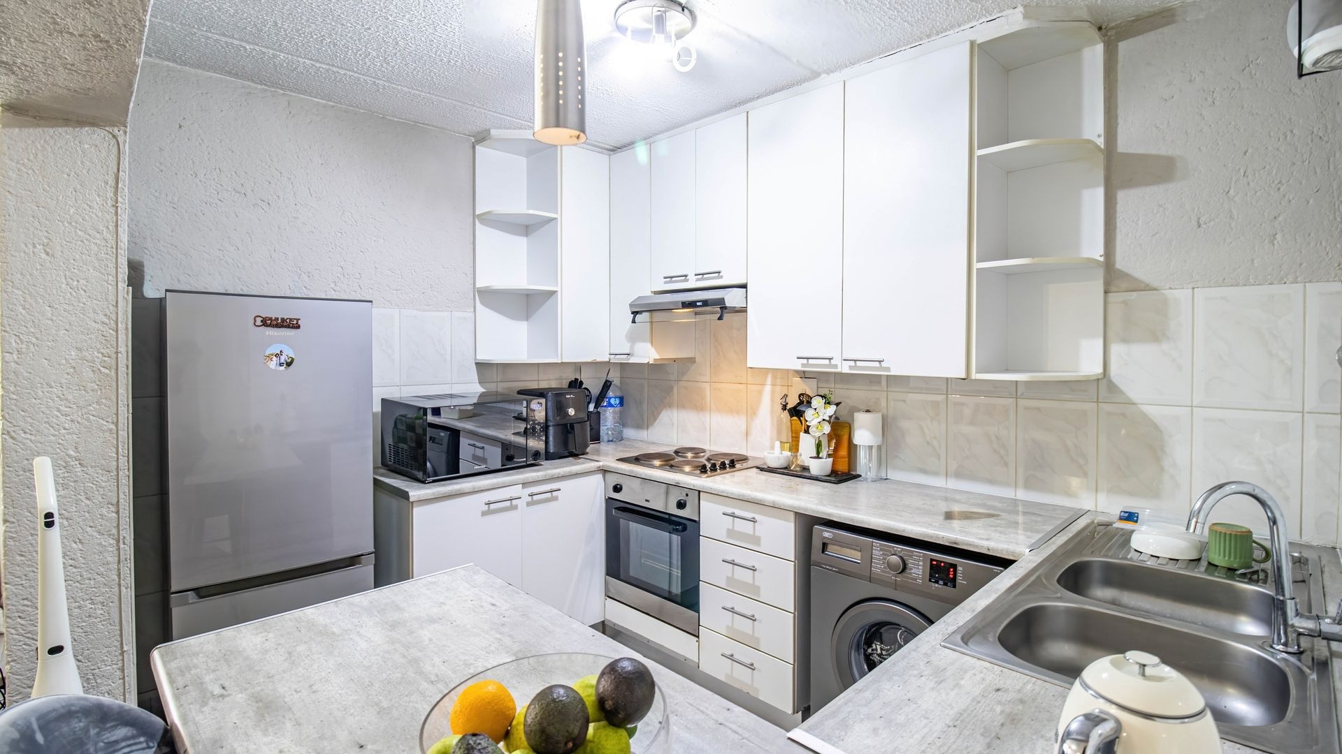 cupboard space for two, the 2nd Bed is for a small child or awesome Study! The Open plan kitchen has space