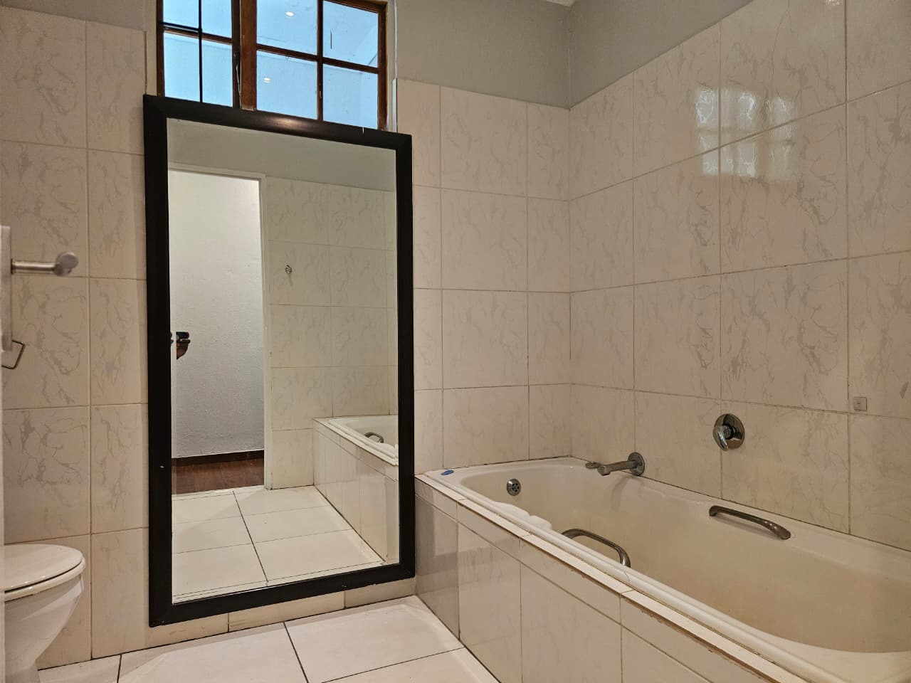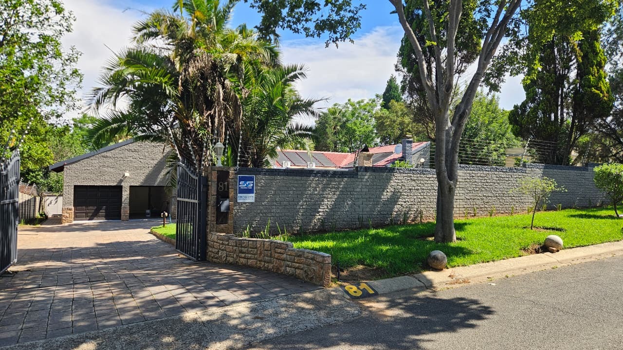 Nestled in the desirable suburban enclave of Paulshof, Sandton, this charming residence offers a secure and tranquil lifestyle within a gated community. The property immediately captivates with its attractive stone-textured exterior, tiled roof, and a spacious paved driveway leading to a double garage. Visible solar panels on the roof underscore a commitment to modern efficiency, while numerous palm trees create a welcoming, tropical ambiance.