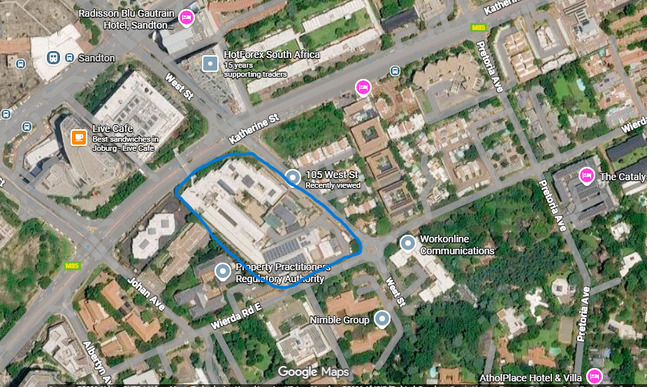 It is surrounded by the corporate offices of Alexander Forbes, EY and Weksman Attorneys.