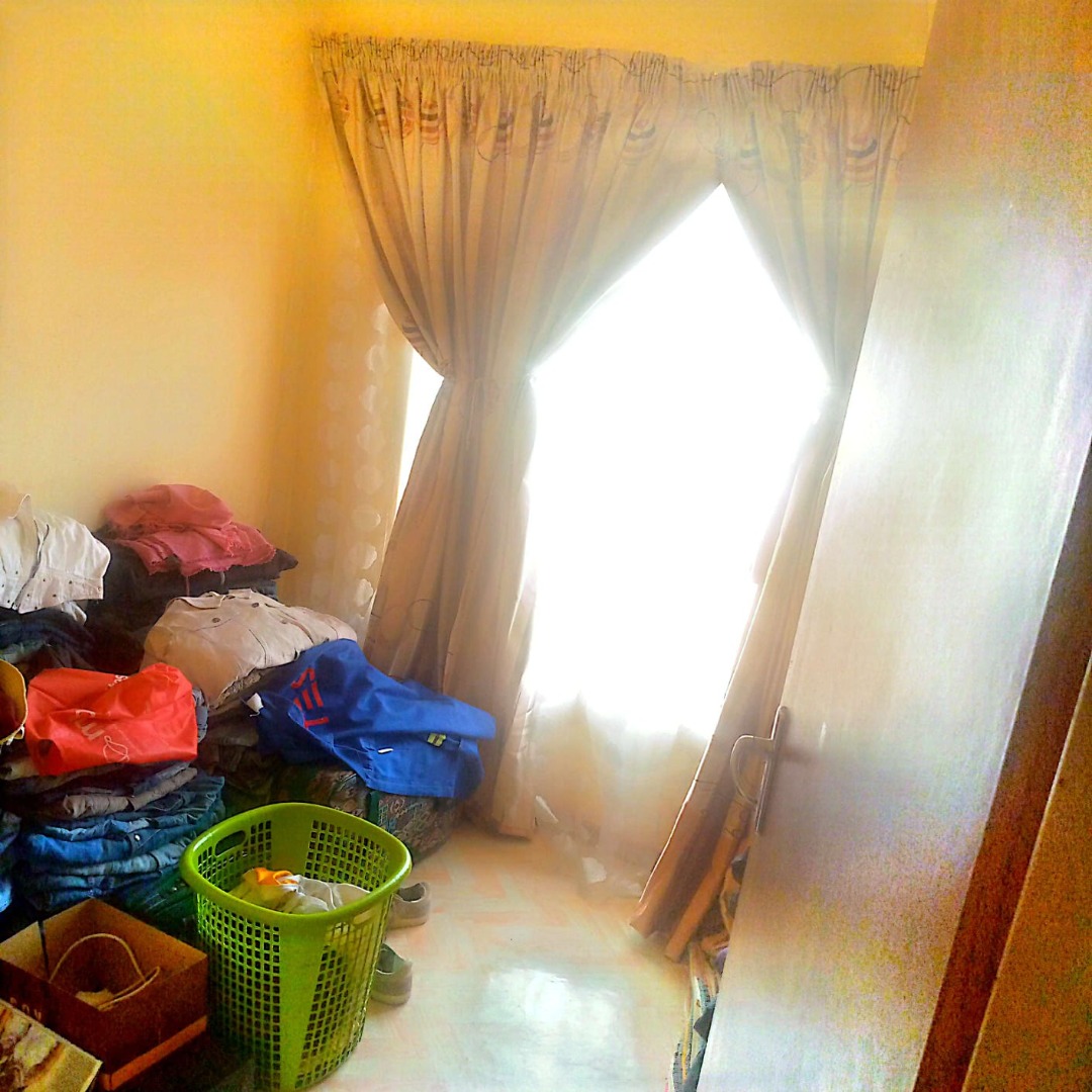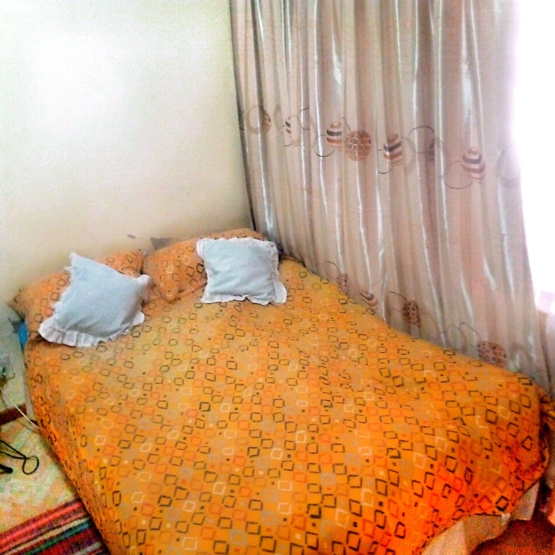 Accommodation comprises two functional bedrooms, each offering a private retreat. These rooms feature neutral walls and tiled flooring, providing a clean canvas for personalisation. Curtains are installed to ensure privacy and light control. A single well-appointed bathroom serves the household.