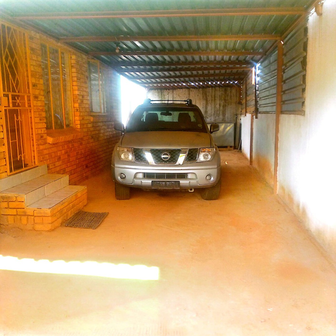 This residential property, situated in the established Soshanguve M, Soshanguve, South Africa, presents a functional and secure living environment. The frontage features a robust metal access gate, ensuring controlled entry, complemented by a low-maintenance brick exterior and a shaded carport for convenient parking. The erf spans 216.00 sqm, offering ample outdoor space.