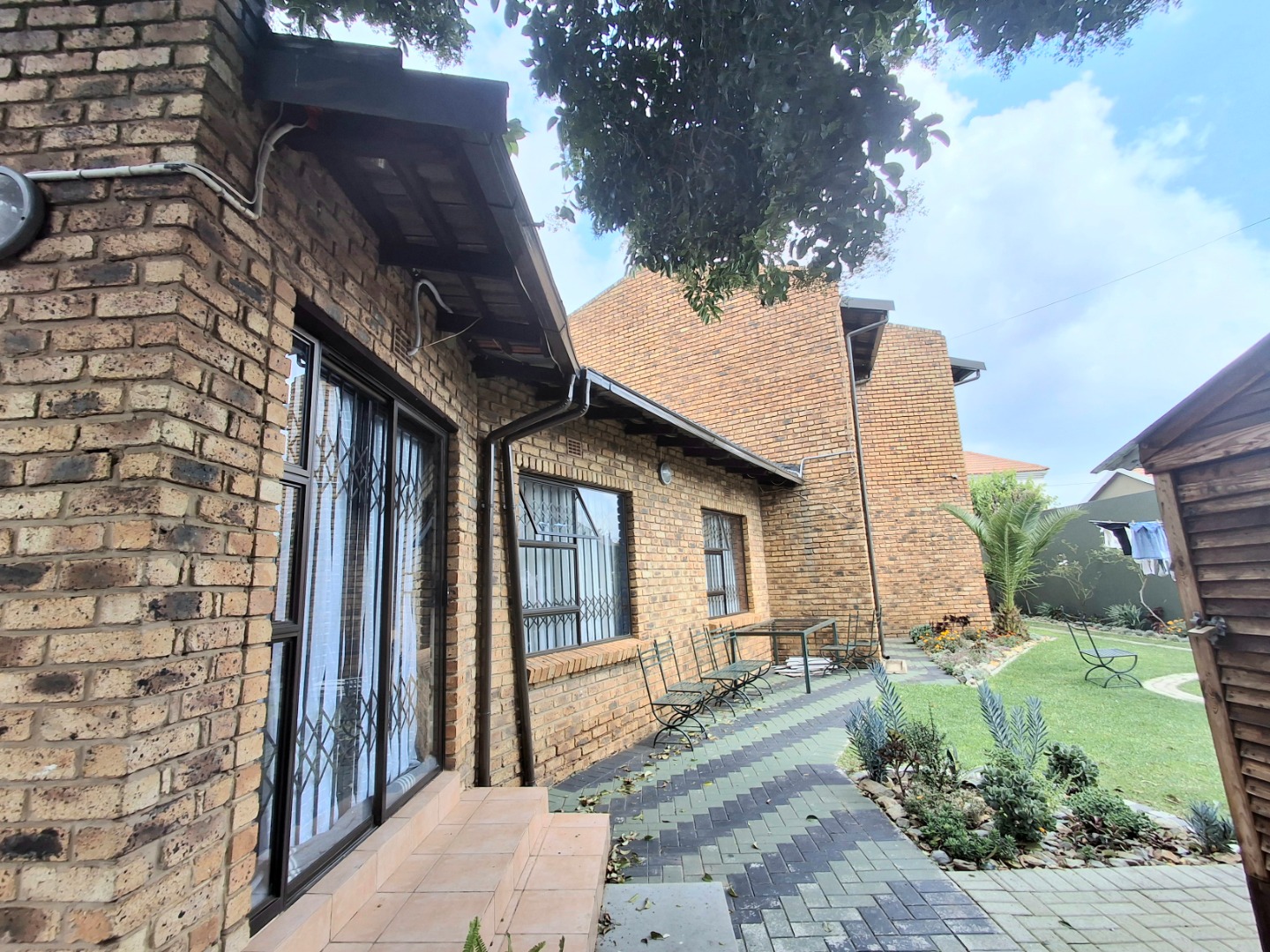 Step outside to a private oasis featuring a refreshing swimming pool and a well-maintained garden, ideal for relaxation and outdoor gatherings. The property benefits from secure parking, including two garages and an additional parking space, ensuring convenience for residents and guests. Enhanced security features such as an access gate, security gate, burglar bars, and a totally walled perimeter provide peace of mind. Paved areas contribute to the property's neat presentation and ease of maintenance.