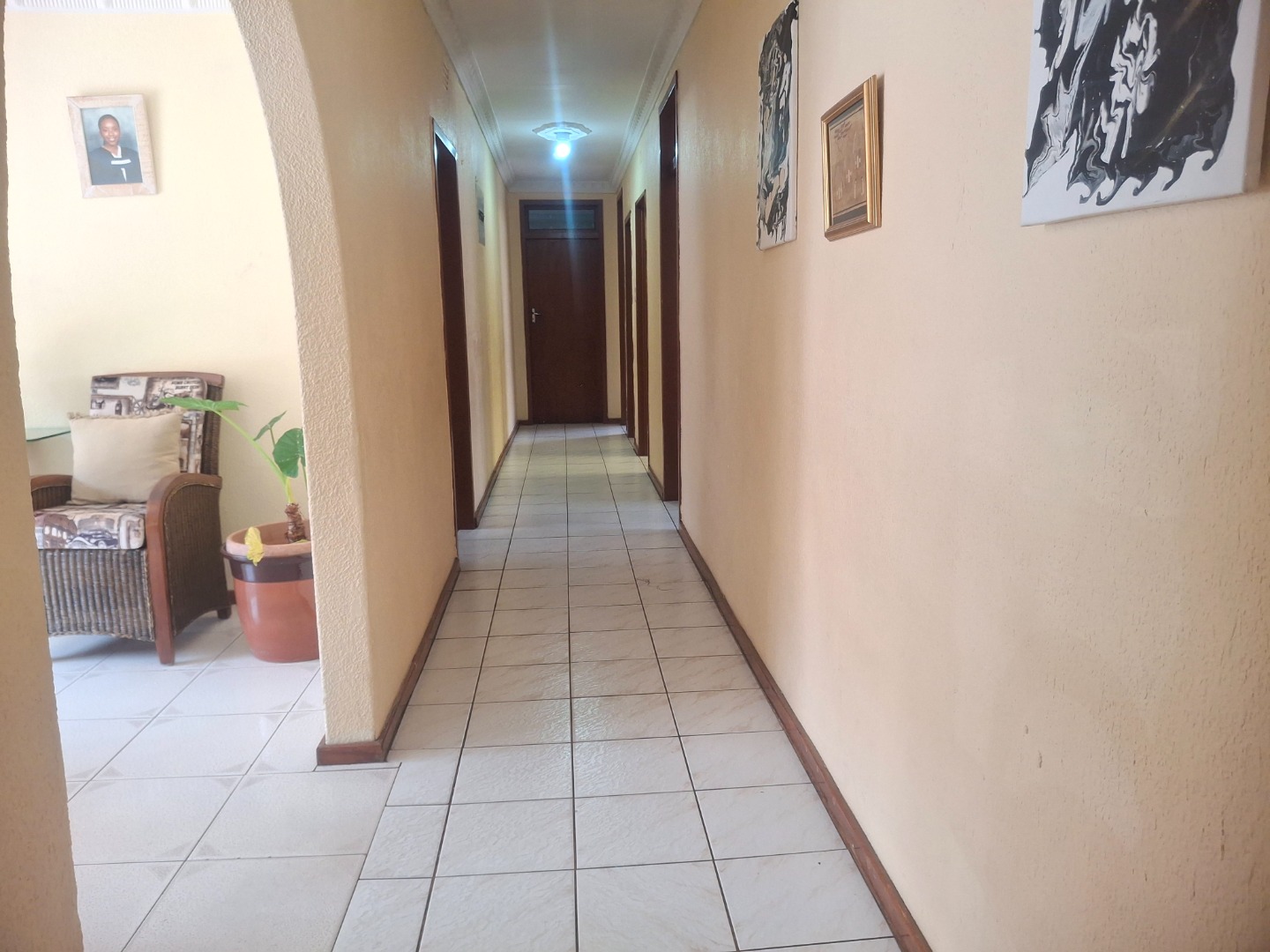 Discover this spacious five-bedroom family home, ideally situated in the vibrant suburban community of Diepkloof, Soweto. Boasting a generous 371 sqm under roof on a 600 sqm erf, this property offers ample space for comfortable living and entertaining. The exterior presents a traditional charm with a tiled roof, light-toned walls, and a paved brick driveway leading to a double garage, complemented by established gardens and secure access.