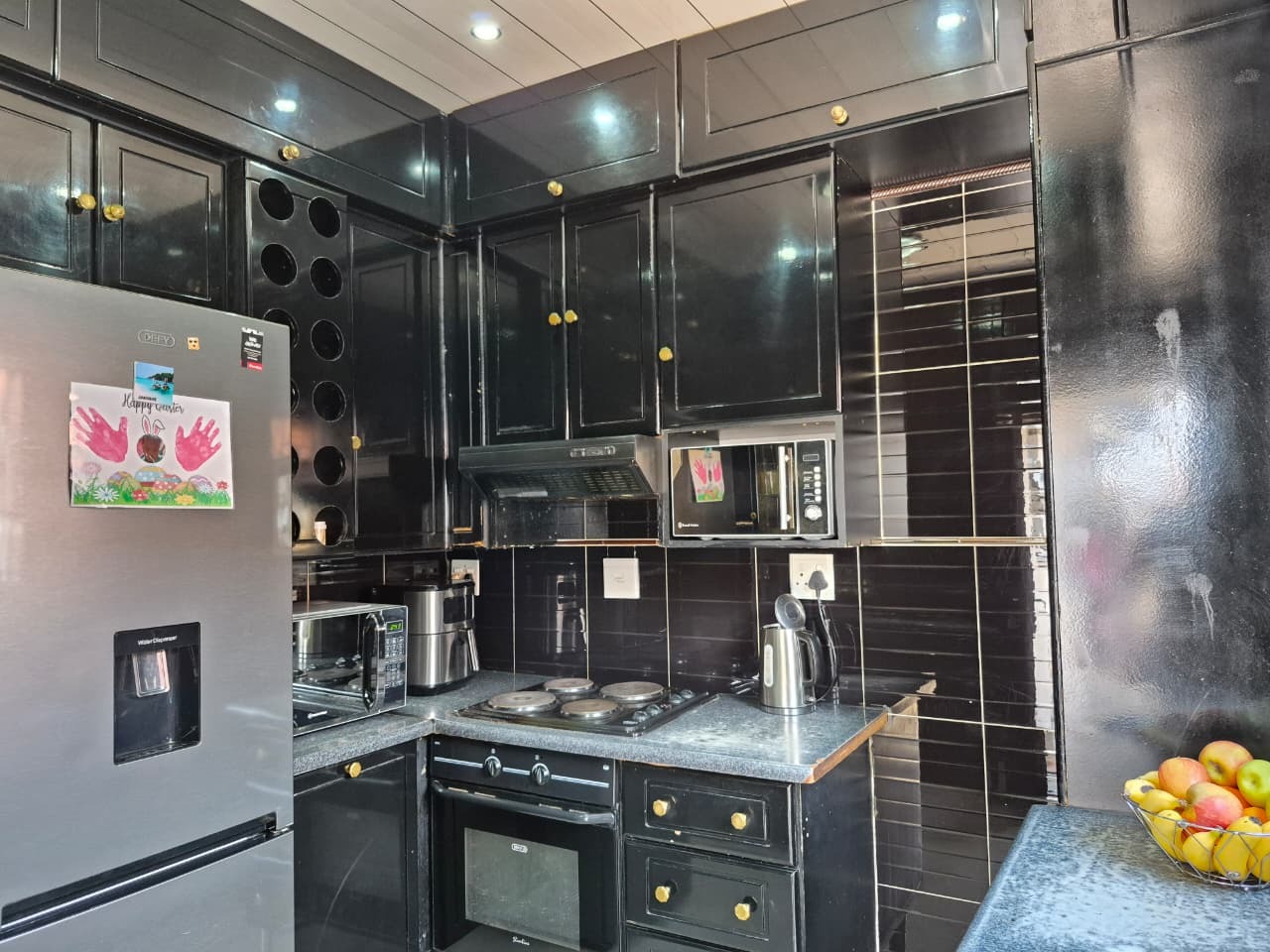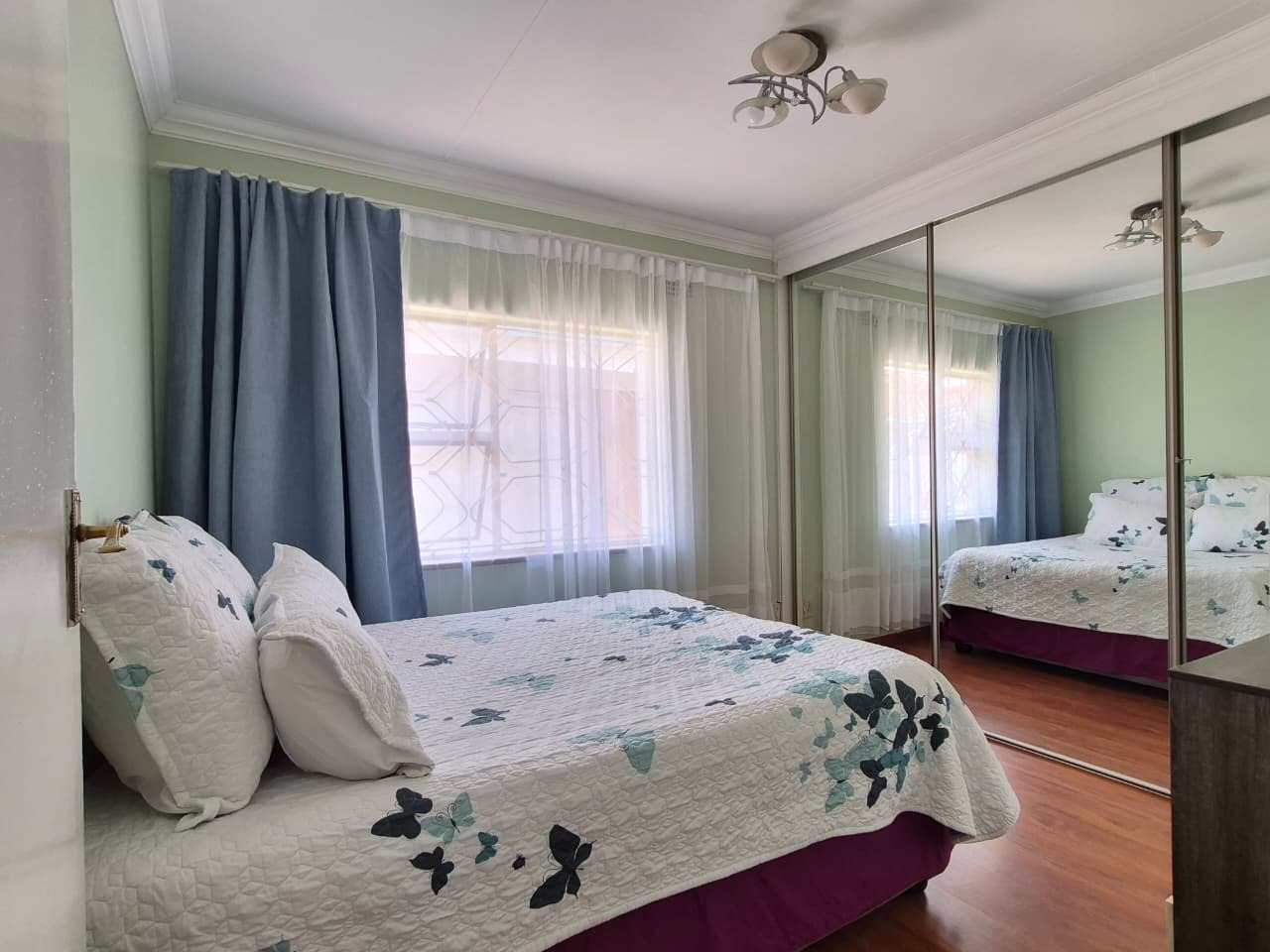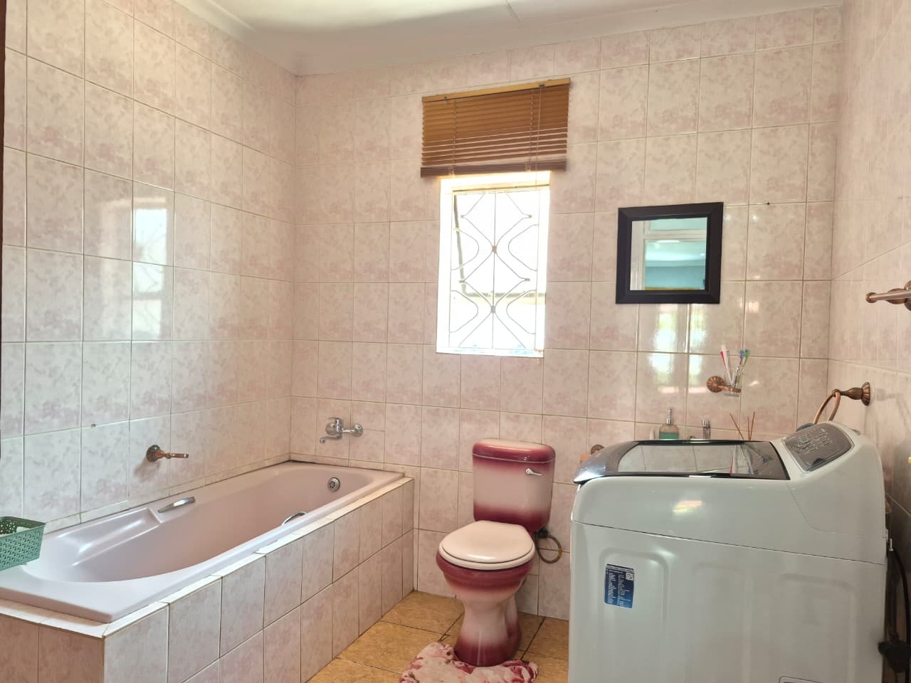 This family-friendly home offers three comfortable bedrooms and two well-appointed bathrooms, providing ample space for residents. Practical outdoor features include a double garage and one additional parking spaces on the paved driveway. The property benefits from a garden and convenient outside toilets. Security is paramount, with the home being totally walled, featuring an access gate, and fitted with burglar bars for peace of mind. Fibre connectivity is also available, catering to modern communication needs.