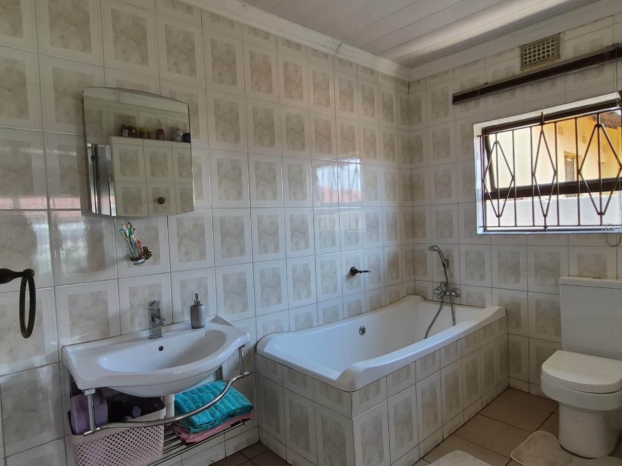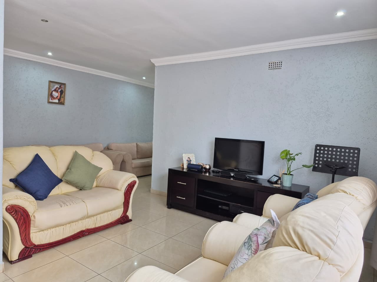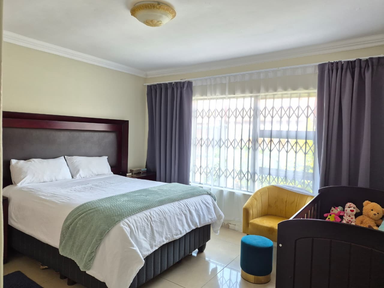 This family-friendly home offers three comfortable bedrooms and two well-appointed bathrooms, providing ample space for residents. Practical outdoor features include a double garage and one additional parking spaces on the paved driveway. The property benefits from a garden and convenient outside toilets. Security is paramount, with the home being totally walled, featuring an access gate, and fitted with burglar bars for peace of mind. Fibre connectivity is also available, catering to modern communication needs.
