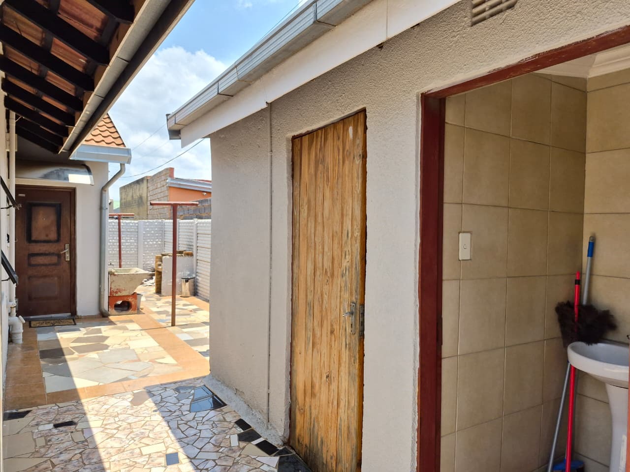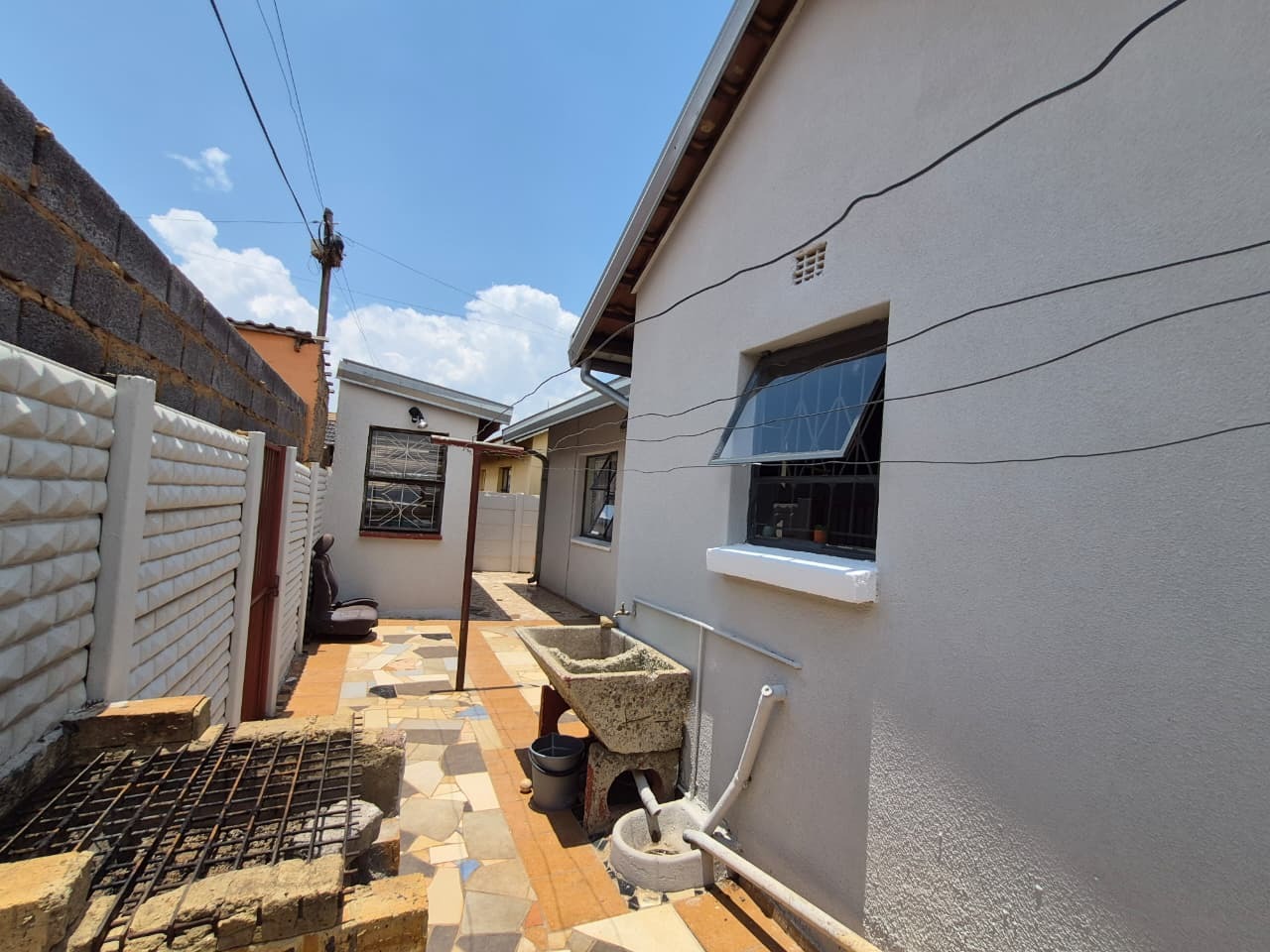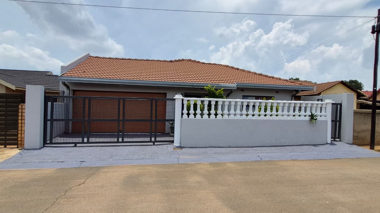 Welcome to this inviting single-story residence located in the established suburban area of Dobsonville Ext 1, Soweto. Presenting a well-maintained exterior, the home features a classic terracotta tile roof and a light grey facade, enhanced by secure modern gates for both vehicles and pedestrians. A decorative white balustrade and paved front area contribute to its appealing kerb appeal, offering a secure and welcoming first impression.