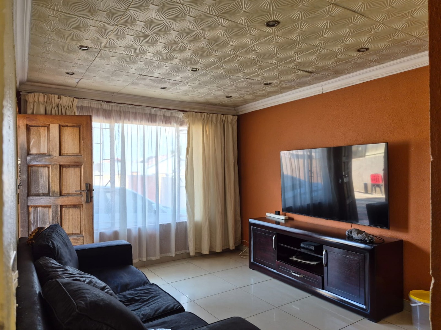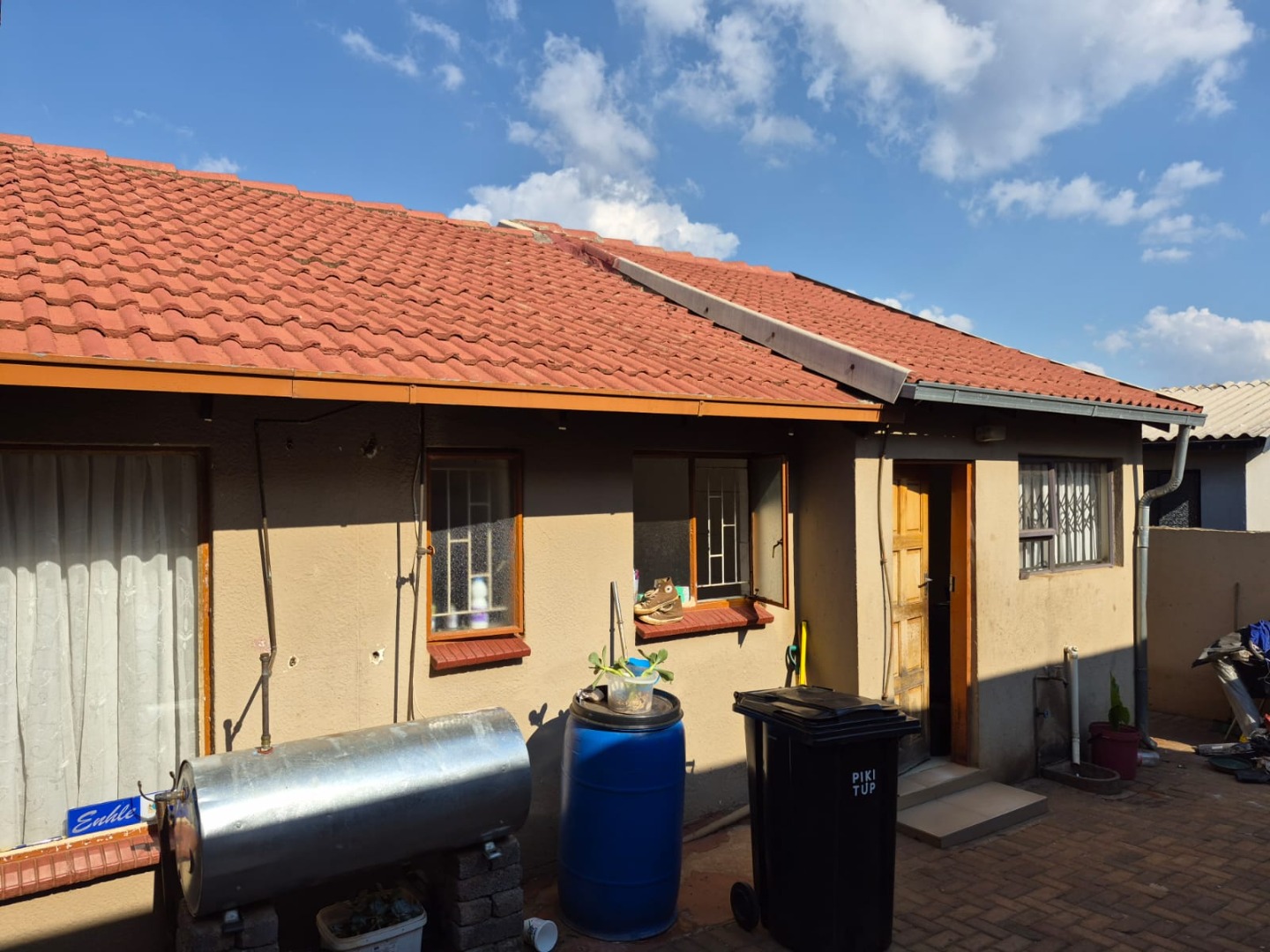 Discover this inviting residential property located in Doornkop, Soweto, offering a practical layout and secure living. The home presents a solid kerb appeal with a durable brick exterior and a tiled roof, complemented by a well-maintained brick perimeter wall featuring both pedestrian and vehicle access gates. A fully paved driveway and frontage provide ample off-street parking for up to three vehicles.