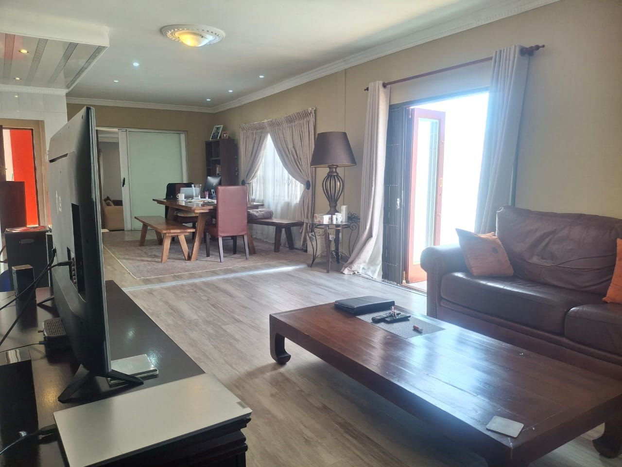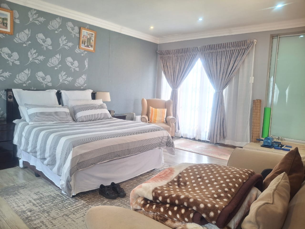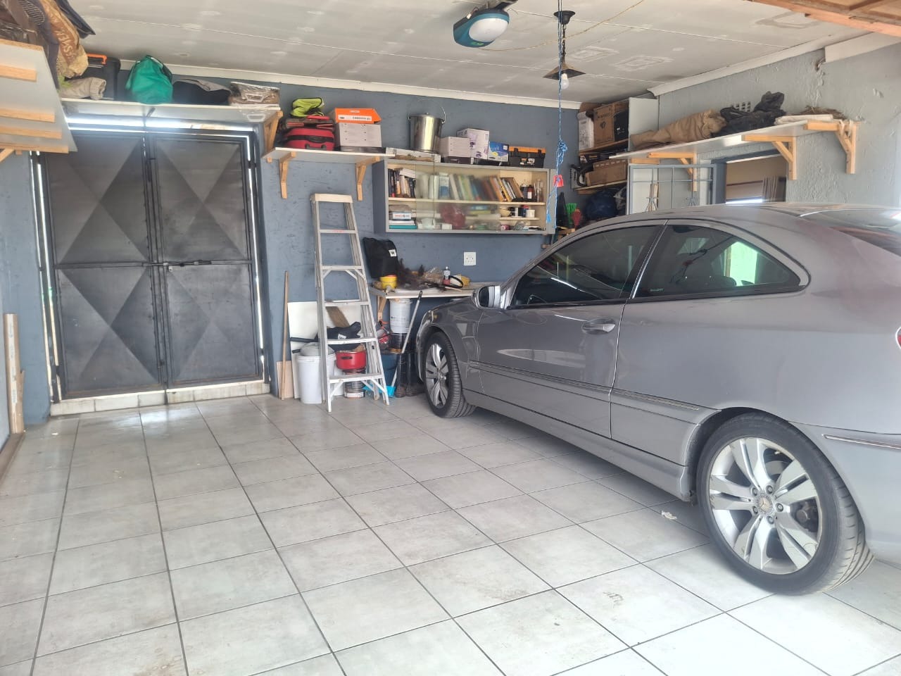 Outdoor living is facilitated by a private garden and paved areas, offering low-maintenance enjoyment. The property includes a double garage, providing secure parking. With pets allowed and outside toilets, this home is designed for practical family living. Security is paramount, featuring surveillance cameras, access gate, burglar bars, and a fully walled perimeter. Connectivity is ensured with fibre internet.
