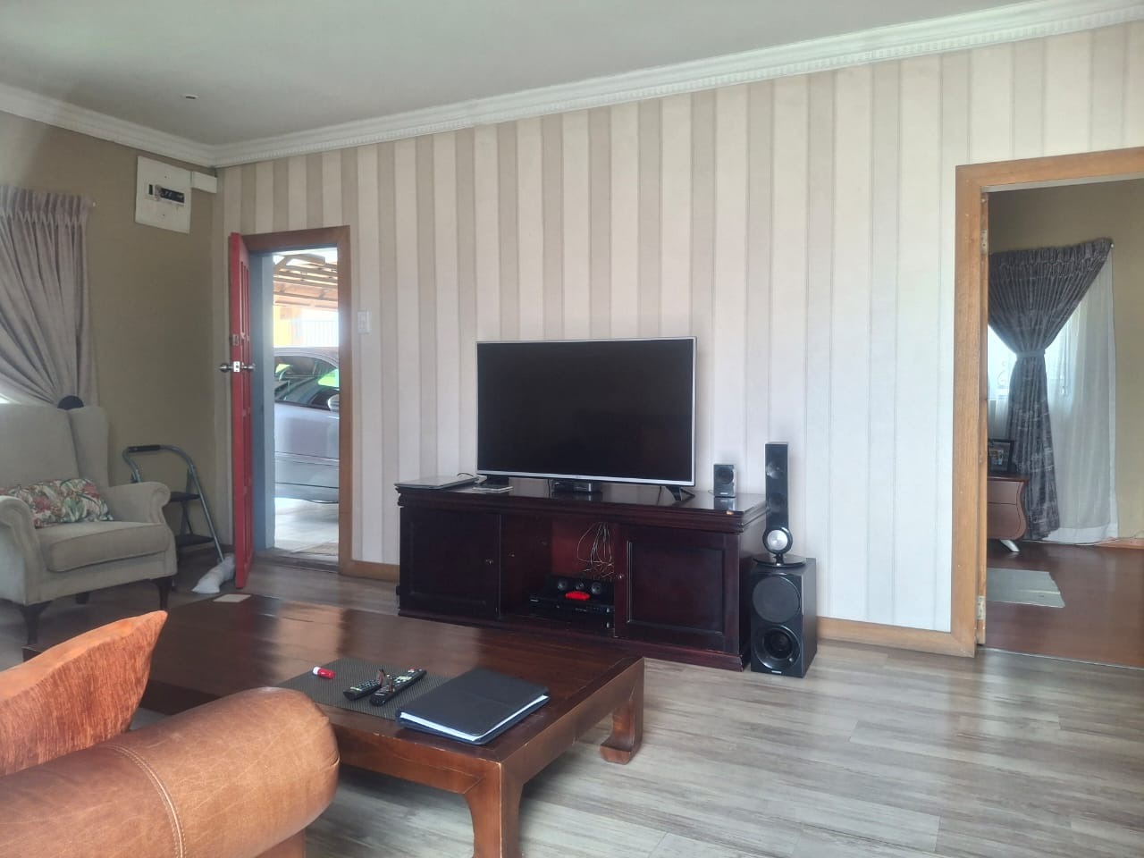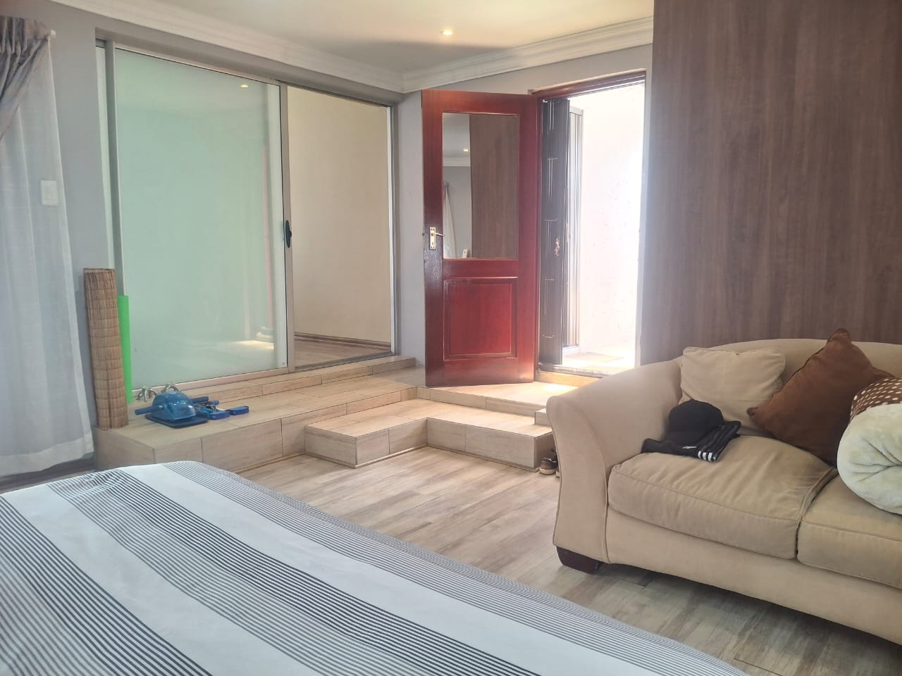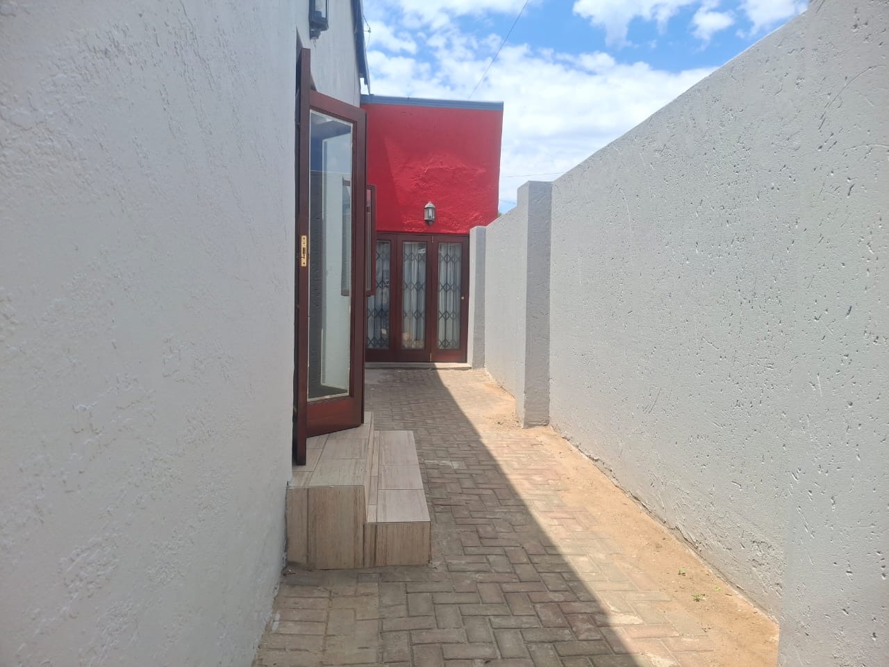 Outdoor living is facilitated by a private garden and paved areas, offering low-maintenance enjoyment. The property includes a double garage, providing secure parking. With pets allowed and outside toilets, this home is designed for practical family living. Security is paramount, featuring surveillance cameras, access gate, burglar bars, and a fully walled perimeter. Connectivity is ensured with fibre internet.