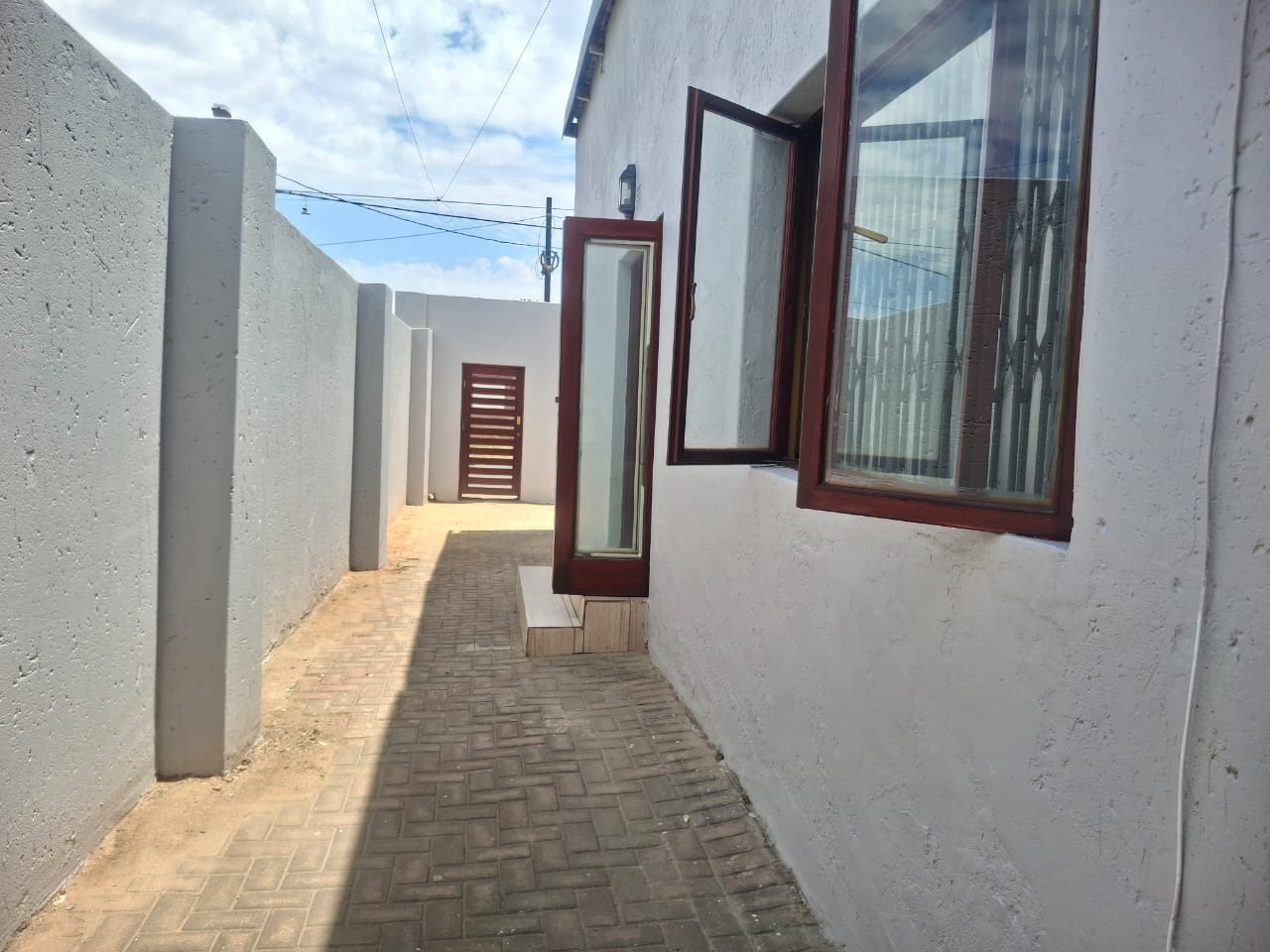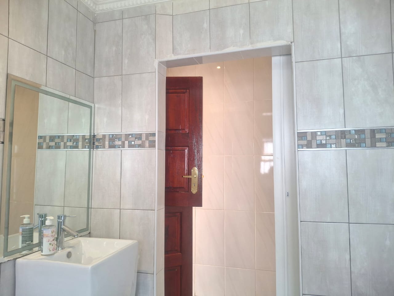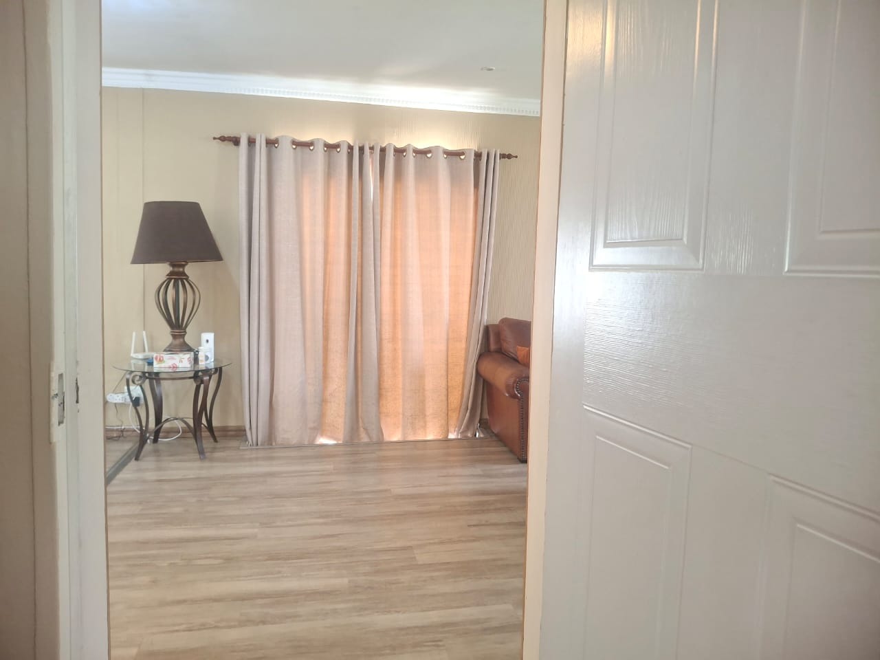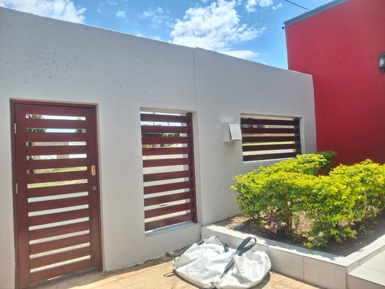 This inviting residence in Orlando West, Soweto, offers a blend of modern design and practical living. The property boasts excellent kerb appeal with its contemporary grey facade, striking red accents, and stylish wooden slatted garage door and pedestrian gate. A paved sidewalk and high perimeter walls enhance both aesthetics and privacy, creating a welcoming first impression.