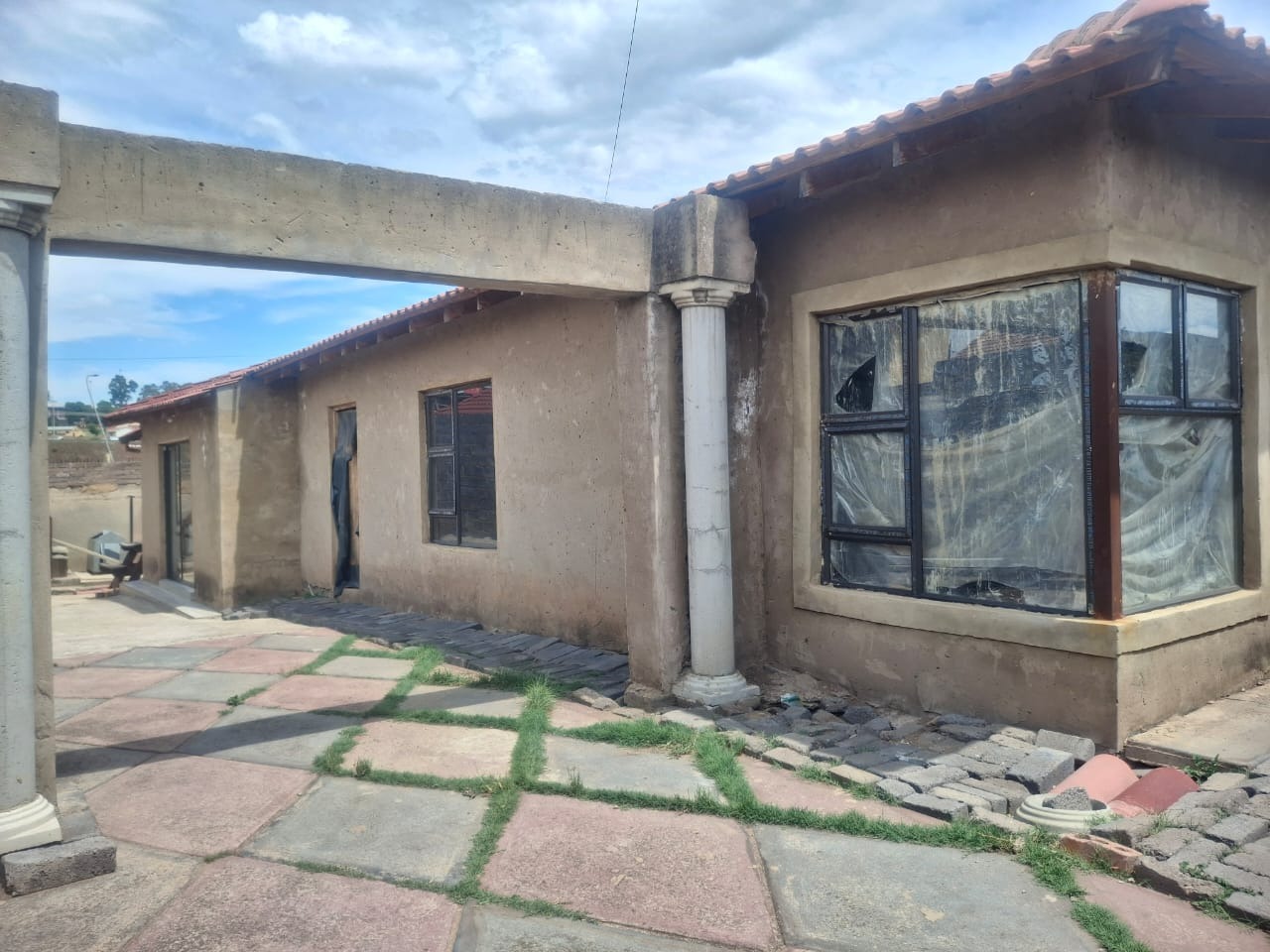 Externally, the property presents architectural columns and a tiled roof, offering a glimpse of its inherent character. The erf is totally walled and includes an access gate, ensuring privacy and security. The home is pet-friendly and includes a satellite dish, catering to modern lifestyle needs.