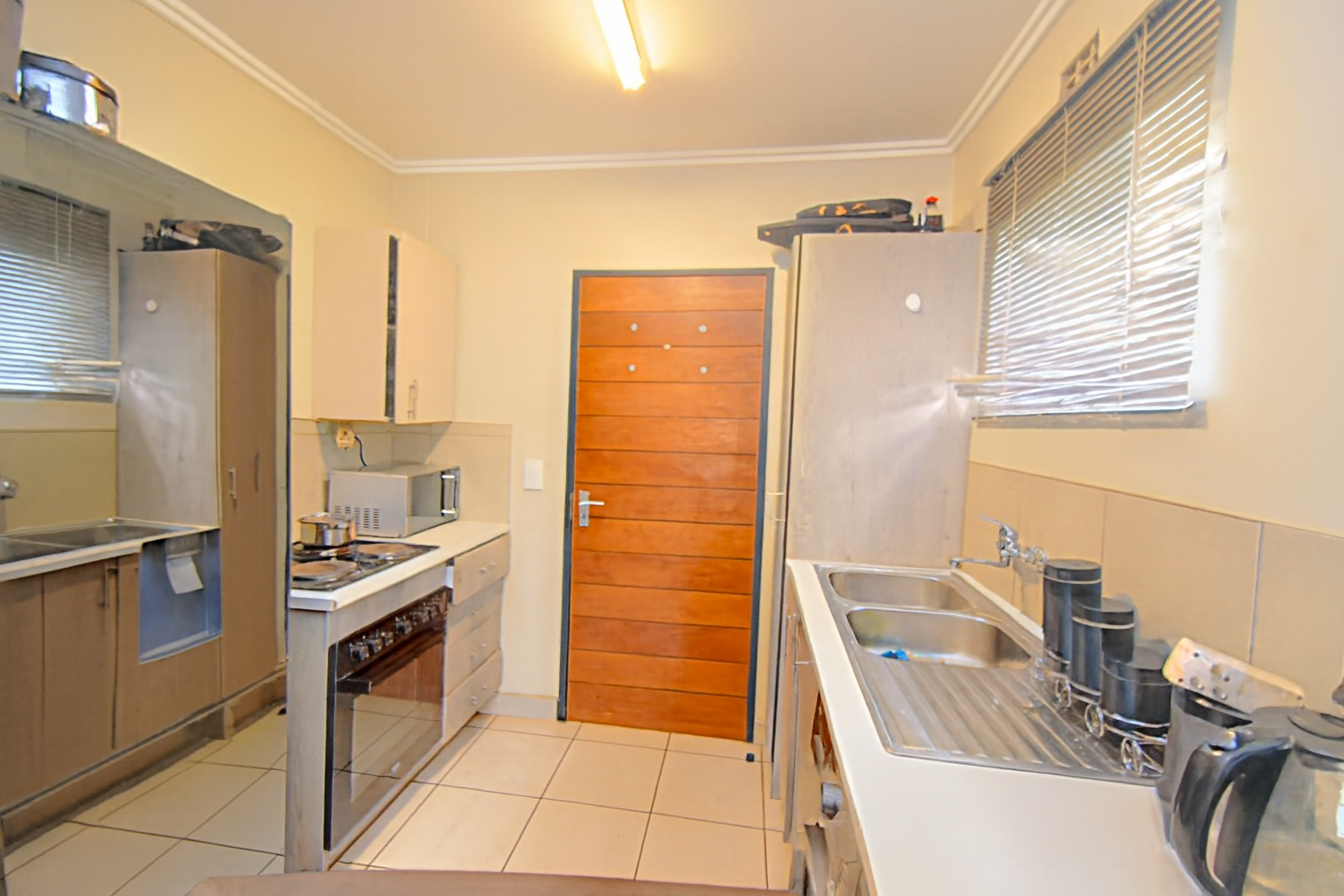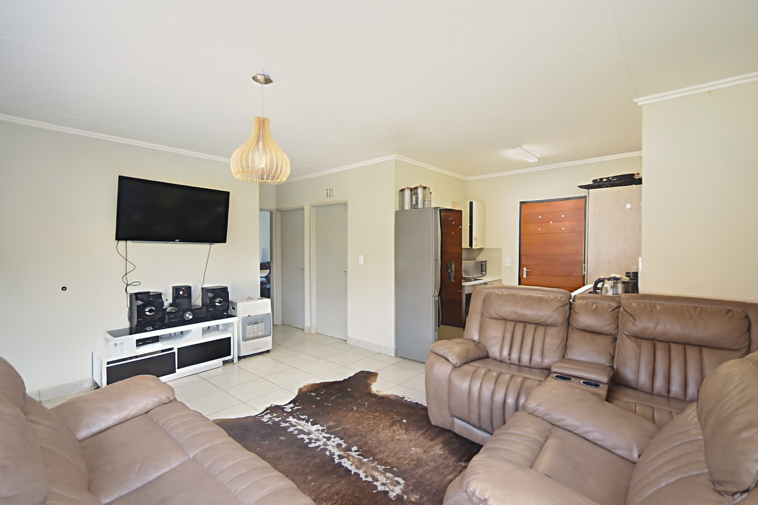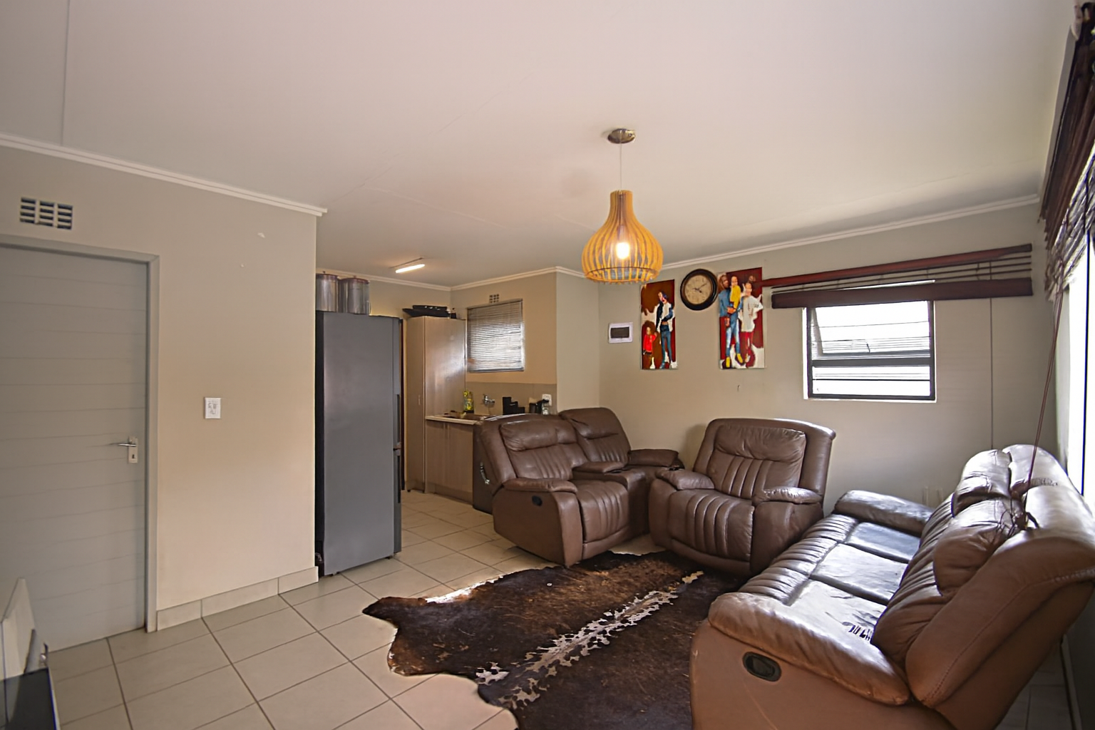 Beyond the interiors, the property offers a compact, partially grassed yard, ideal for low-maintenance outdoor living. Security is a key feature, with burglar bars on windows and a security gate enhancing peace of mind. The covered carport adds to the convenience, protecting your vehicle from the elements.