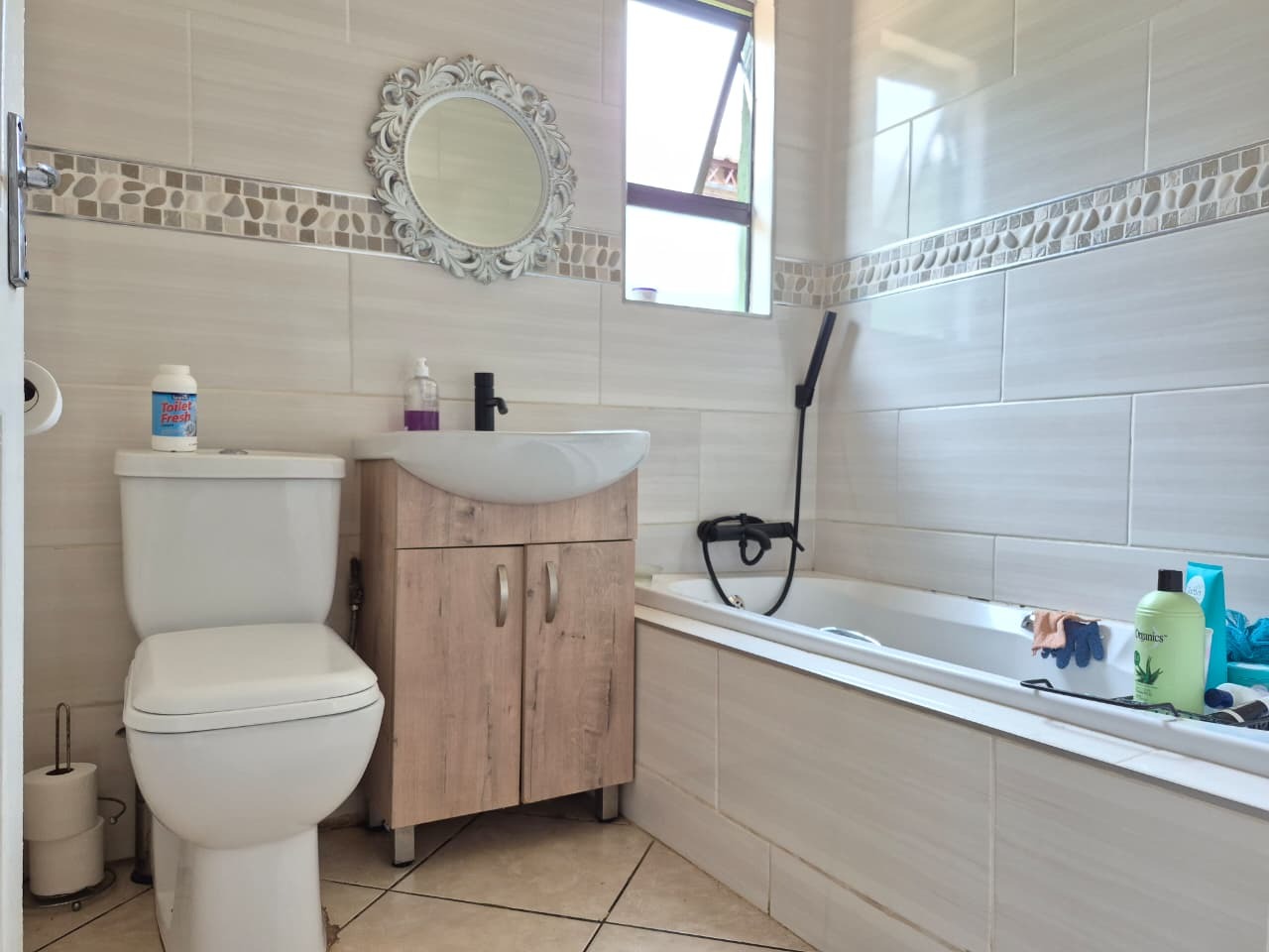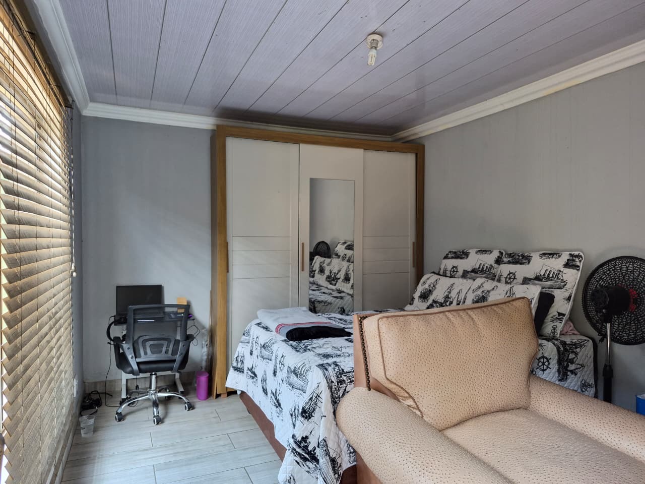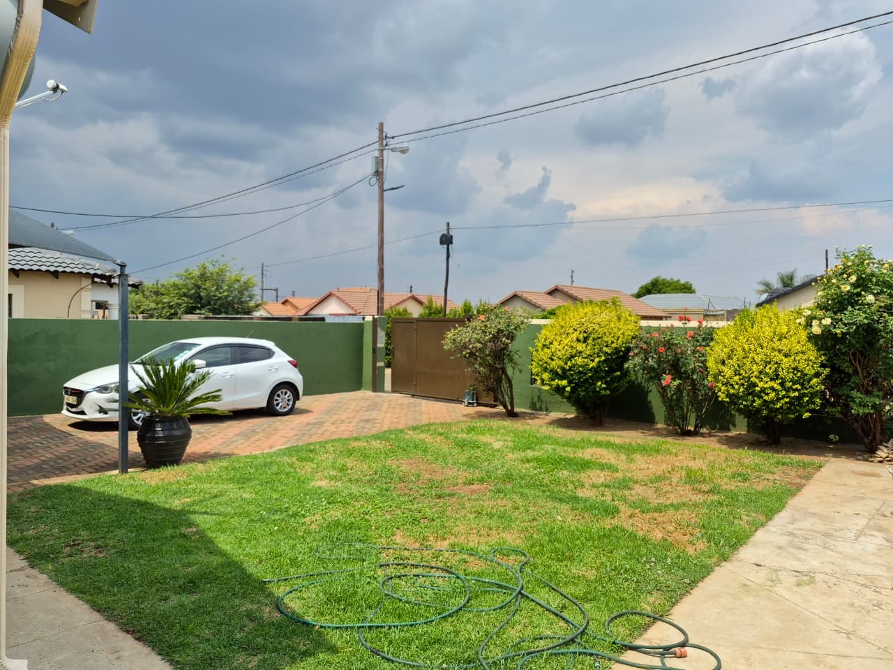 Discover this inviting 3-bedroom suburban home located in Protea Glen, Soweto. The property immediately presents a well-maintained exterior, featuring a solid dark green boundary wall with security spikes, ensuring privacy and peace of mind. A secure access gate opens to a neatly paved driveway, offering ample open parking for up to four vehicles, complemented by a carport structure for additional shelter. The front garden is thoughtfully landscaped with trimmed bushes, enhancing the home's kerb appeal.