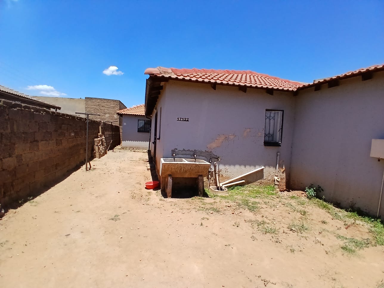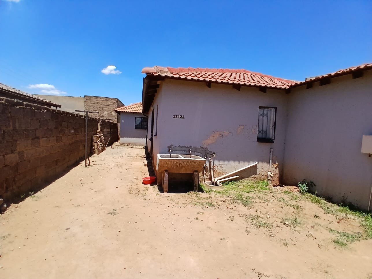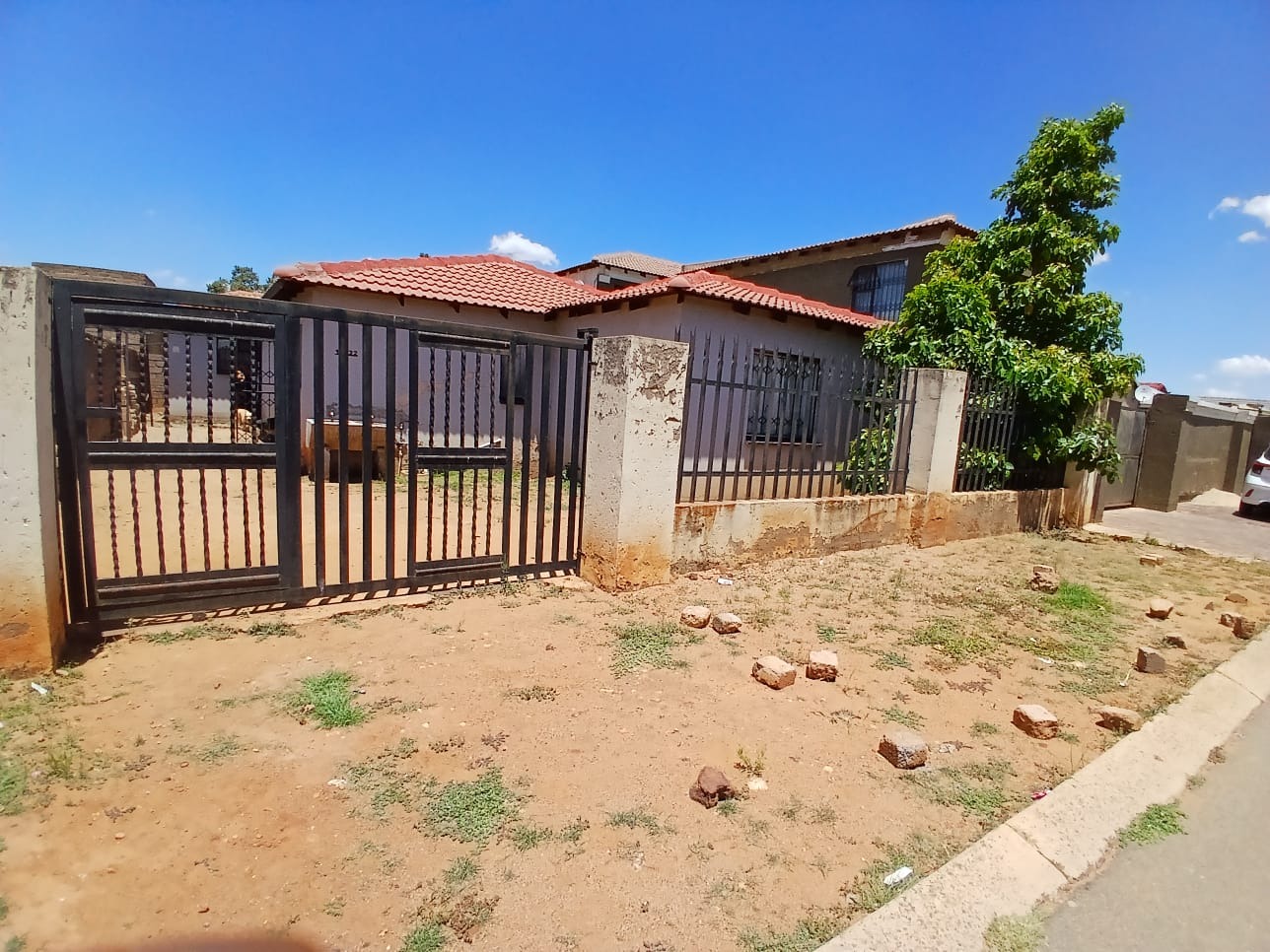 This residential property, located in the established suburban area of Protea Glen, Soweto, offers a practical foundation for comfortable living. The exterior presents a secure frontage, featuring a metal access gate and robust burglar bars . The house is topped with a durable tiled roof and is totally walled, providing privacy and security.