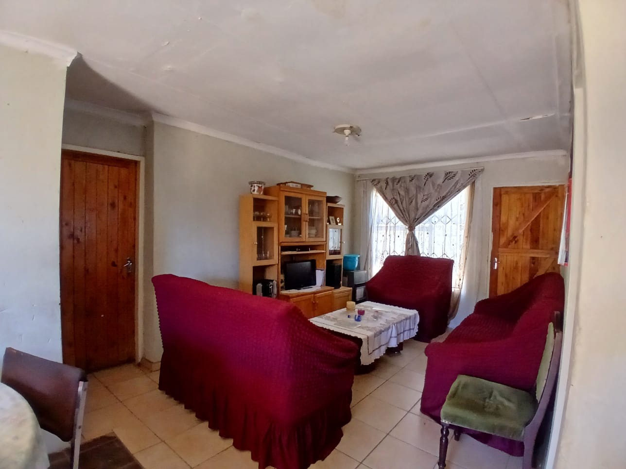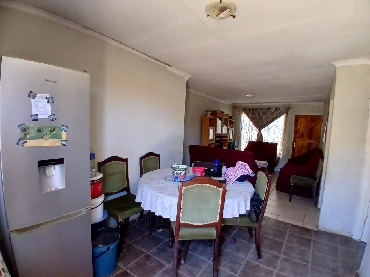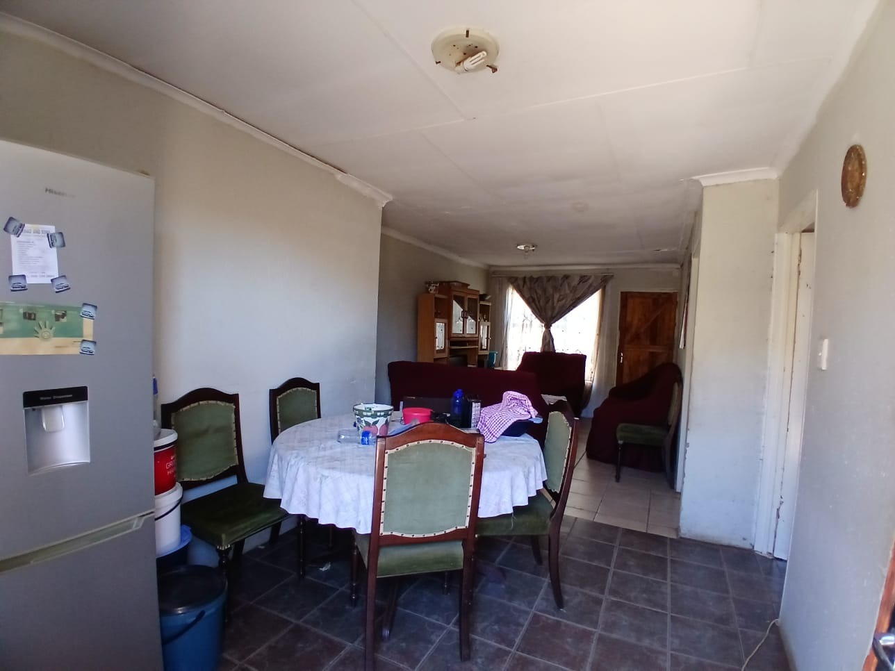 Inside, the home features an open-plan living and dining area, creating a versatile space for daily activities and family gatherings, all laid with practical tiled flooring. The property consists of three bedrooms and all are serviced with one bathroom . The property is situated on a generous 252 sqm erf, providing ample outdoor space , with three cottages outside for a potential extra income . It is not far from a high and a primary school with shopping center right at the door step