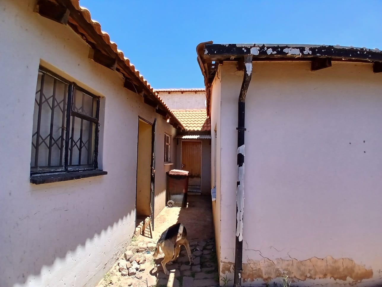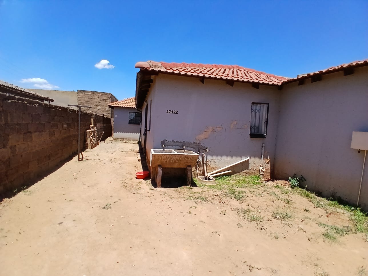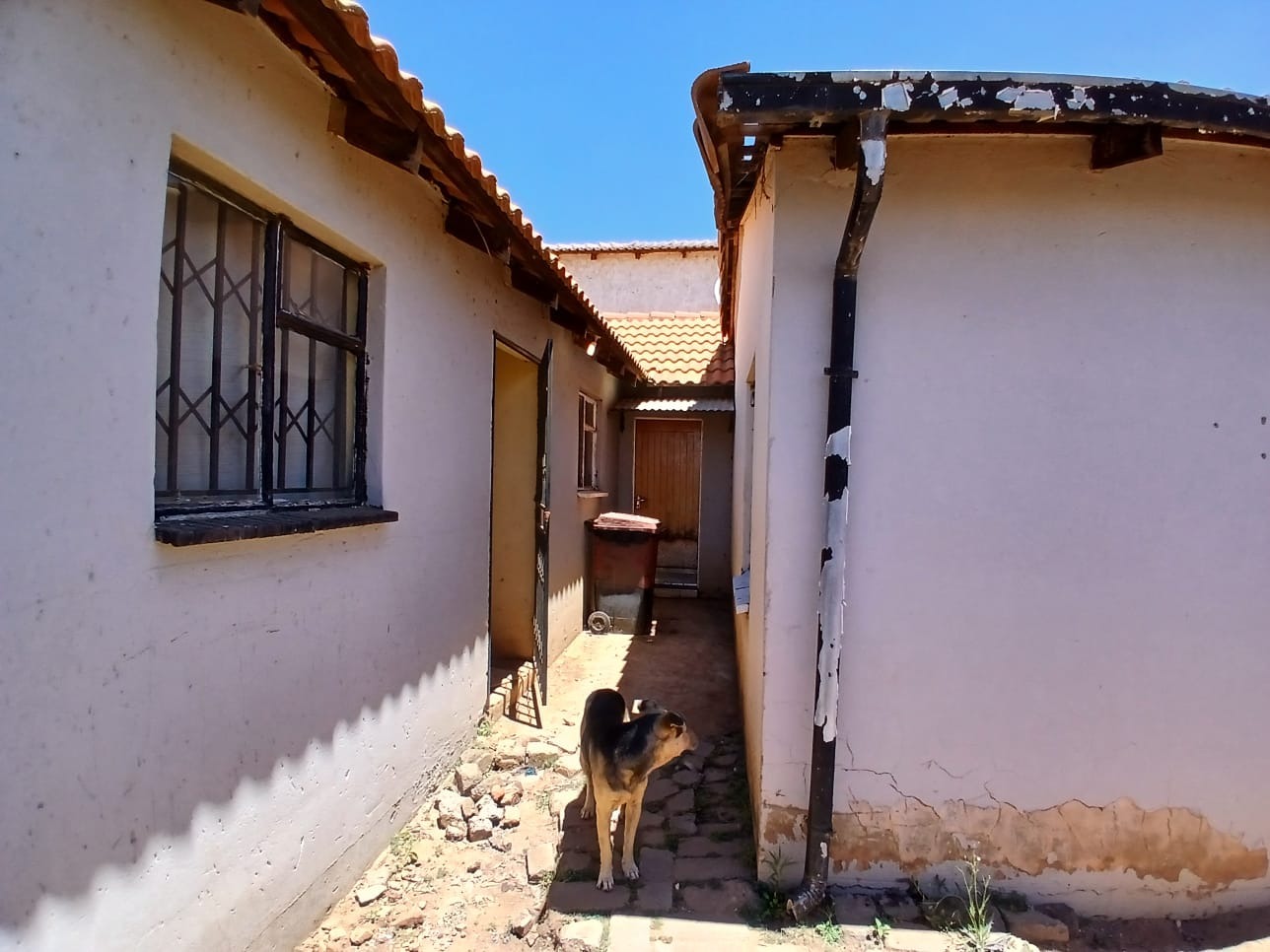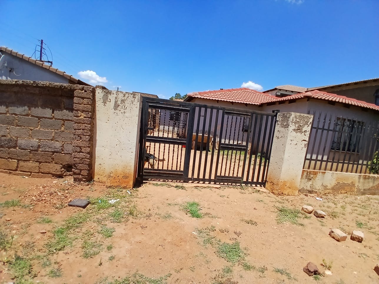 This residential property, located in the established suburban area of Protea Glen, Soweto, offers a practical foundation for comfortable living. The exterior presents a secure frontage, featuring a metal access gate and robust burglar bars . The house is topped with a durable tiled roof and is totally walled, providing privacy and security.