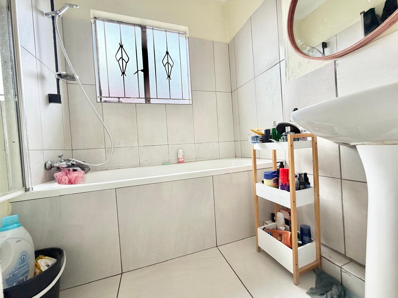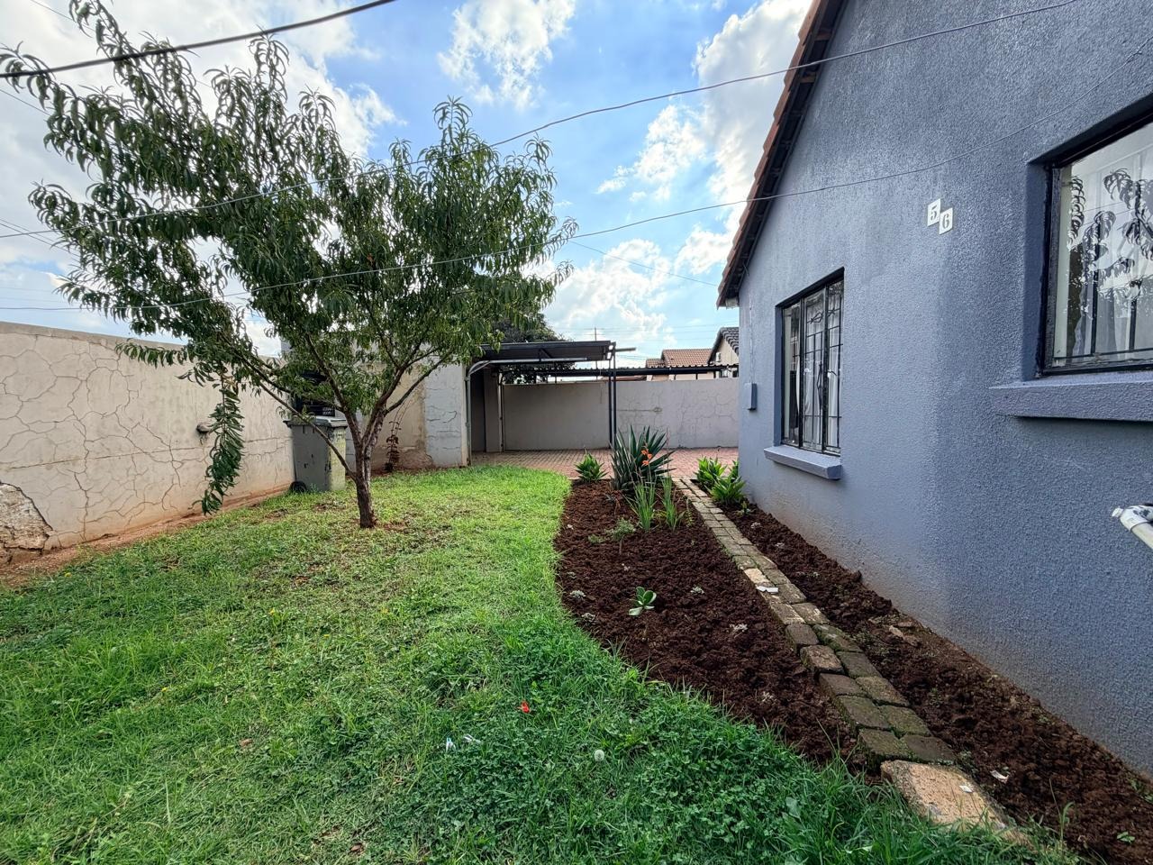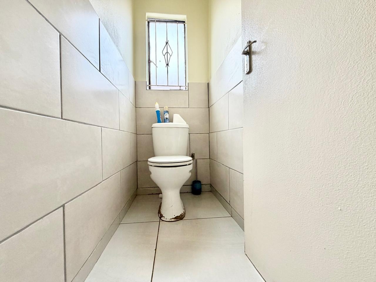 Externally, the property boasts a private garden, a paved driveway, and extensive open parking space for up to five vehicles, ensuring convenience for multiple residents and visitors. Security is addressed with fitted burglar bars, contributing to peace of mind. Additionally, the property includes outside toilets, adding practical utility.