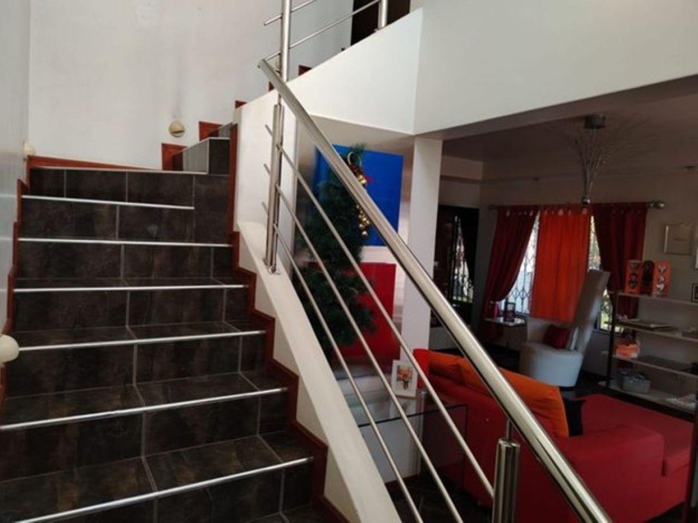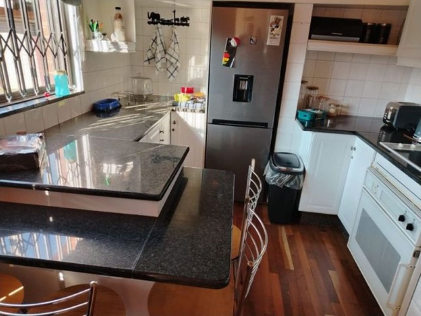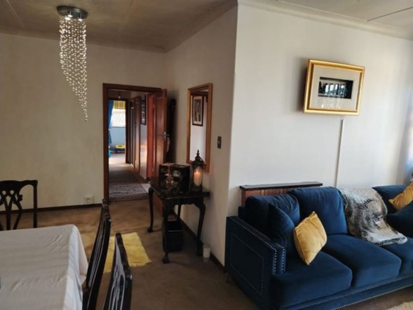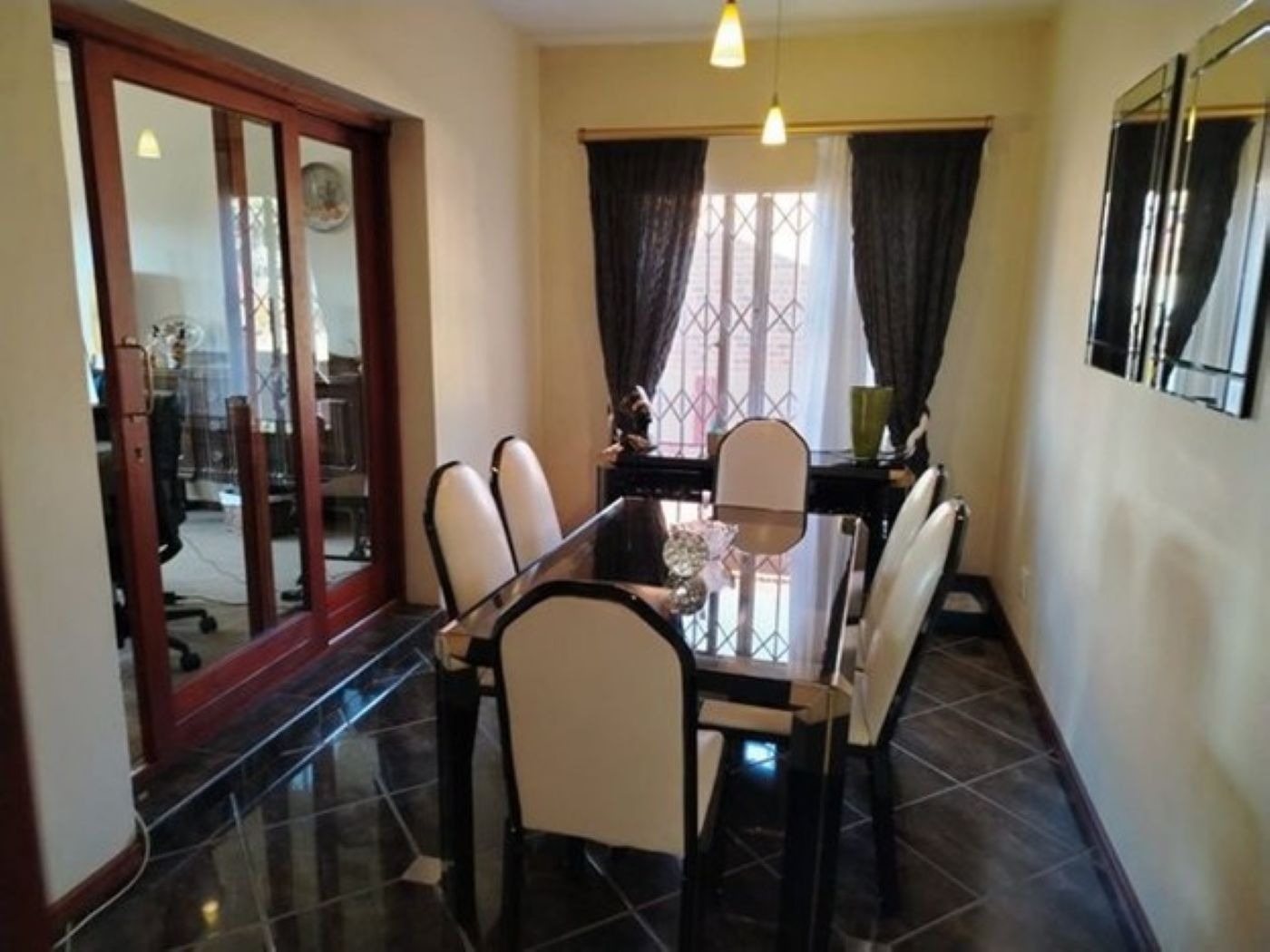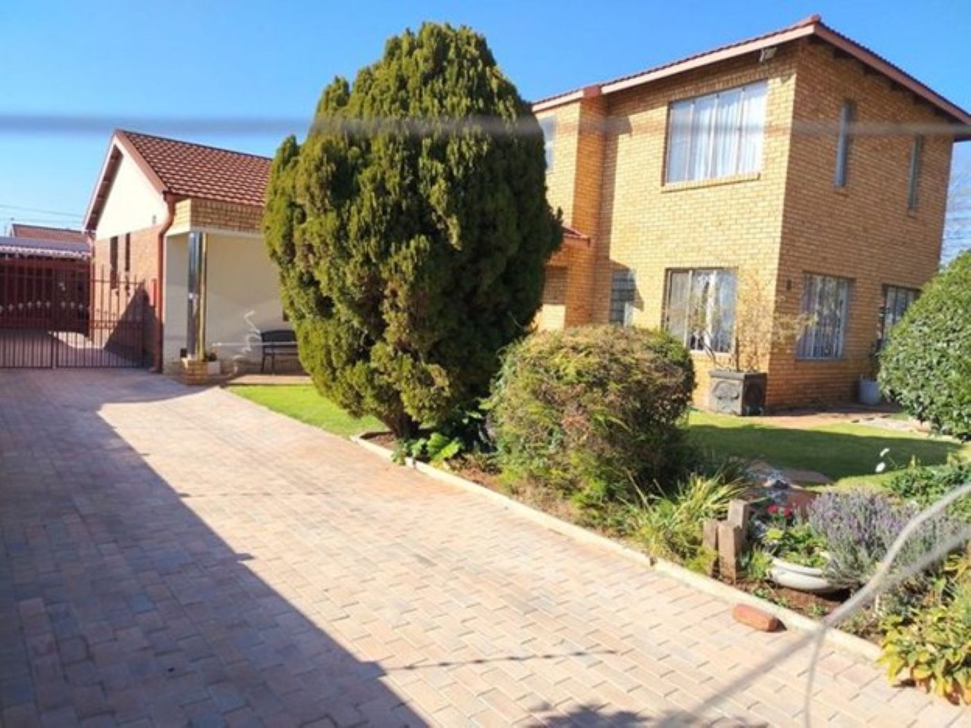 Discover this spacious two-story family home, ideally situated in the suburban area of Paul Krugersoord, Springs. Boasting a durable light-colored brick exterior and a classic red tiled roof, this property immediately impresses with its well-maintained lawn, paved pathways, and secure gated access. The unique wooden main entrance doors add a touch of character, setting the tone for the inviting interiors. Inside, the residence offers a generous 450 sqm of floor space, featuring two comfortable lounges, a dedicated dining room, and a well-appointed kitchen, perfect for family living and entertaining. A contemporary tiled staircase with sleek metal railings connects the levels, adding an open architectural feel. The home is equipped with air conditioning for year-round comfort and includes a study, laundry, and storage for added convenience. Accommodation comprises five well-proportioned bedrooms and two bathrooms, providing ample space for a growing family. Several bedrooms feature large windows for natural light, some with security bars, and practical mirrored built-in wardrobes, ensuring both comfort and functionality. Externally, the property sits on a 654 sqm erf, offering a private garden and additional paved areas. A single garage and an extra parking space cater to vehicle needs. The home also benefits from domestic rooms and outside toilets, enhancing its practicality. Security is a priority, with features including an alarm system, electric fencing, an access gate, security gate, burglar bars, and 24-hour security, ensuring peace of mind. Fibre connectivity is available, supporting modern lifestyle needs. This property combines ample living space with robust security in a desirable suburban setting. Key Features: * 5 Bedrooms, 2 Bathrooms * 2 Lounges, 1 Dining Room, 1 Kitchen * Study, Laundry, Storage * Air Conditioning * Single Garage & Additional Parking * Alarm, Electric Fencing, Burglar Bars * 24-Hour Security & Access Gate * Fibre Connectivity * Domestic Rooms & Outside Toilets