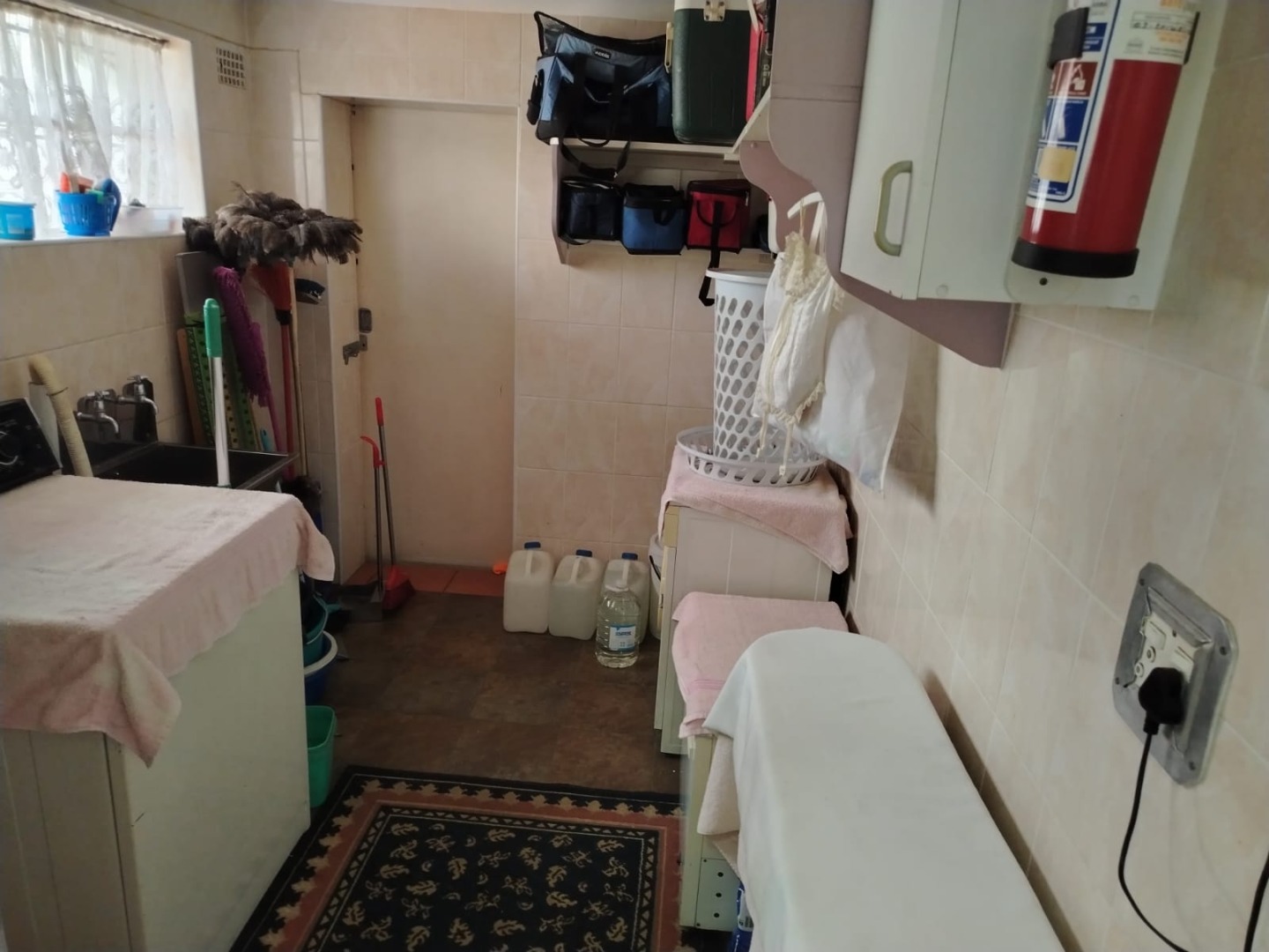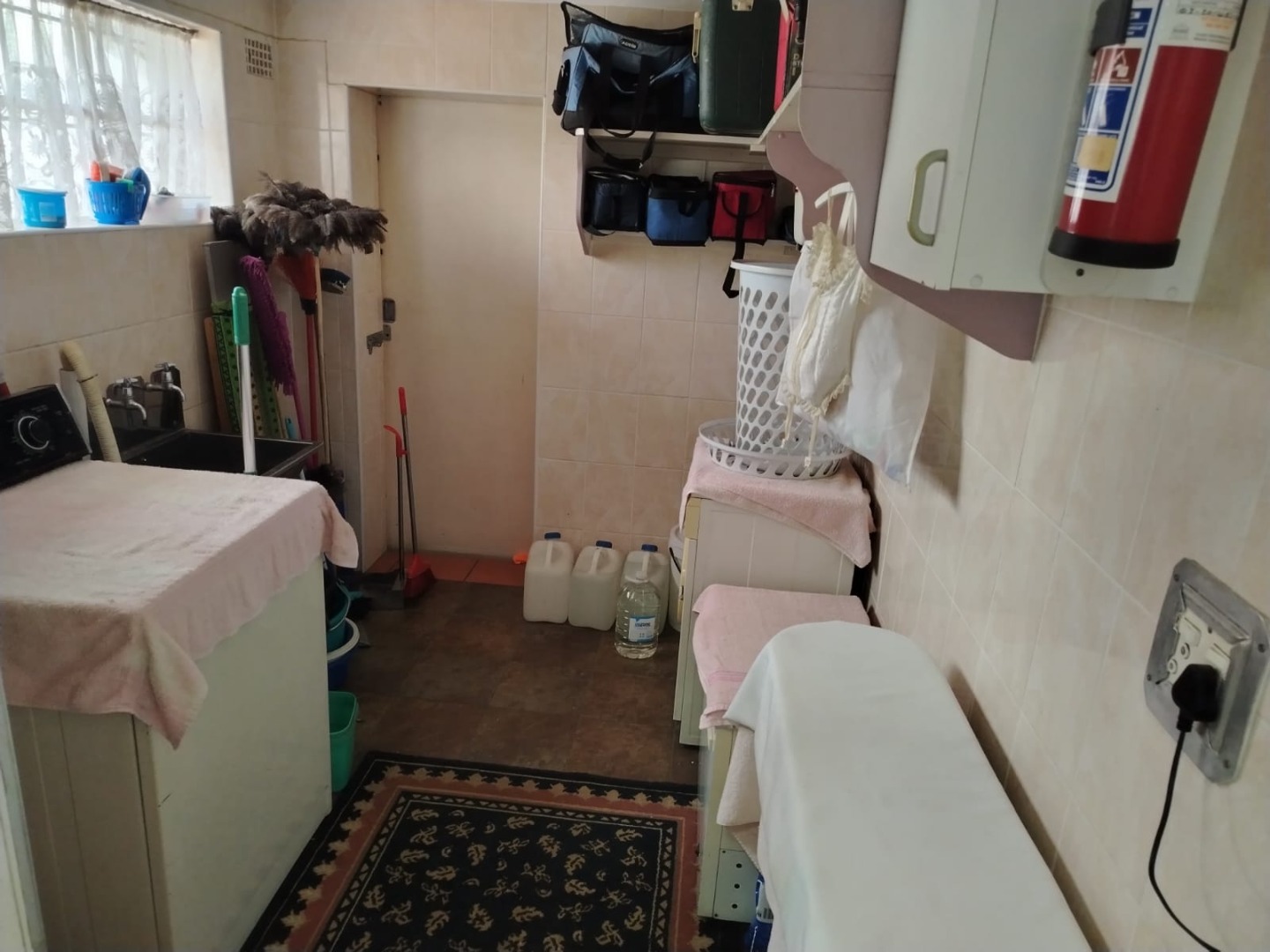 Adjacent to the kitchen is a fully functional laundry room with ample space for washing machines, tumble dryers, and ironing facilities.