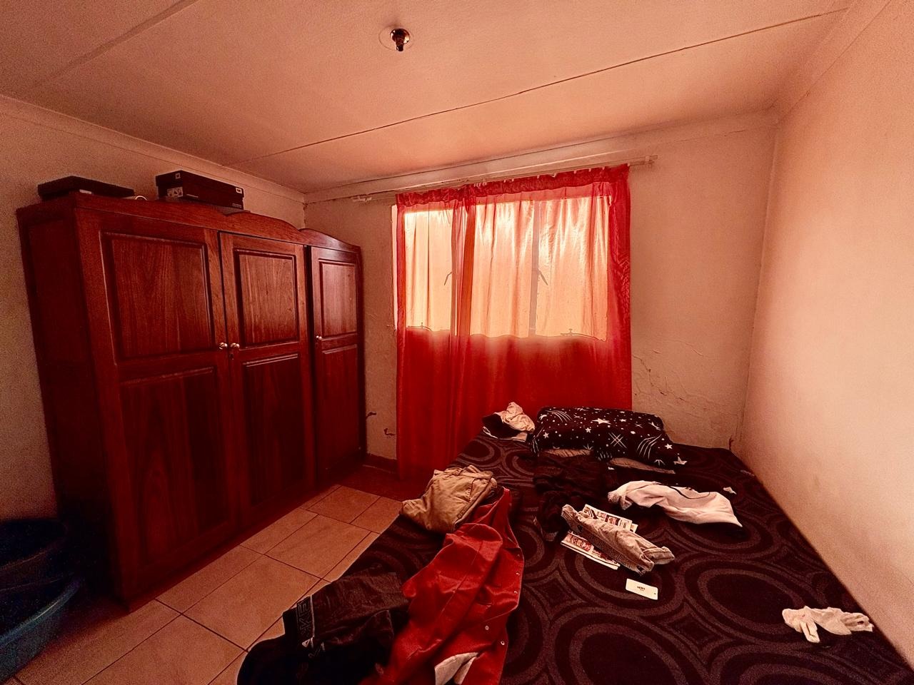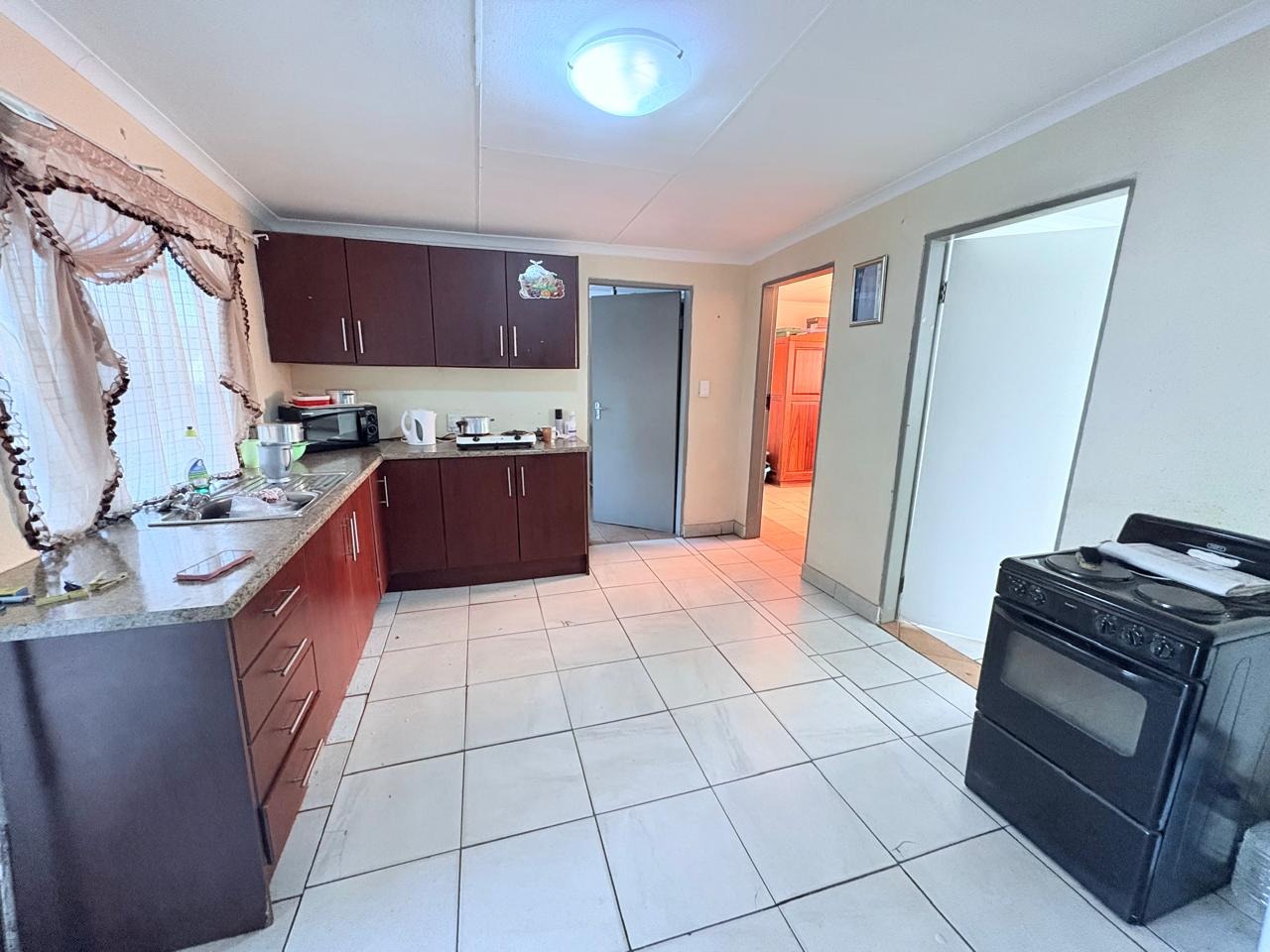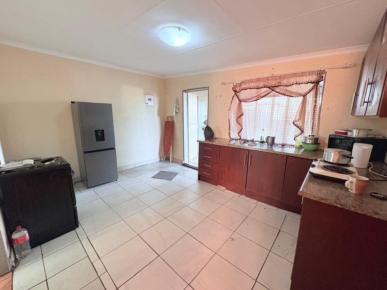 The main home offers three well-sized bedrooms, each with built-in cupboards. The main bedroom features stylish laminated flooring, while the remaining two are neatly tiled. The spacious, semi–open-plan lounge and dining area provides a warm and welcoming space for family gatherings or entertaining guests. The bathroom includes a shower, basin, and toilet, while the practical kitchen is fitted with ample cupboard space and a standard stove. Utilities include prepaid electricity and prepaid water (note: the water meter requires repair).