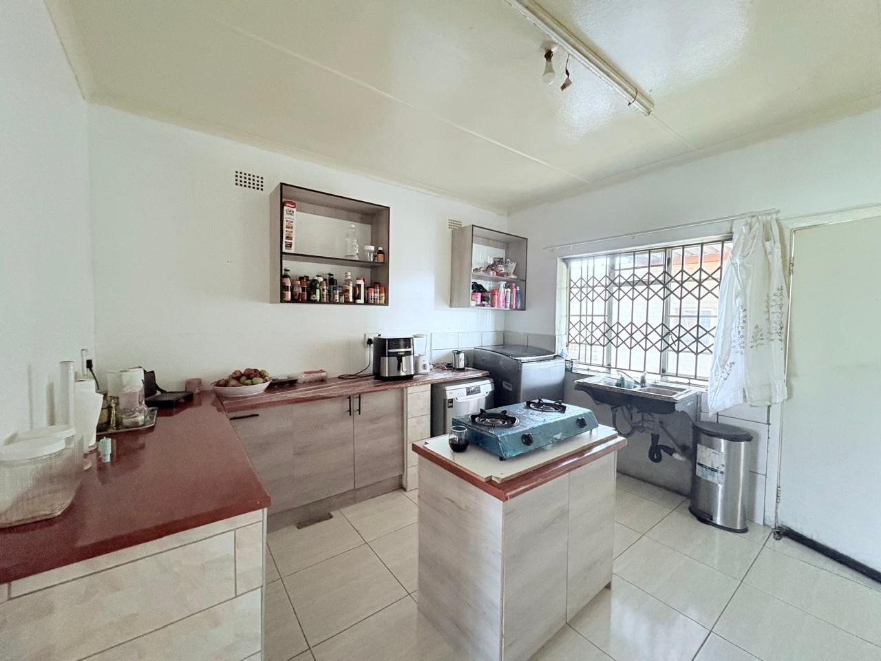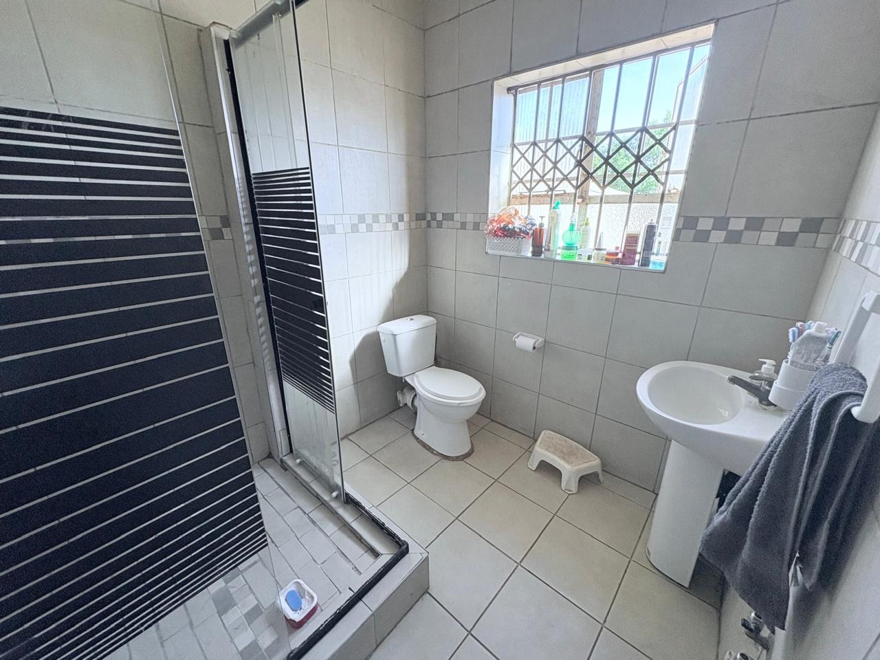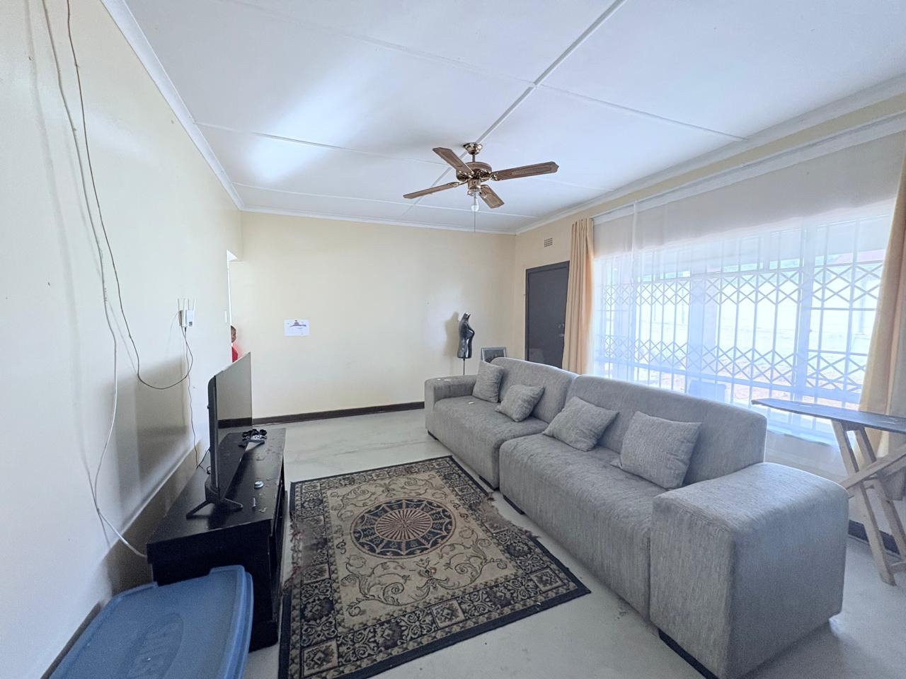 The main home offers three well-sized bedrooms, each with built-in cupboards. The main bedroom features stylish laminated flooring, while the remaining two are neatly tiled. The spacious, semi–open-plan lounge and dining area provides a warm and welcoming space for family gatherings or entertaining guests. The bathroom includes a shower, basin, and toilet, while the practical kitchen is fitted with ample cupboard space and a standard stove. Utilities include prepaid electricity and prepaid water (note: the water meter requires repair).