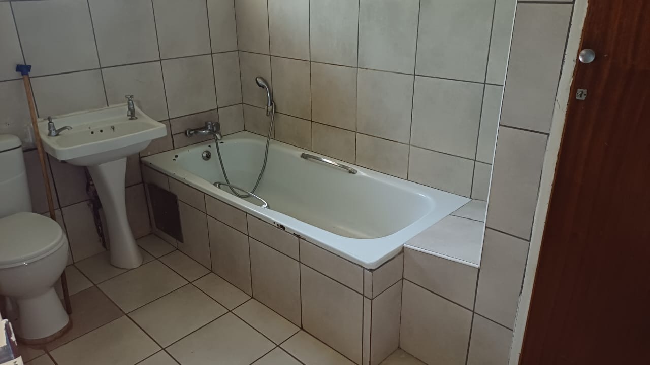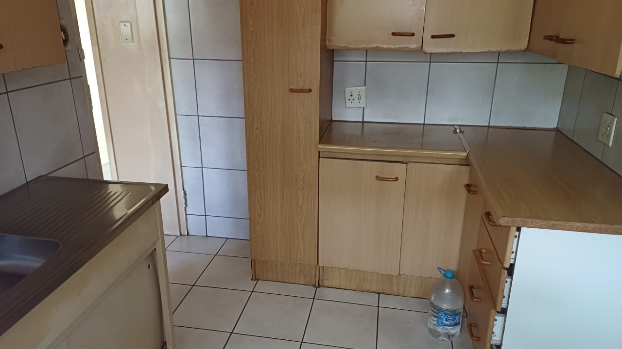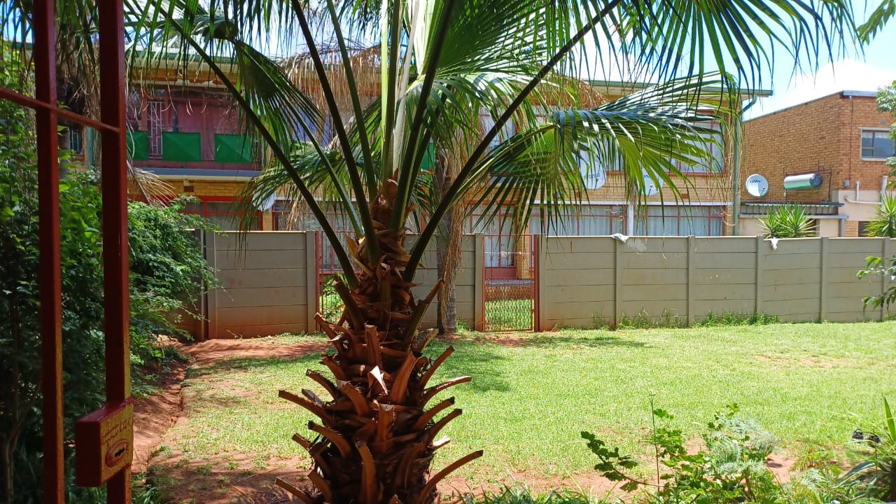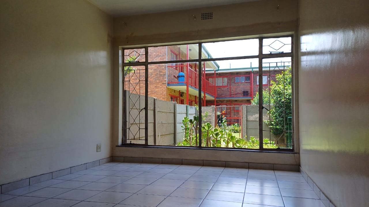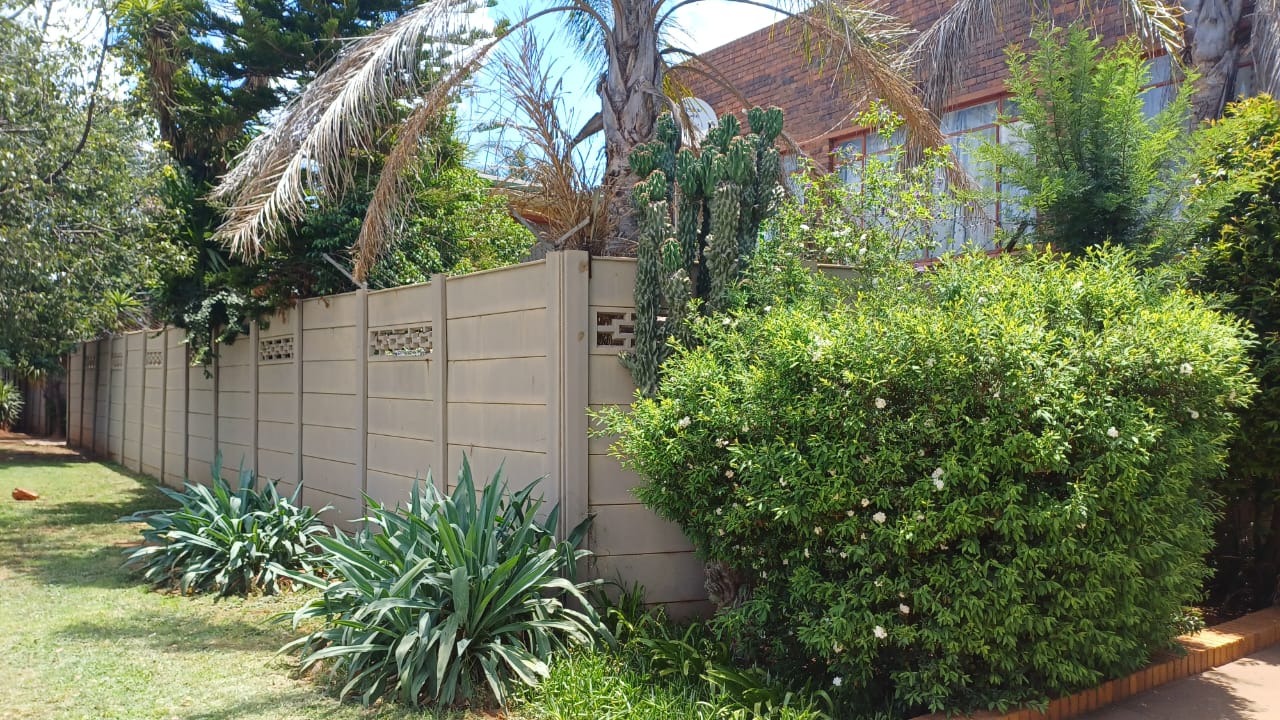 Additional features include a single garage with ample visitor parking, a pet-friendly environment, and access to a spacious communal garden with mature landscaping. Security is well addressed with a concrete perimeter fence, burglar bars on windows, and security gates on doors, ensuring peace of mind.