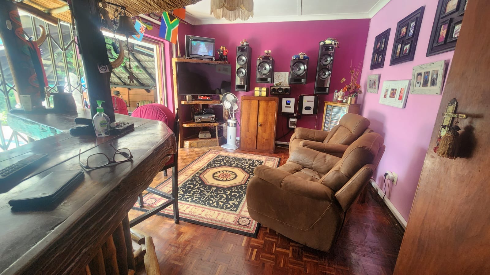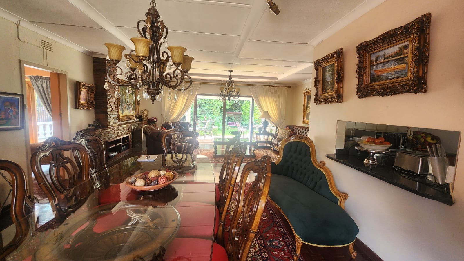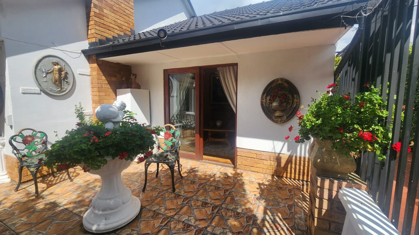 Property secured with burglar bars, security gates, alarm system.