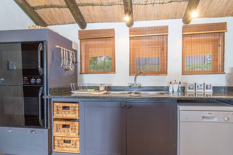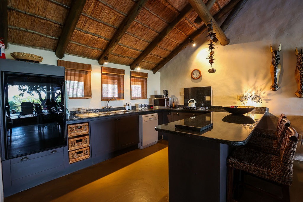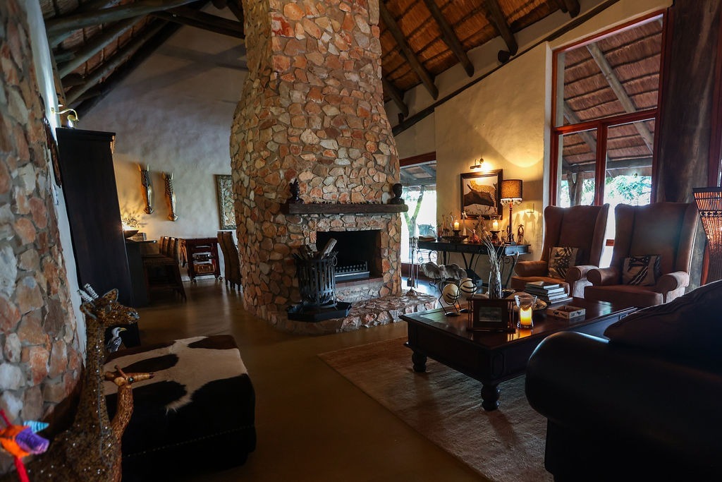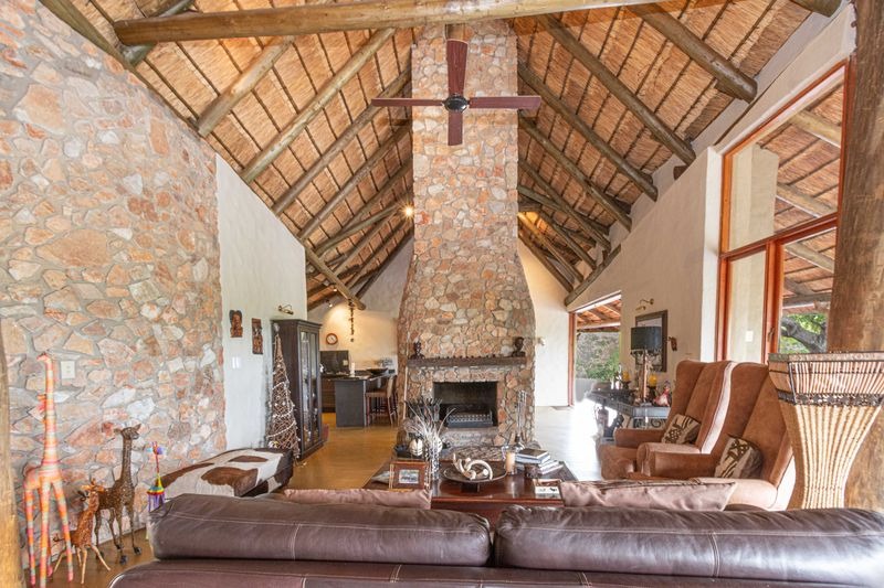 The sophisticated open plan living areas flow effortlessly onto the deck, maximising the sought after indoor-outdoor lifestyle that defines luxury Bushveld living. A striking central fireplace creates a warm focal point between then generous lounge and dining spaces, adding elegance and ambience throughout.