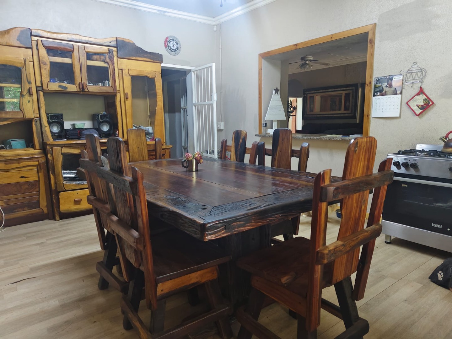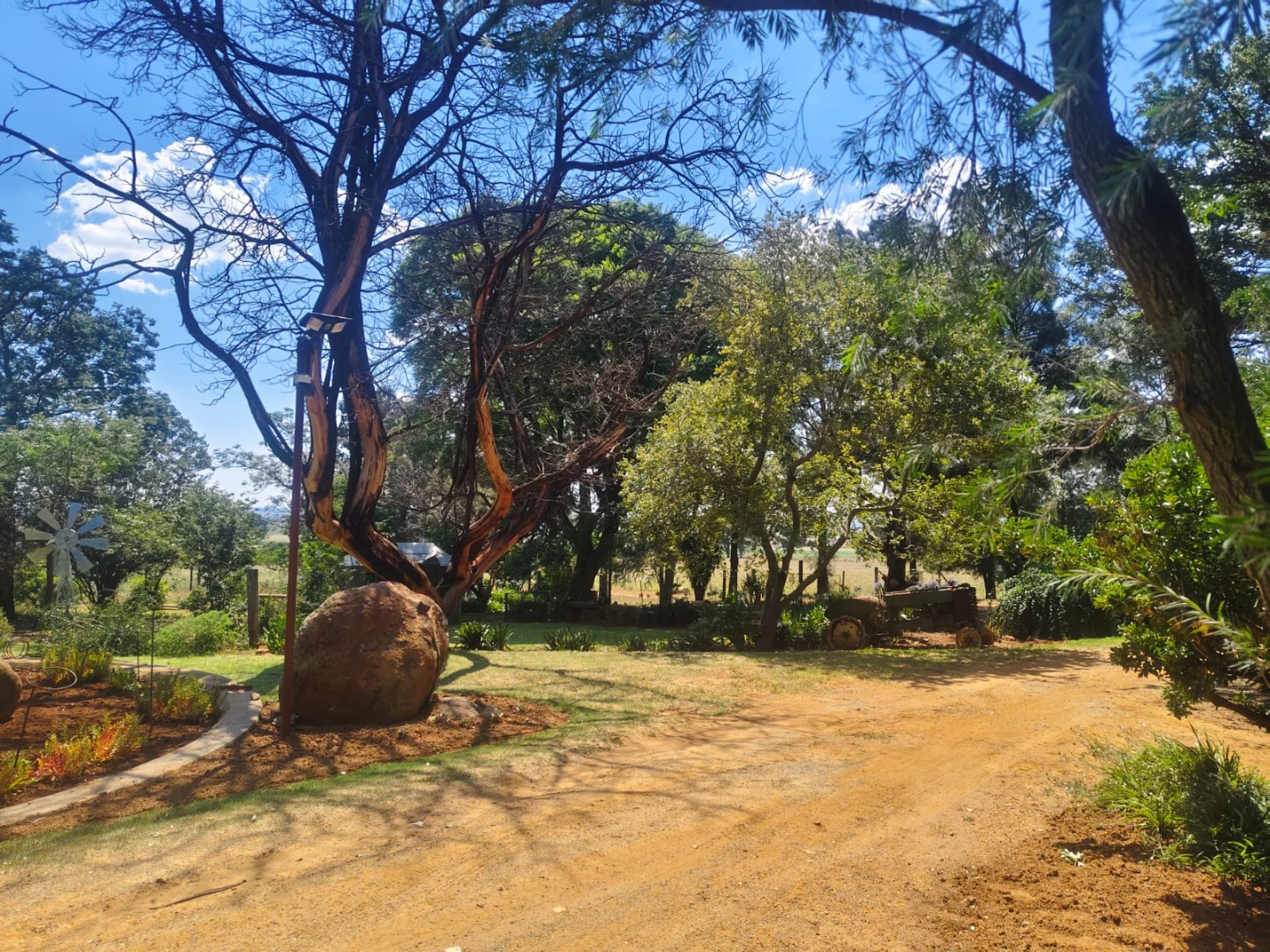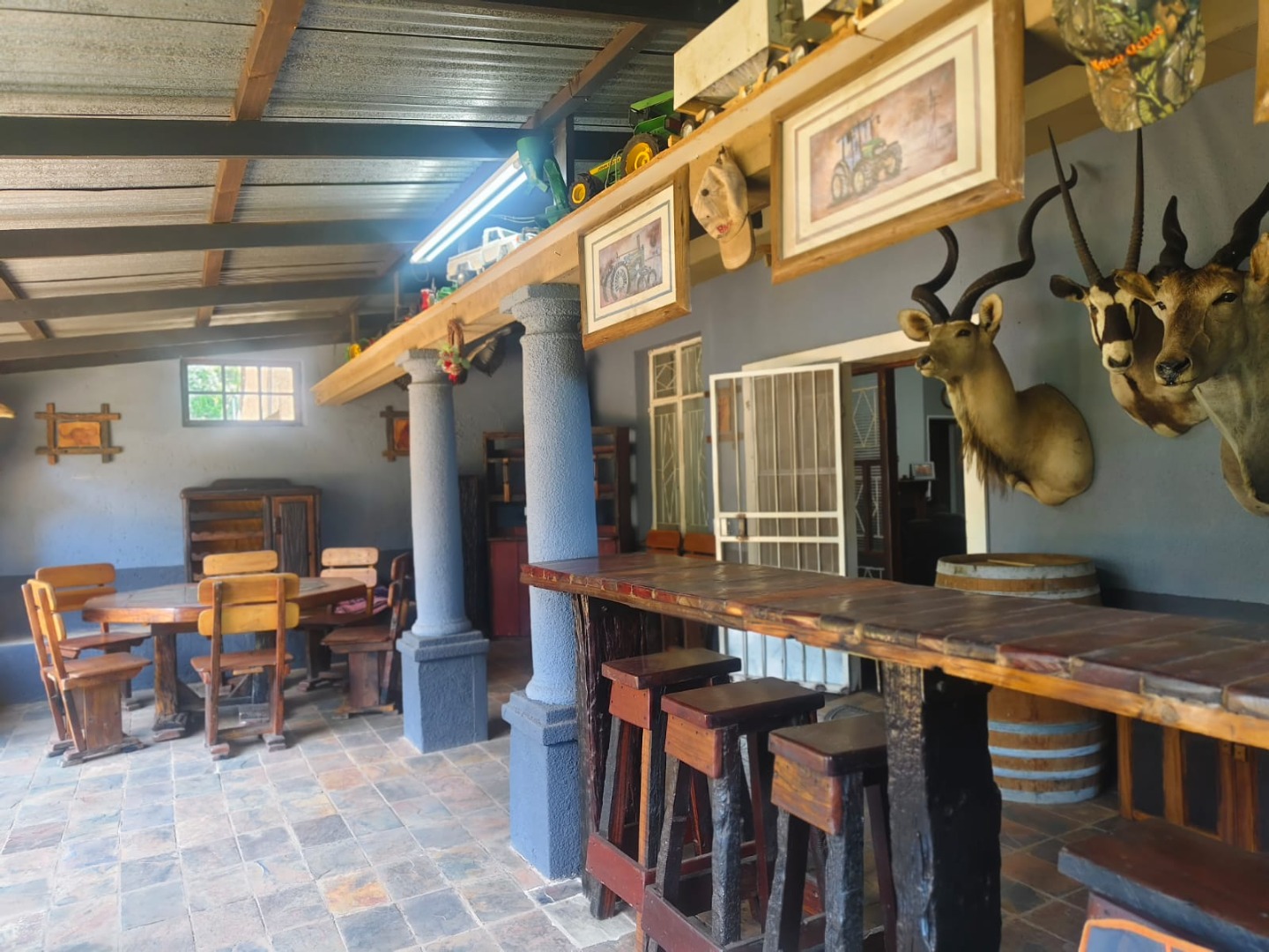 But the real gem here is the outdoor living! Picture yourself entertaining friends and family in the spacious covered outdoor area, complete with a fantastic solid wooden built-in bar – perfect for sundowners. There's also a built-in braai for those classic South African cookouts. The property boasts a beautiful garden, and with a borehole, you'll have a reliable water source for keeping things green. The expansive land offers endless possibilities, whether you dream of a small farm or just want room to roam, with two garages providing secure parking.
