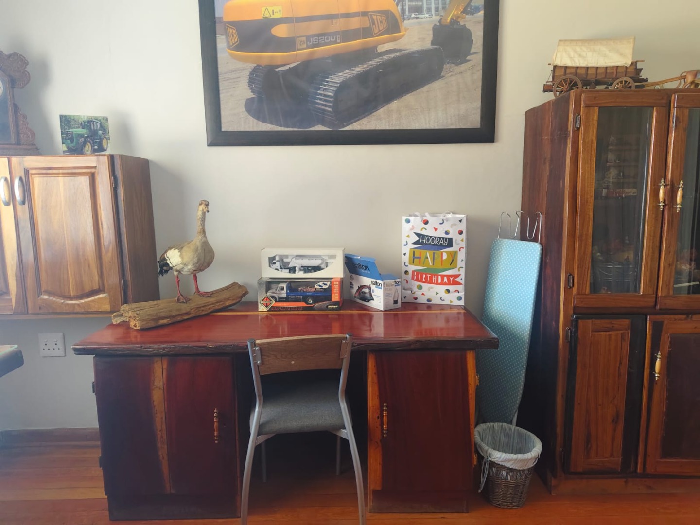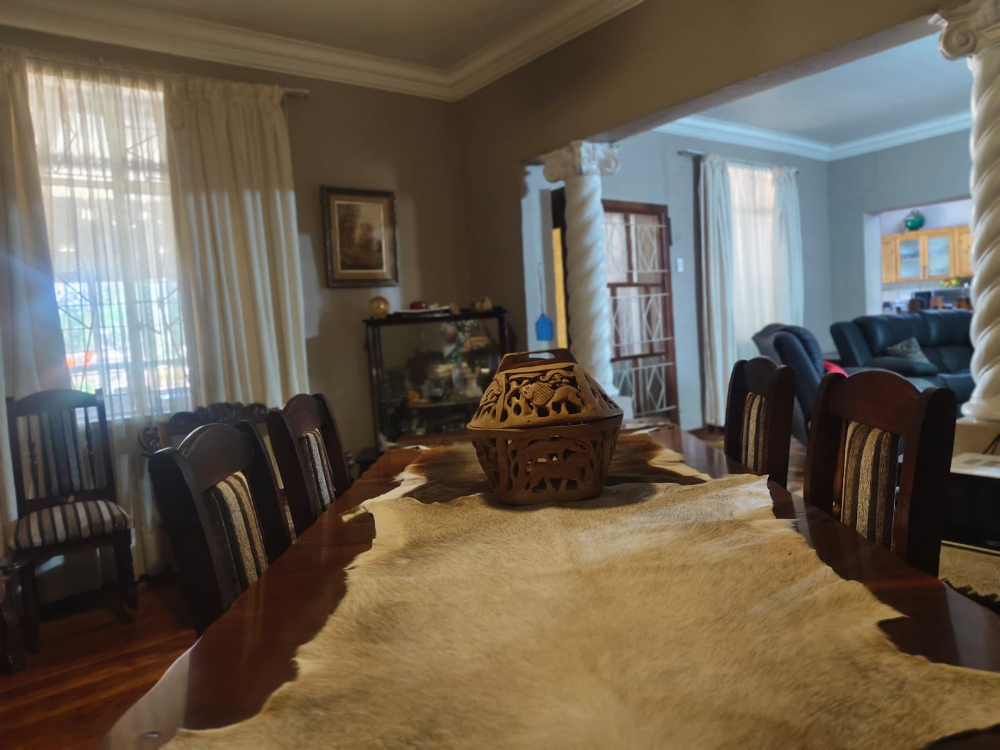But the real gem here is the outdoor living! Picture yourself entertaining friends and family in the spacious covered outdoor area, complete with a fantastic solid wooden built-in bar – perfect for sundowners. There's also a built-in braai for those classic South African cookouts. The property boasts a beautiful garden, and with a borehole, you'll have a reliable water source for keeping things green. The expansive land offers endless possibilities, whether you dream of a small farm or just want room to roam, with two garages providing secure parking.