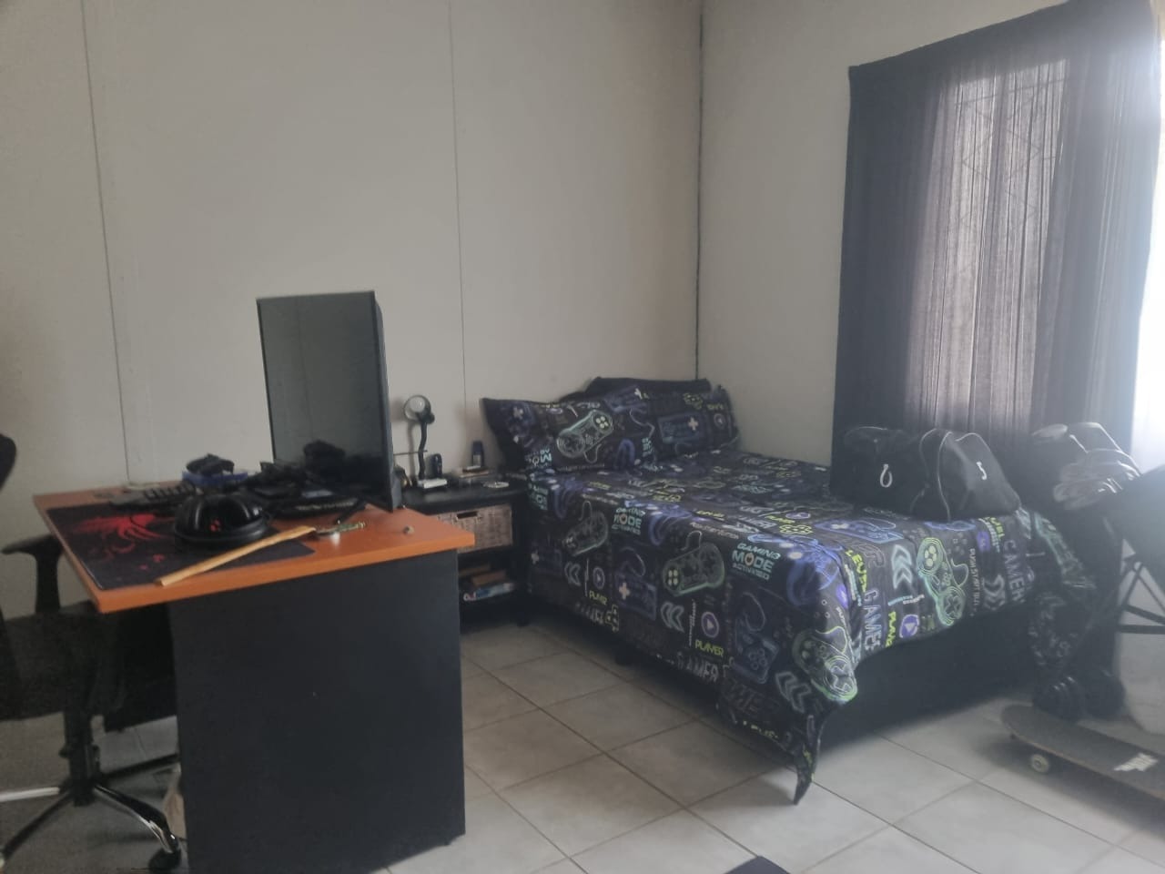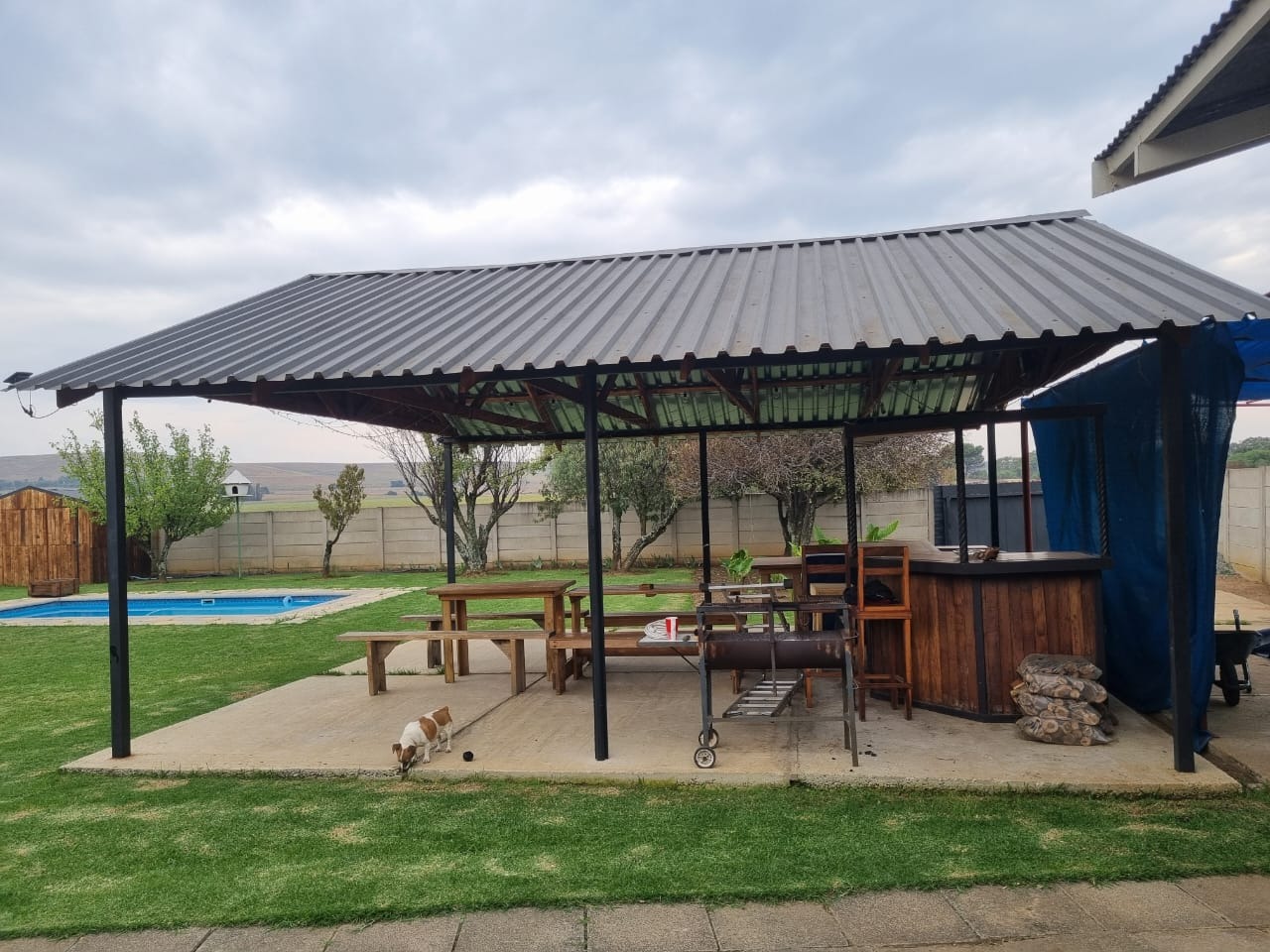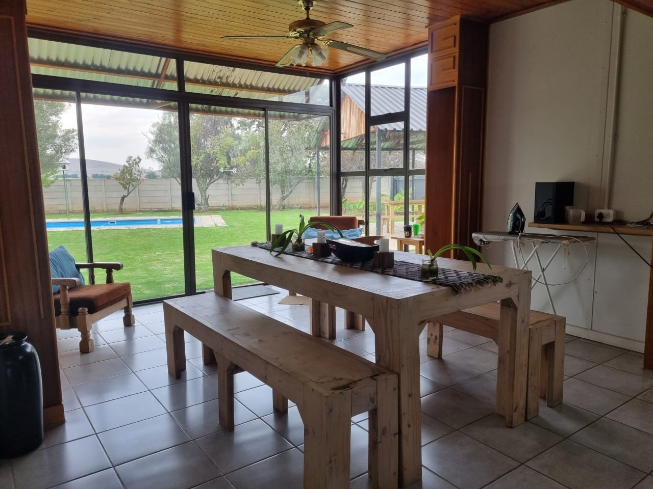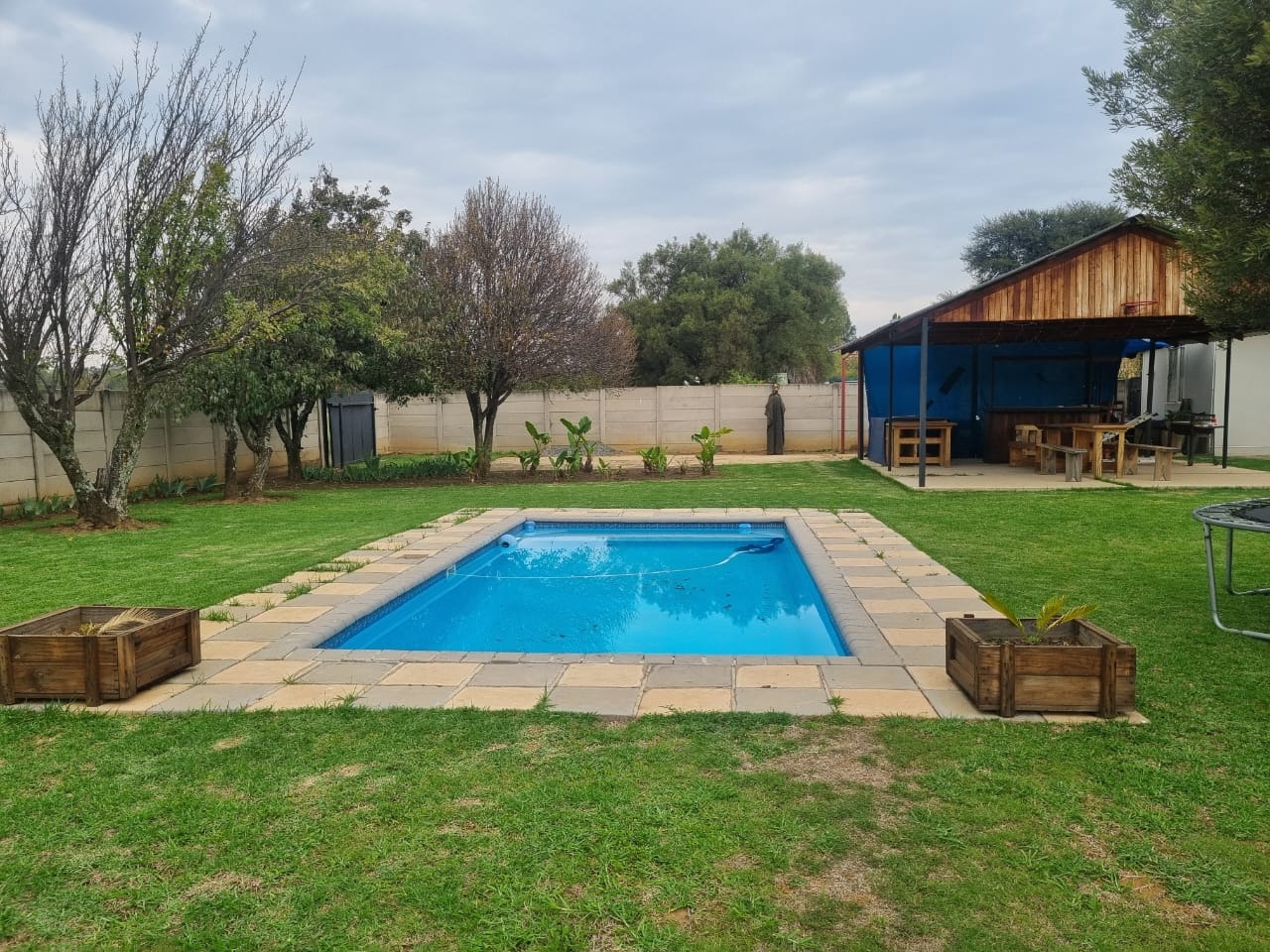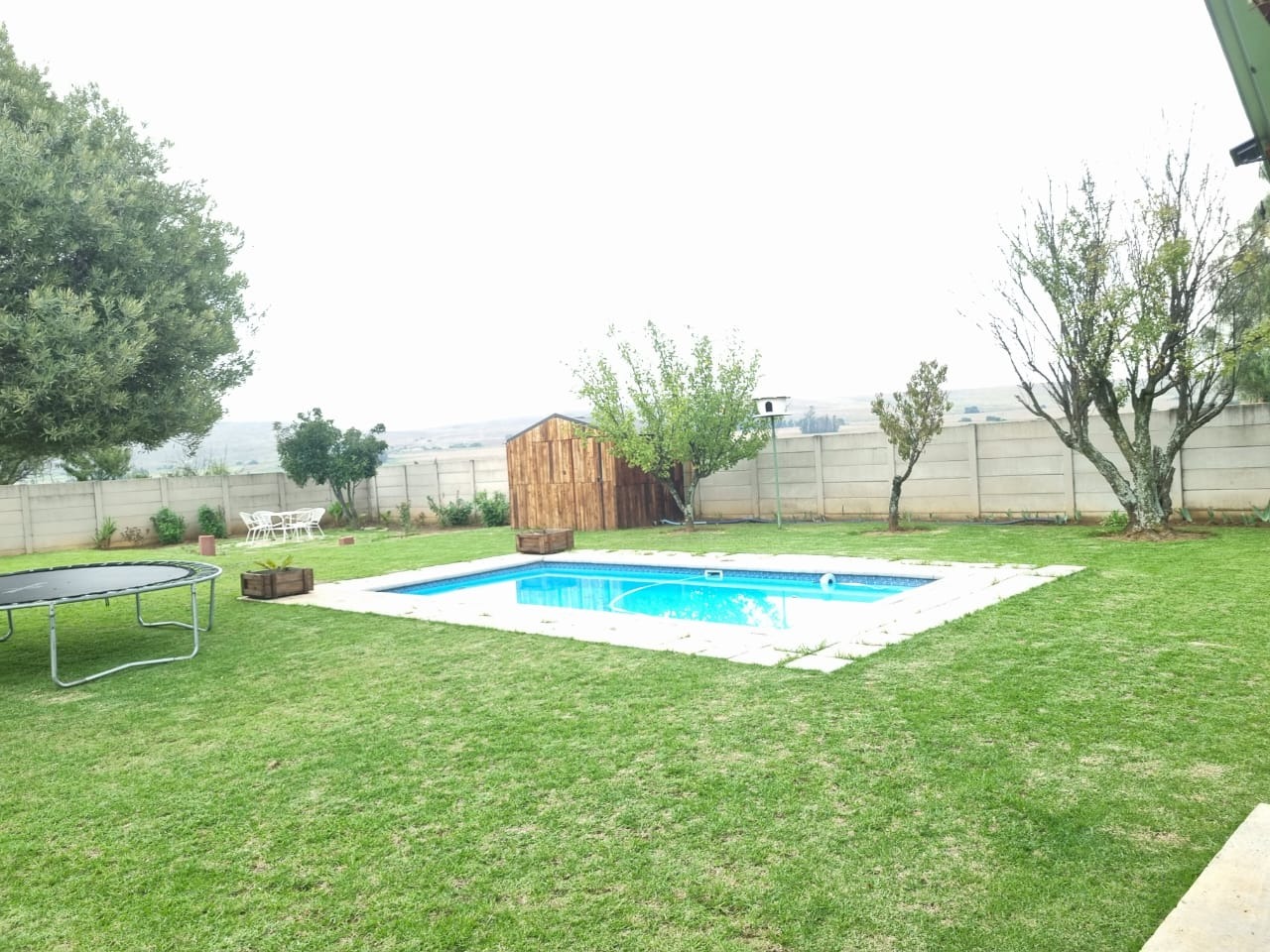 Step outside to indulge in the beauty of your surroundings. A sparkling pool and expansive entertainment area provide the ultimate setting for family gatherings or tranquil evenings under the stars. Inside, the home boasts four generously sized bedrooms, each with built-in cupboards for ample storage and comfort. The luxurious bathroom is a haven of relaxation, complete with elegant finishes, a shower, and a bath to cater to all your needs. Tiled floors throughout the home ensure easy maintenance, while additional features like a laundry room and an outer building enhance its practicality and appeal.