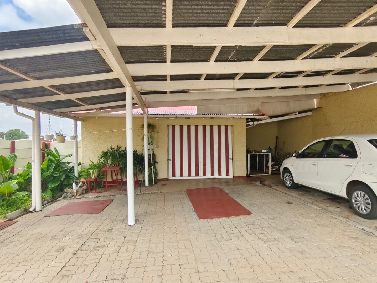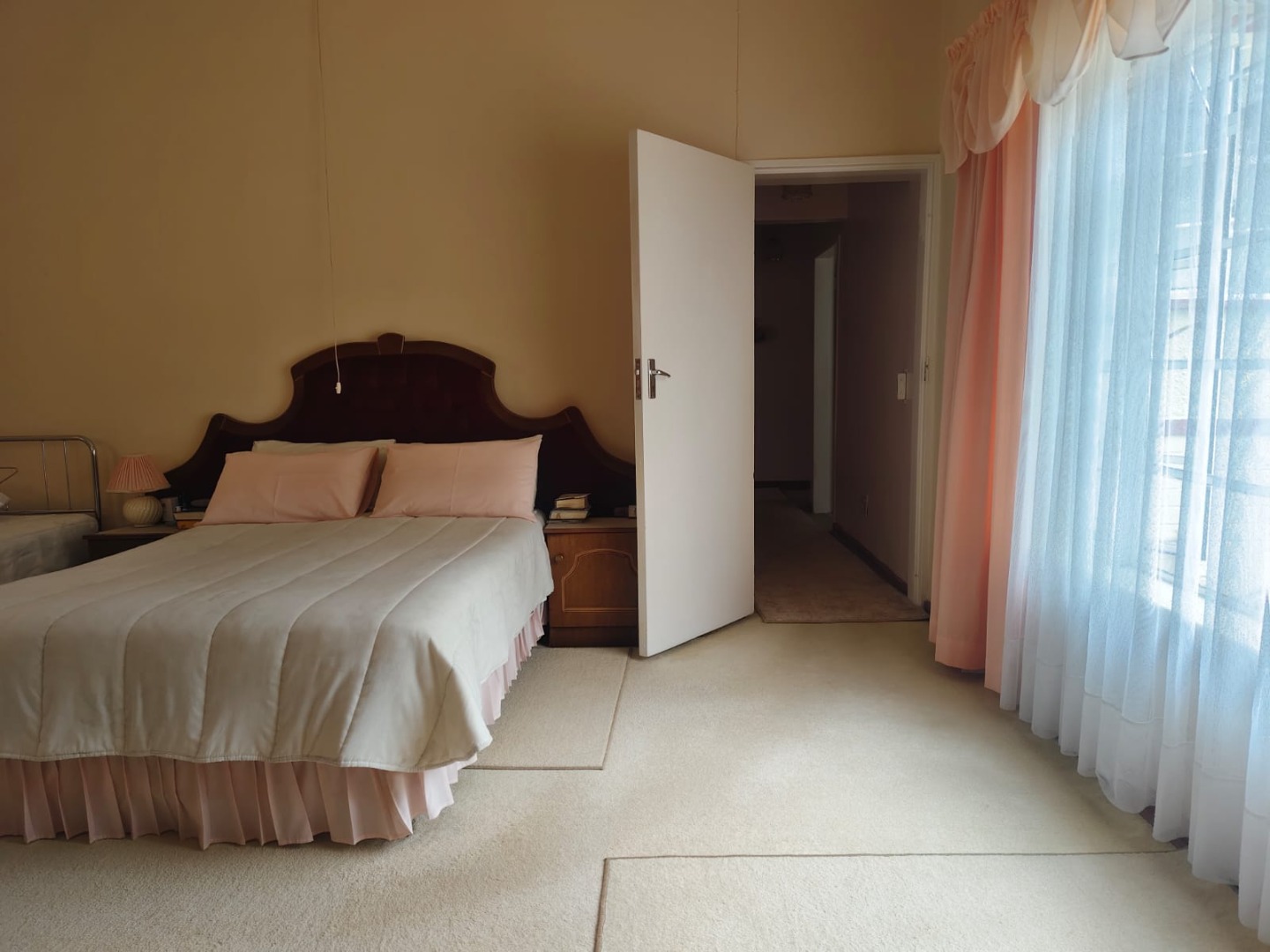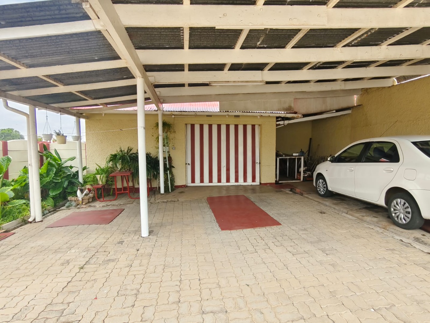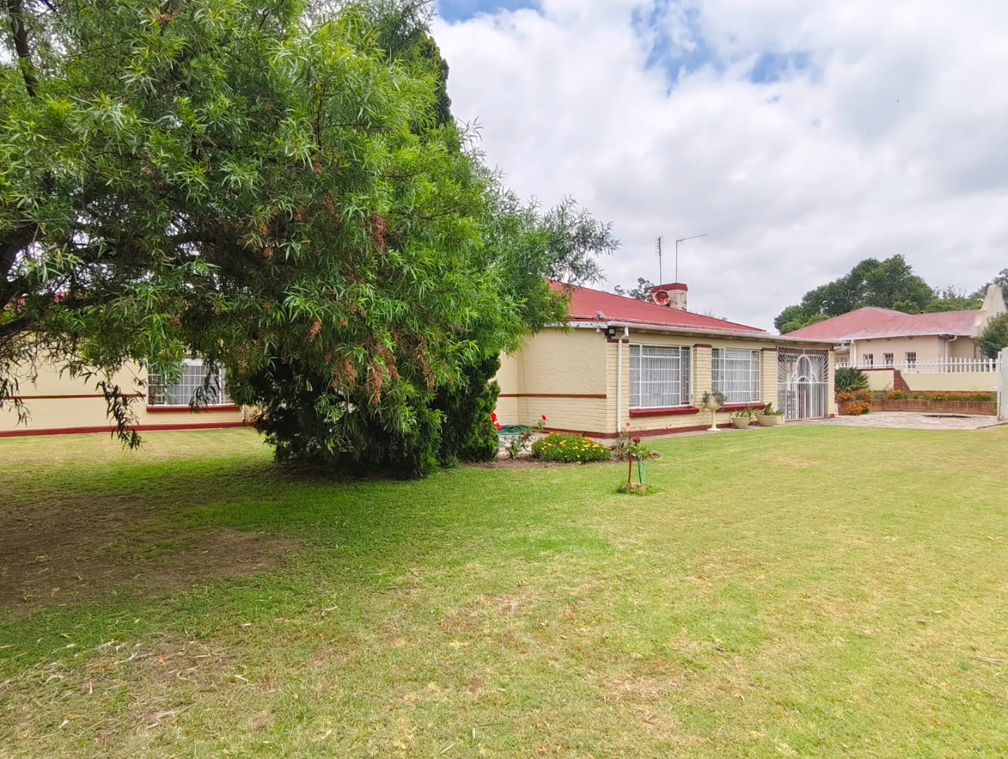 This charming single-story residence in Grootvlei offers welcoming kerb appeal with its traditional design, featuring a distinctive red roof and light-colored brick exterior. Set on a generous 1675 sqm erf, the property boasts an expansive, well-maintained lawn, mature trees, and vibrant flower beds. A paved pathway leads to the entrance, complemented by a comfortable paved patio area perfect for outdoor relaxation and entertaining. The large, fenced garden is ideal for pets and family activities.
