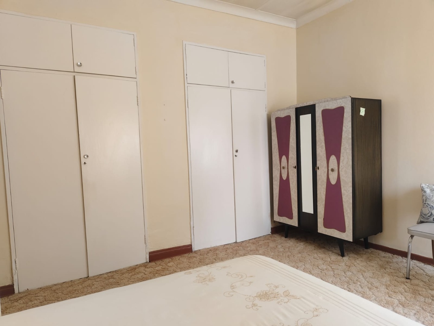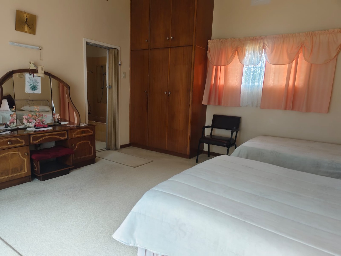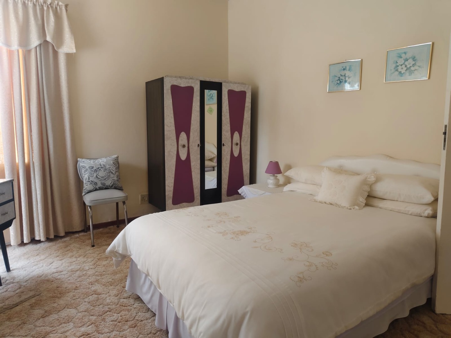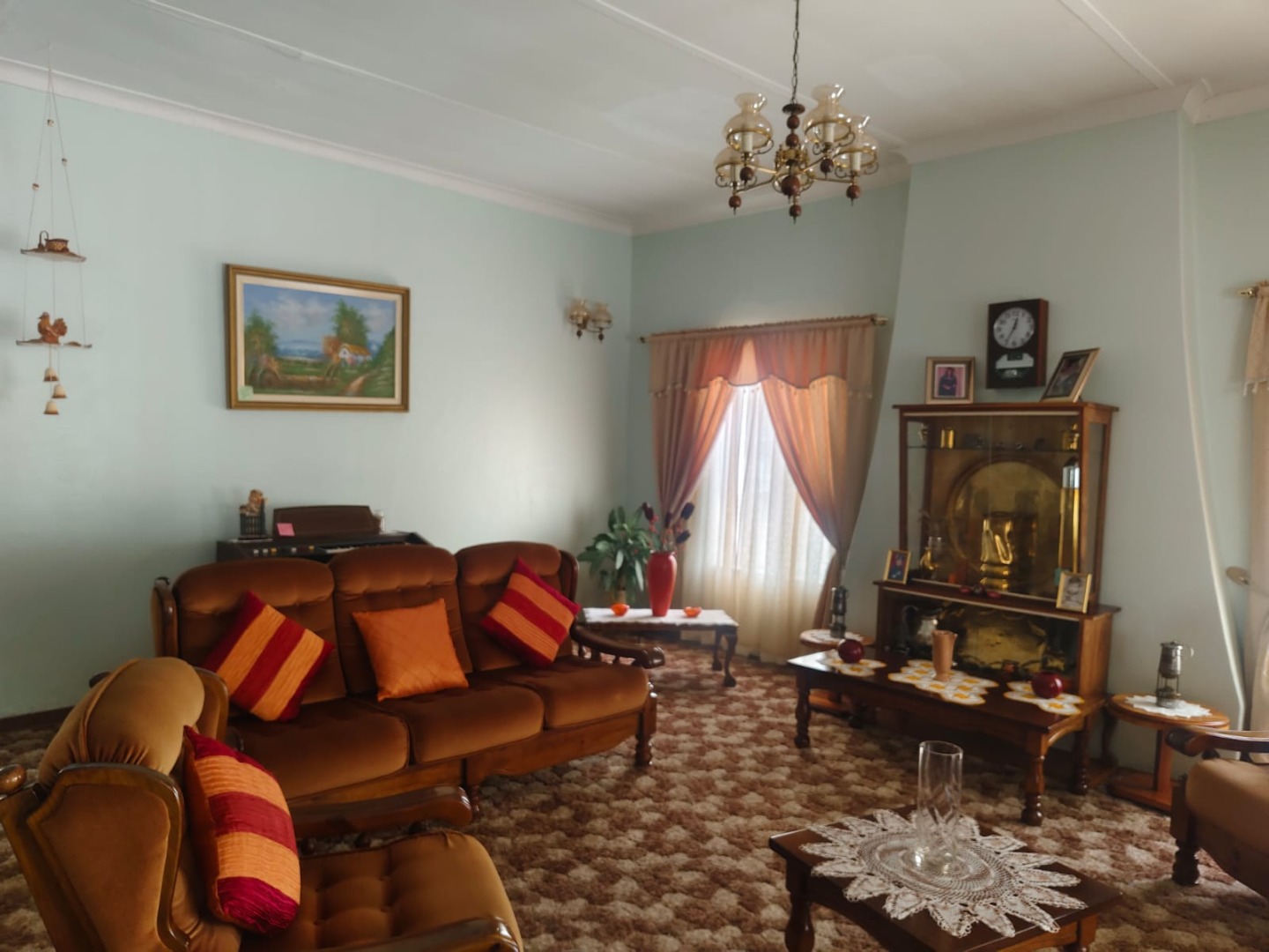 This charming single-story residence in Grootvlei offers welcoming kerb appeal with its traditional design, featuring a distinctive red roof and light-colored brick exterior. Set on a generous 1675 sqm erf, the property boasts an expansive, well-maintained lawn, mature trees, and vibrant flower beds. A paved pathway leads to the entrance, complemented by a comfortable paved patio area perfect for outdoor relaxation and entertaining. The large, fenced garden is ideal for pets and family activities.